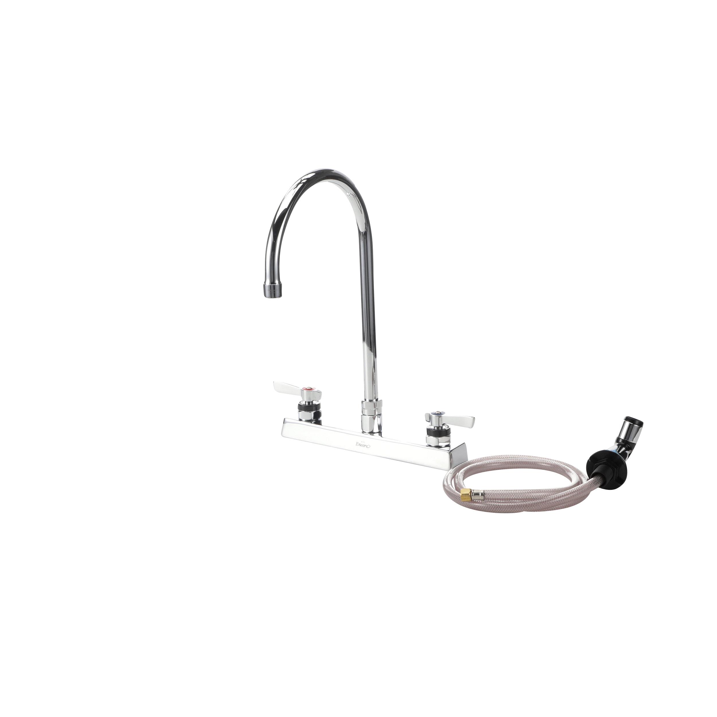 - Encore 8" OC Deck Mount Faucet with 8" Swivel Gooseneck Spout with Side Spray