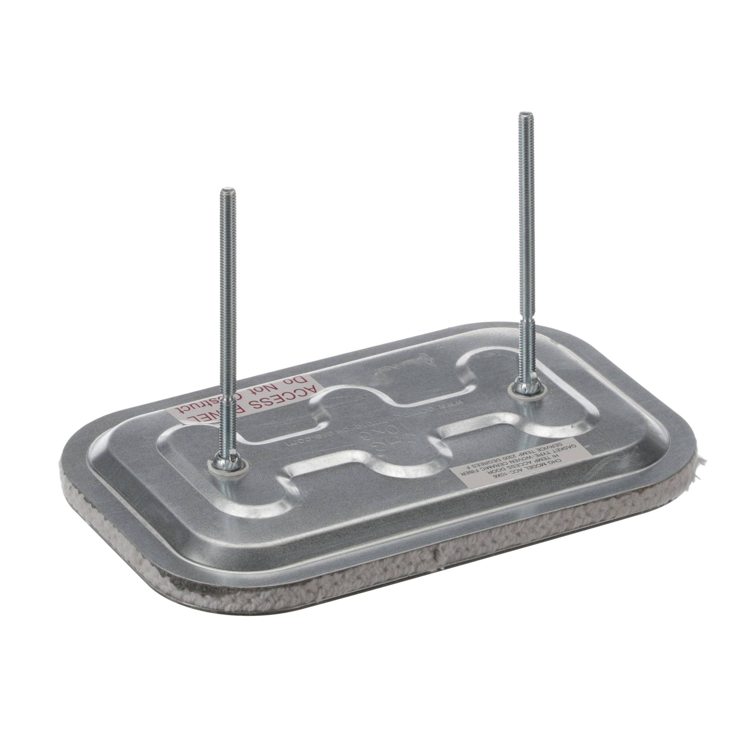 10" x 6" High Temperature Access Door Leak resistant and consists of two layers of stamped, hot dipped galvanized steel and one 16 g. black iron backing plate for ultimate safety and durability Hi-Temperature Ceramic Fiber Gasket (2300°F, 1260°C max) is permanently bonded to the outside panel of the access door to eliminate leakage Zinc plated conical springs are installed, between inner and outer plates, to facilitate opening Zinc coated wing nuts are easily turned by hand No measuring needed - self-adhesive mounting template provided Easy to install 6" (152mm) break-away mounting studs permit installations with fire wrap insulation. Studs may be broken at 2" (102mm) for standard installations. Meets NFPA #96 Standards