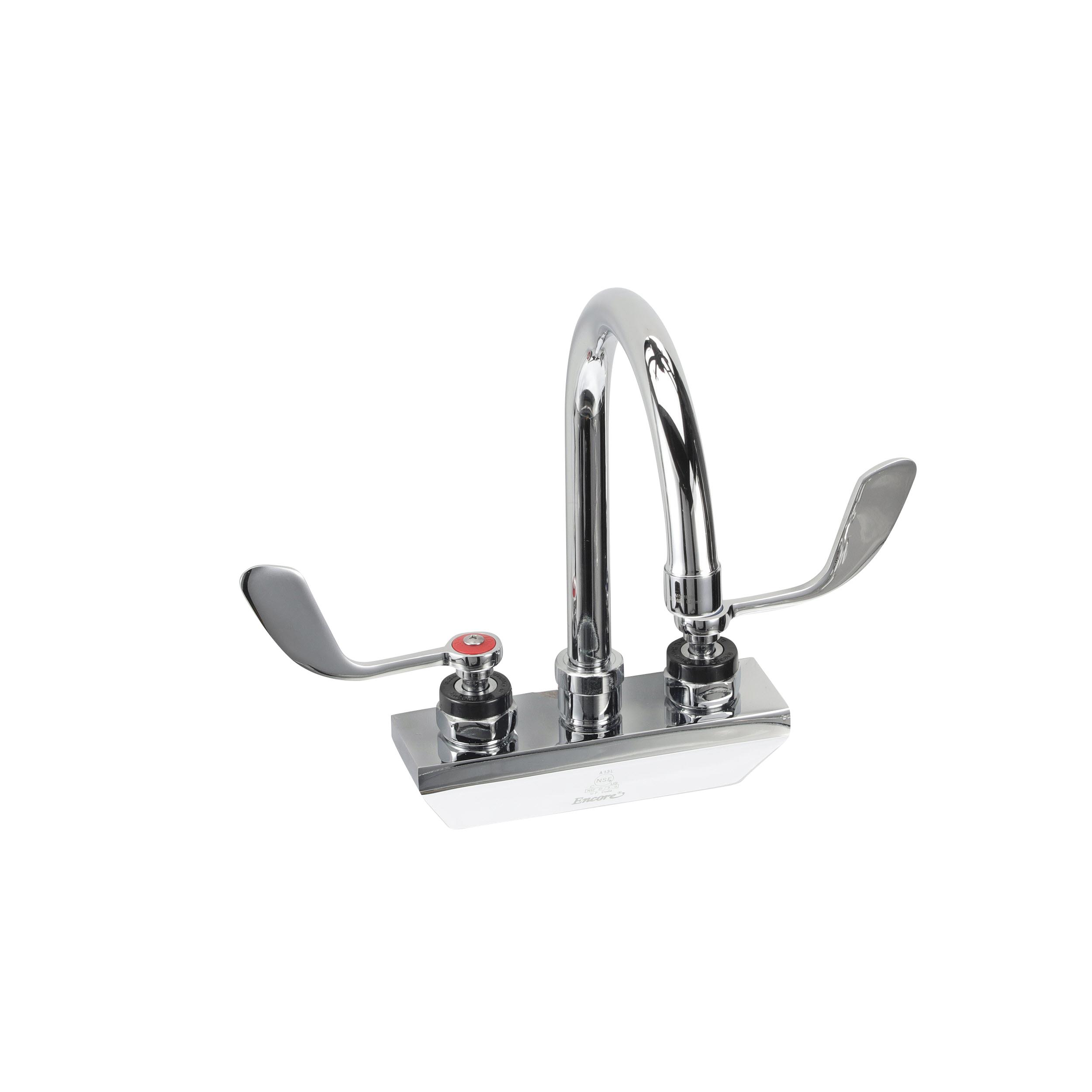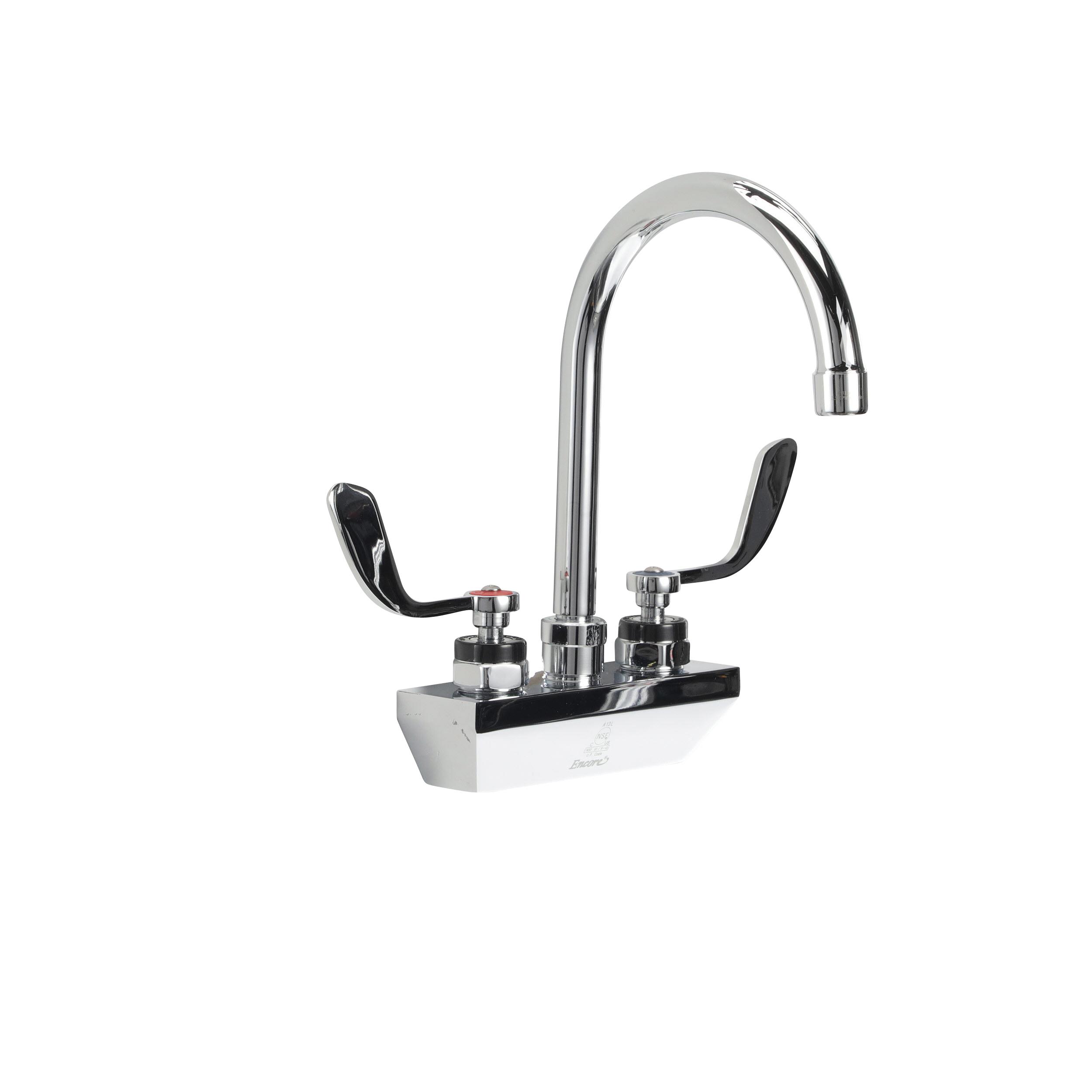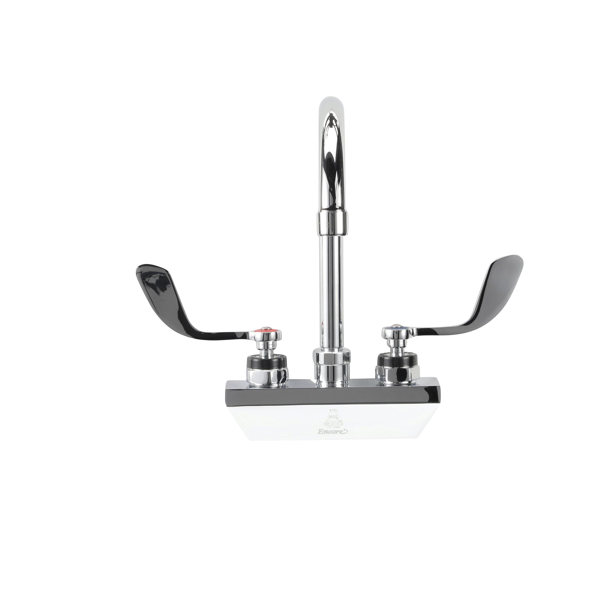Encore 4" OC Wall Mount Faucet Ceramic Valves with 6" Rigid Gooseneck Spout and 4" Wrist Blade Handles