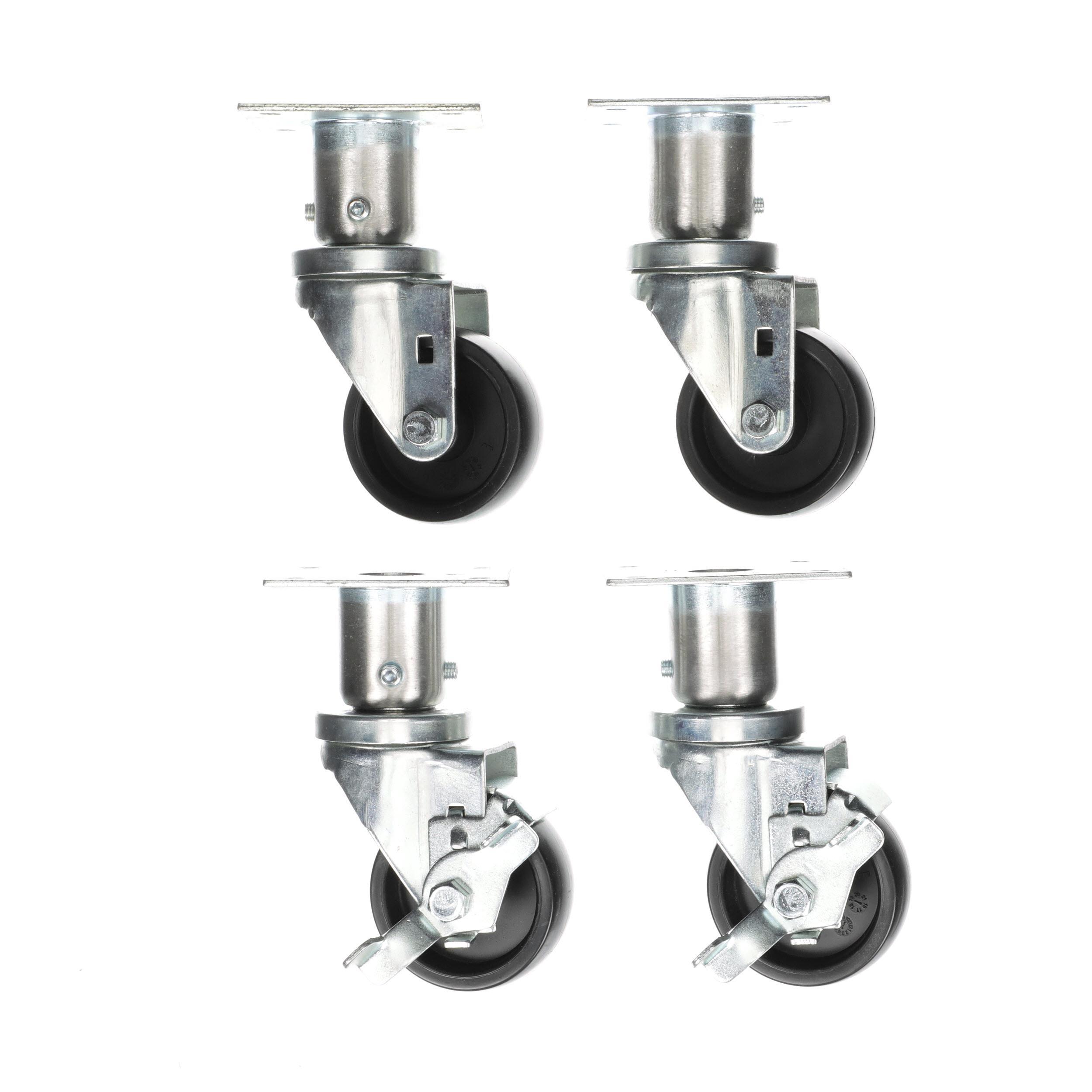 - Caster Kit, 6" OA Medium Duty 3-1/2" Square Plate Adjustable Caster Leg With 3" Black Polyolefin Wheel, 2 Brake And 2 Non-Brake In Retail Box