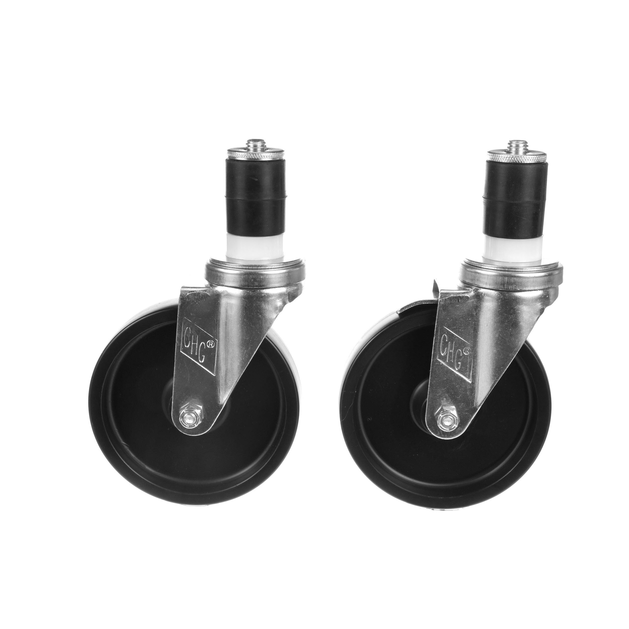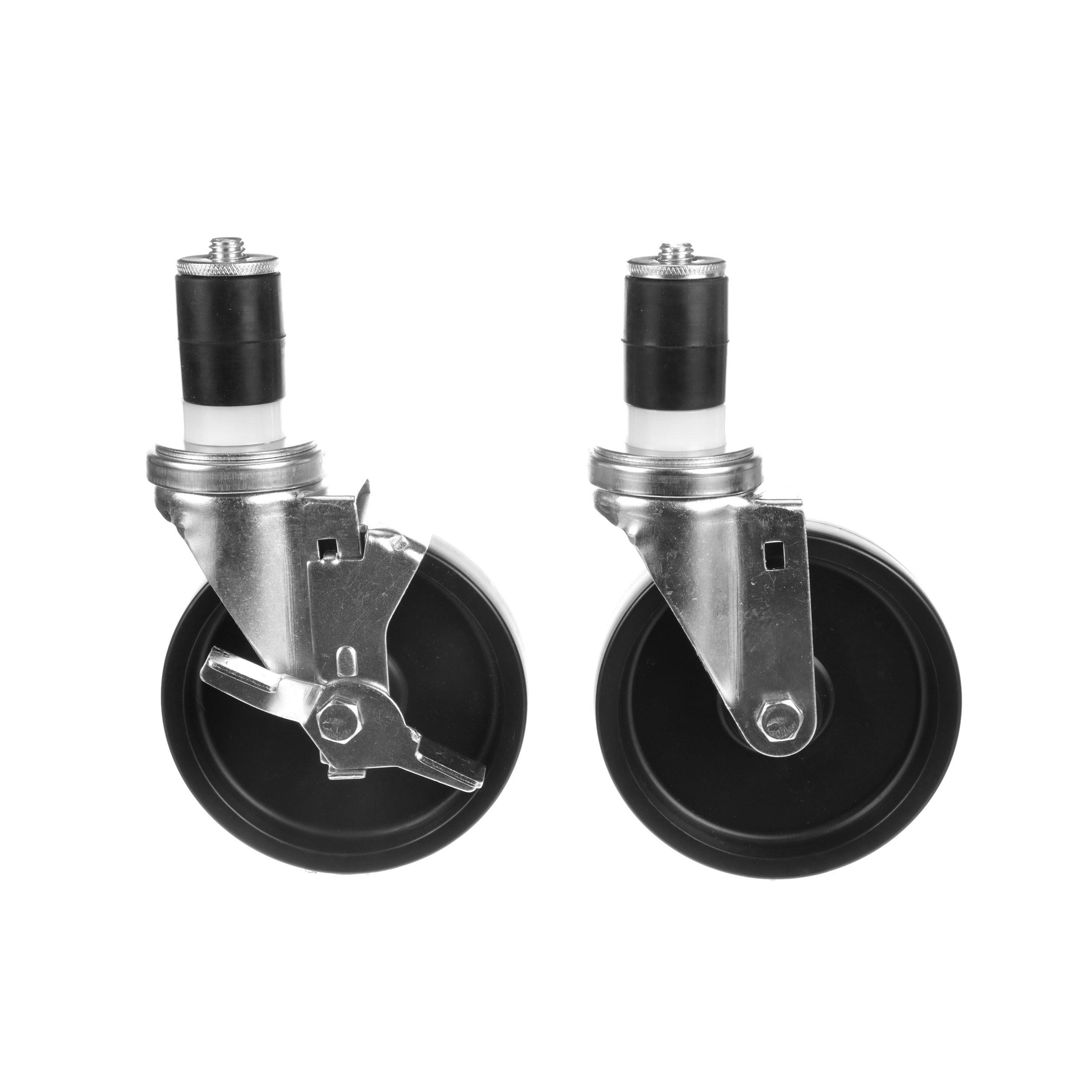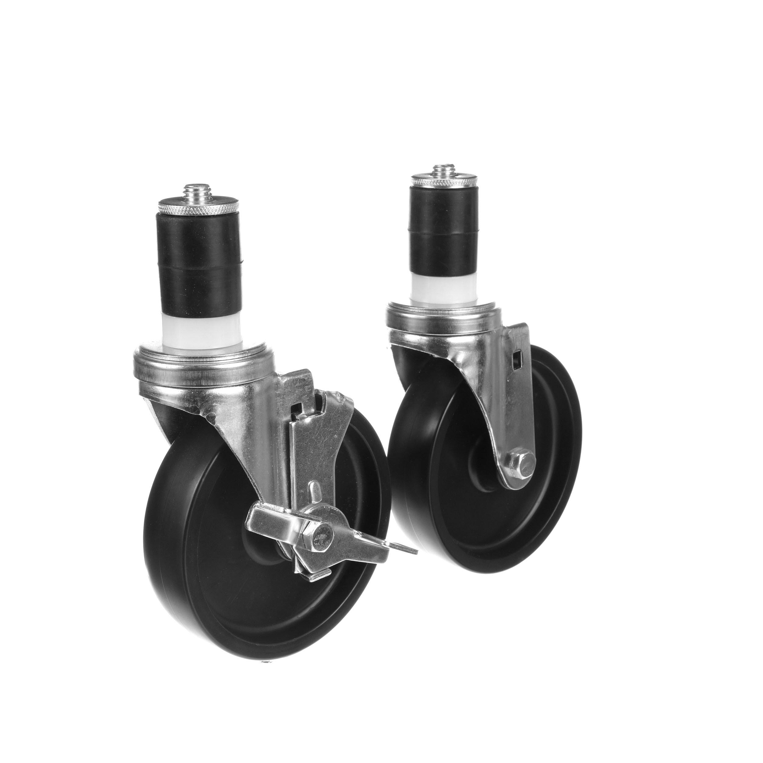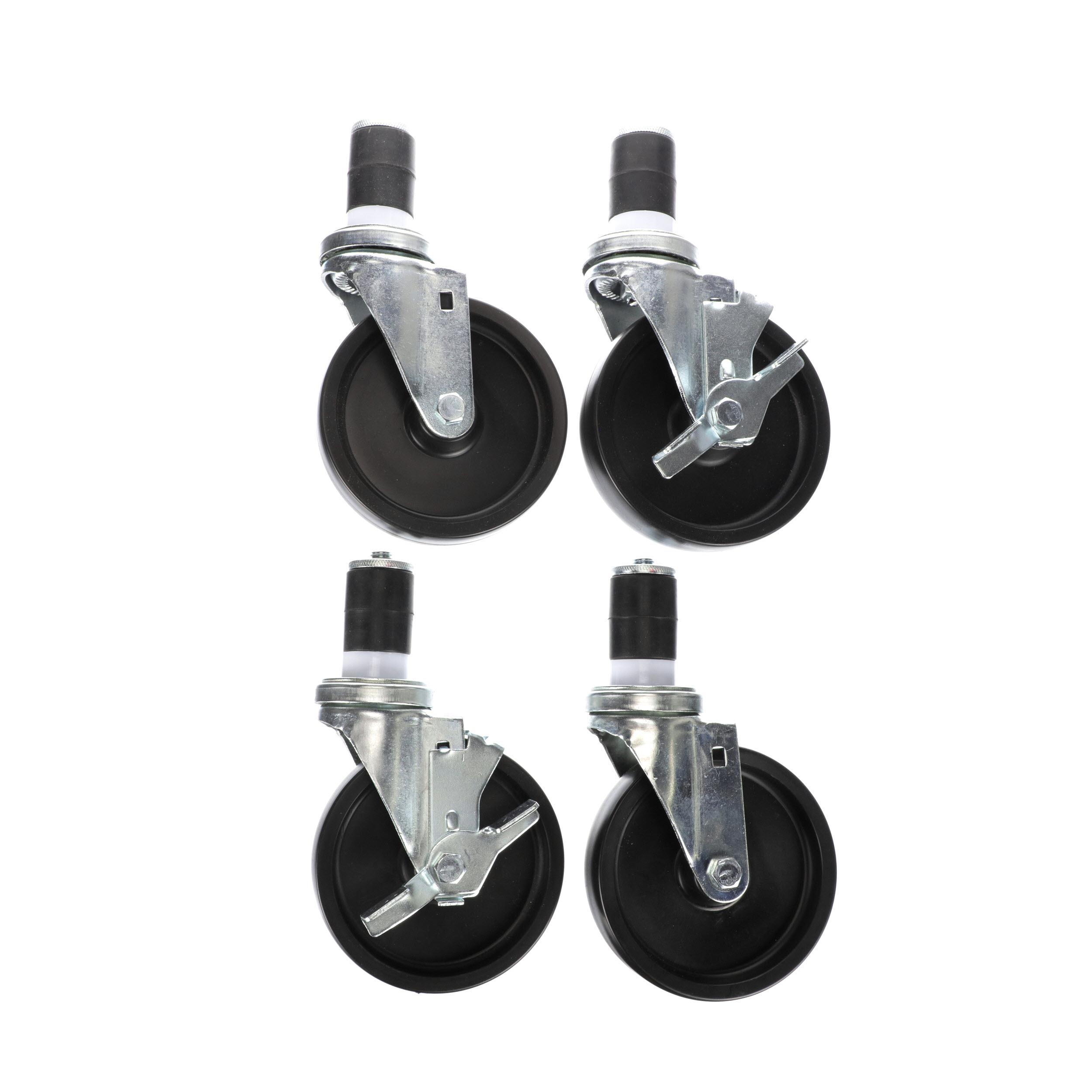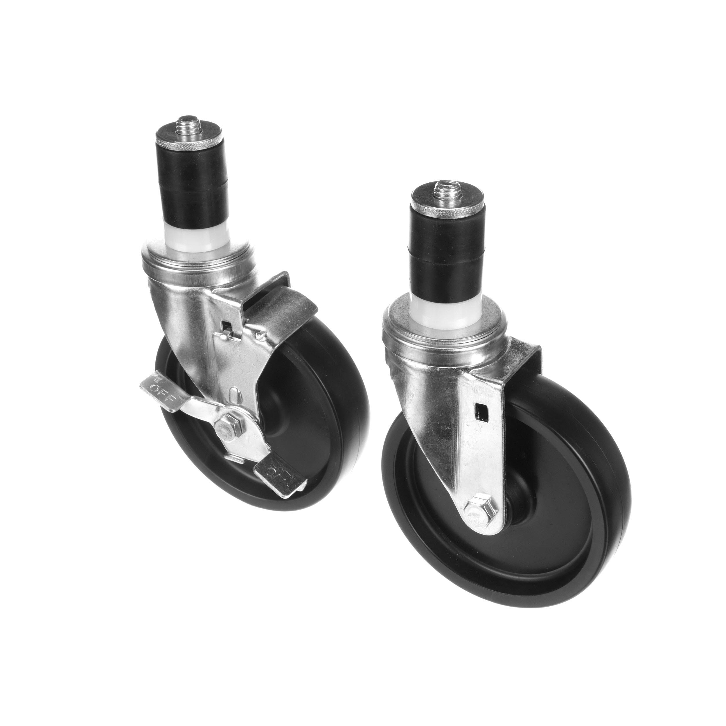 - Caster Kit, Medium Duty 1-1/2" Expanding Stem Caster With 5" Black Polyolefin Wheel, 2 Brake And 2 Non-Brake In Retail Box