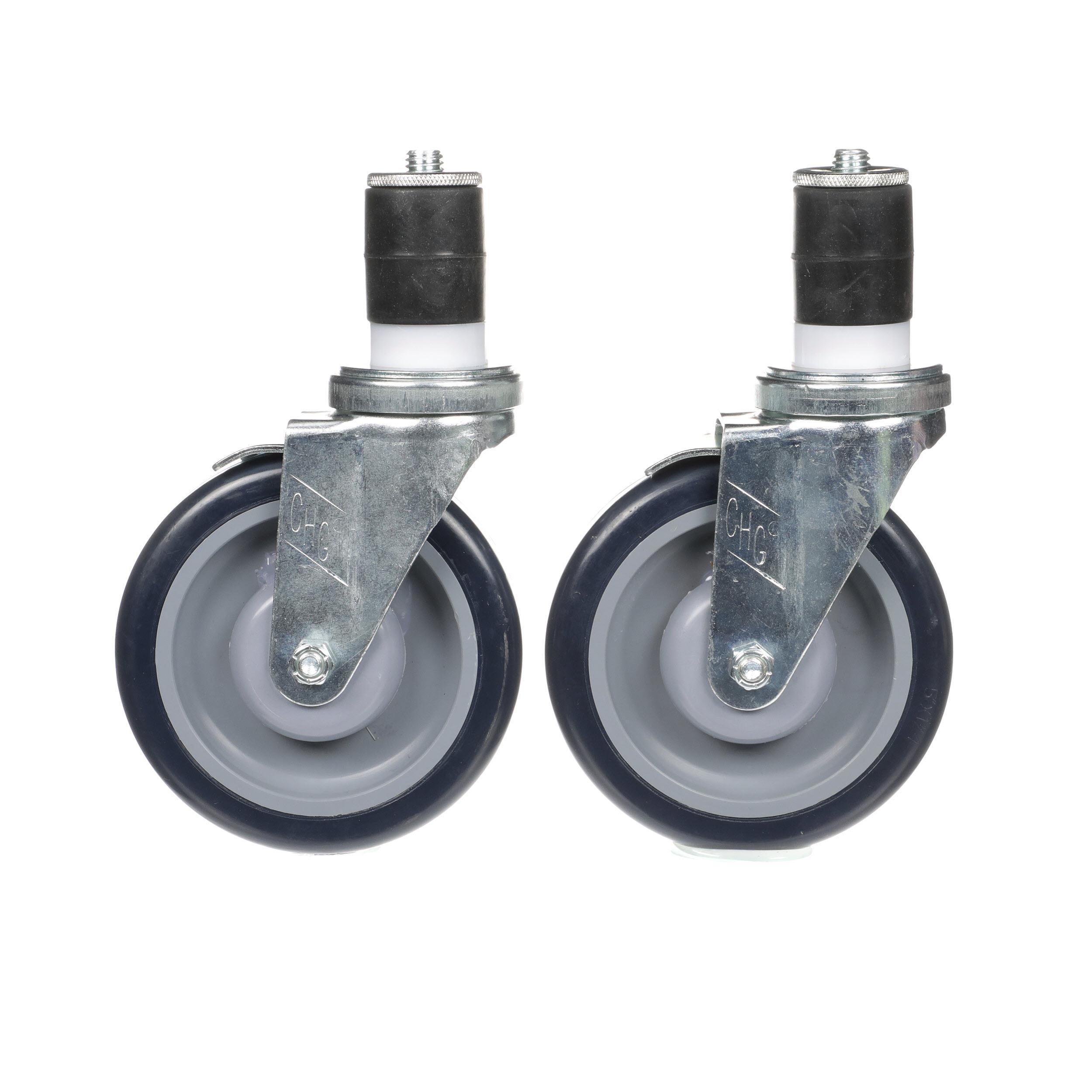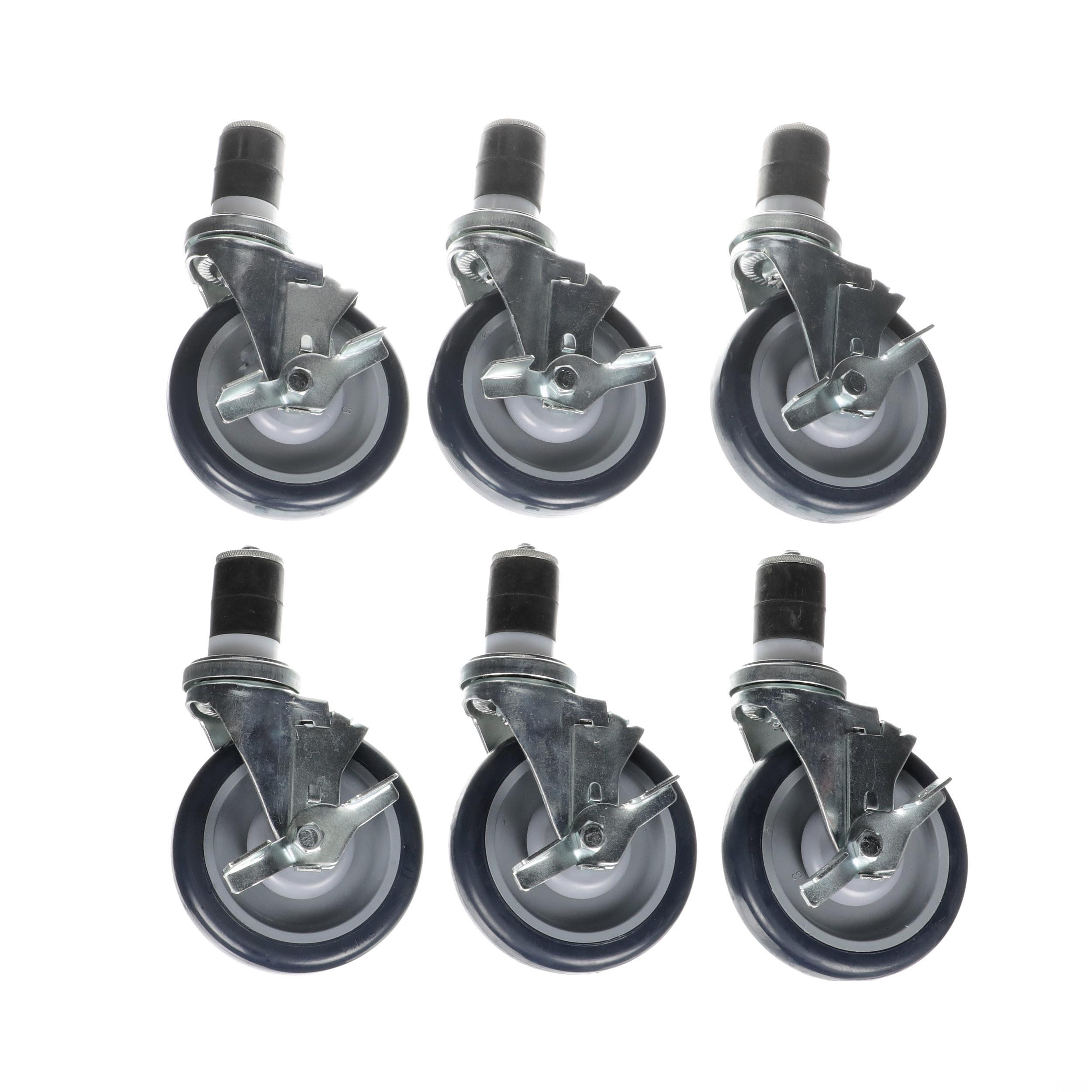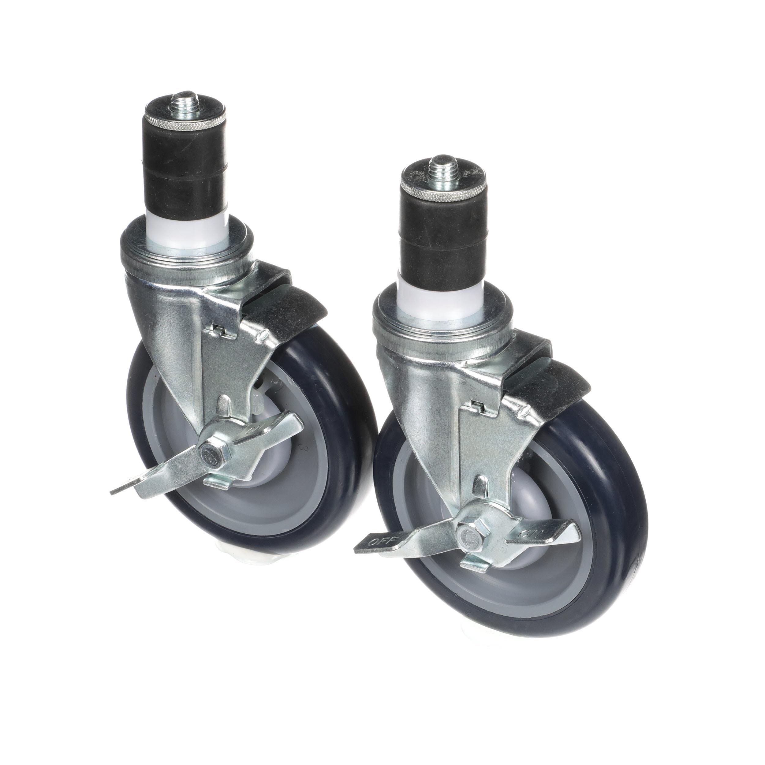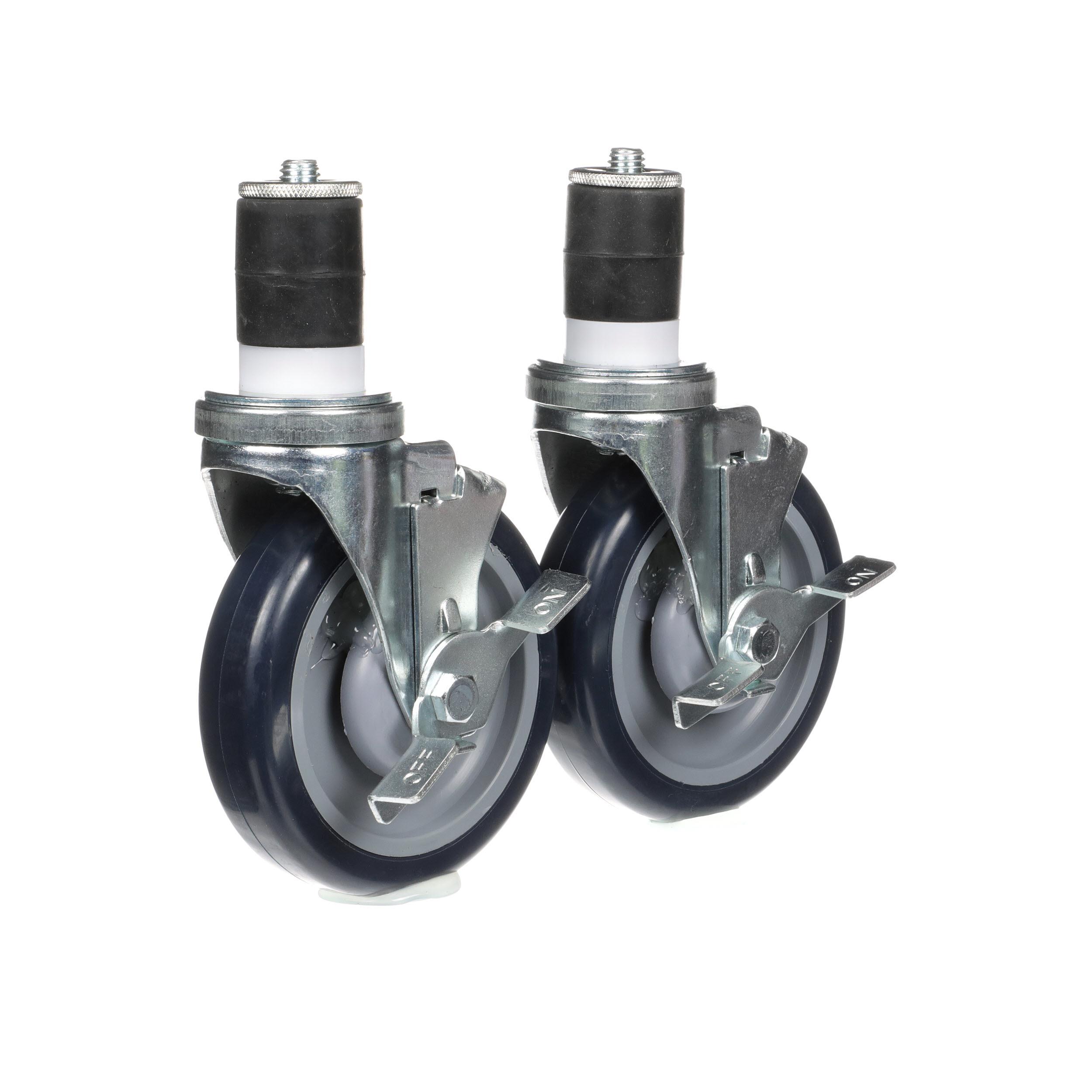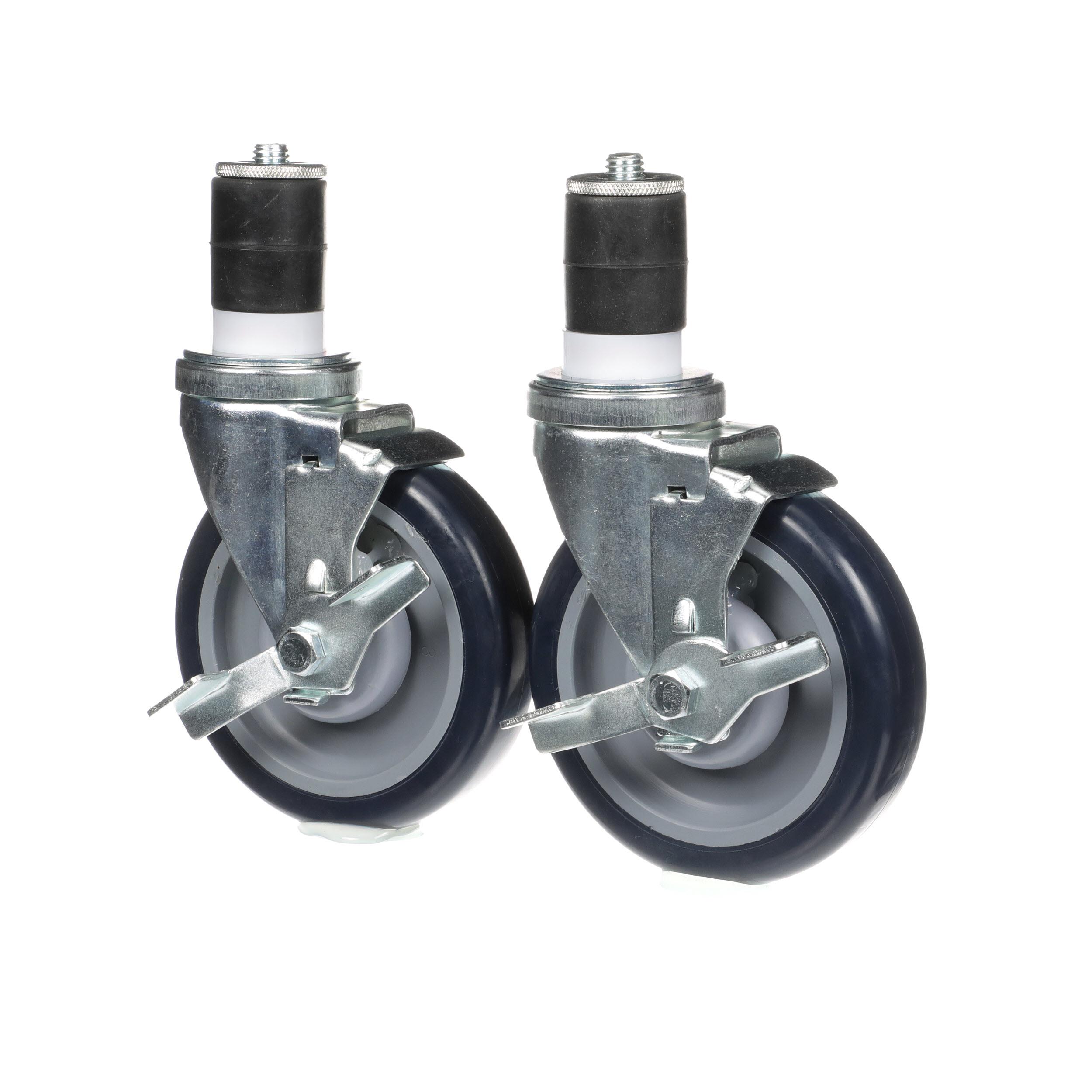 - Caster Kit, Medium Duty 1-5/8" Expanding Stem Caster With 5" Blue Polyurethane Wheel, 6 Brake In Retail Box