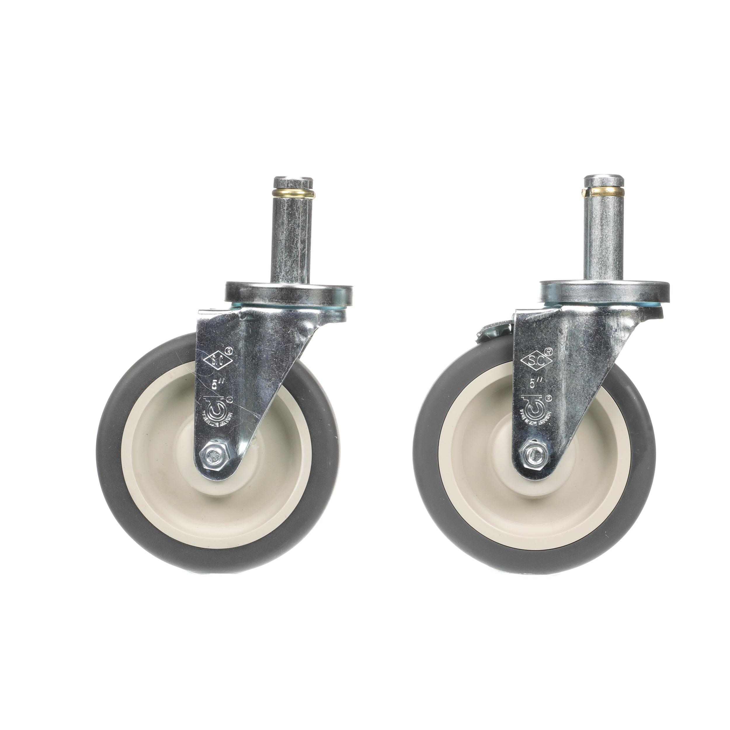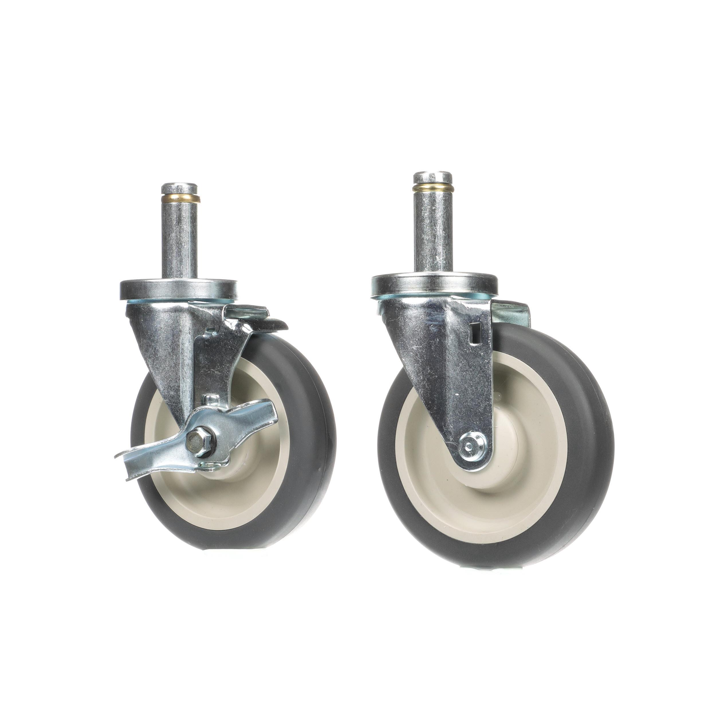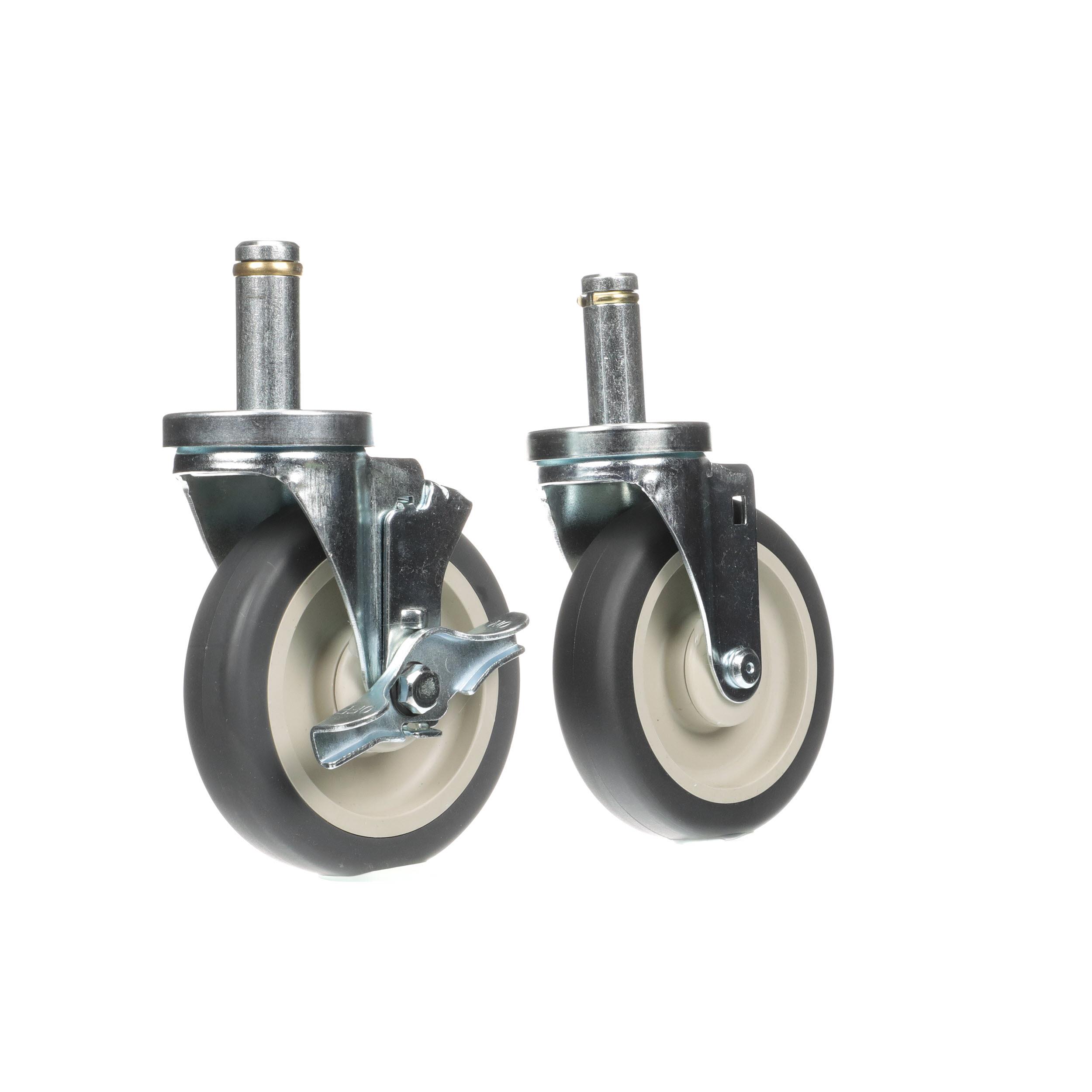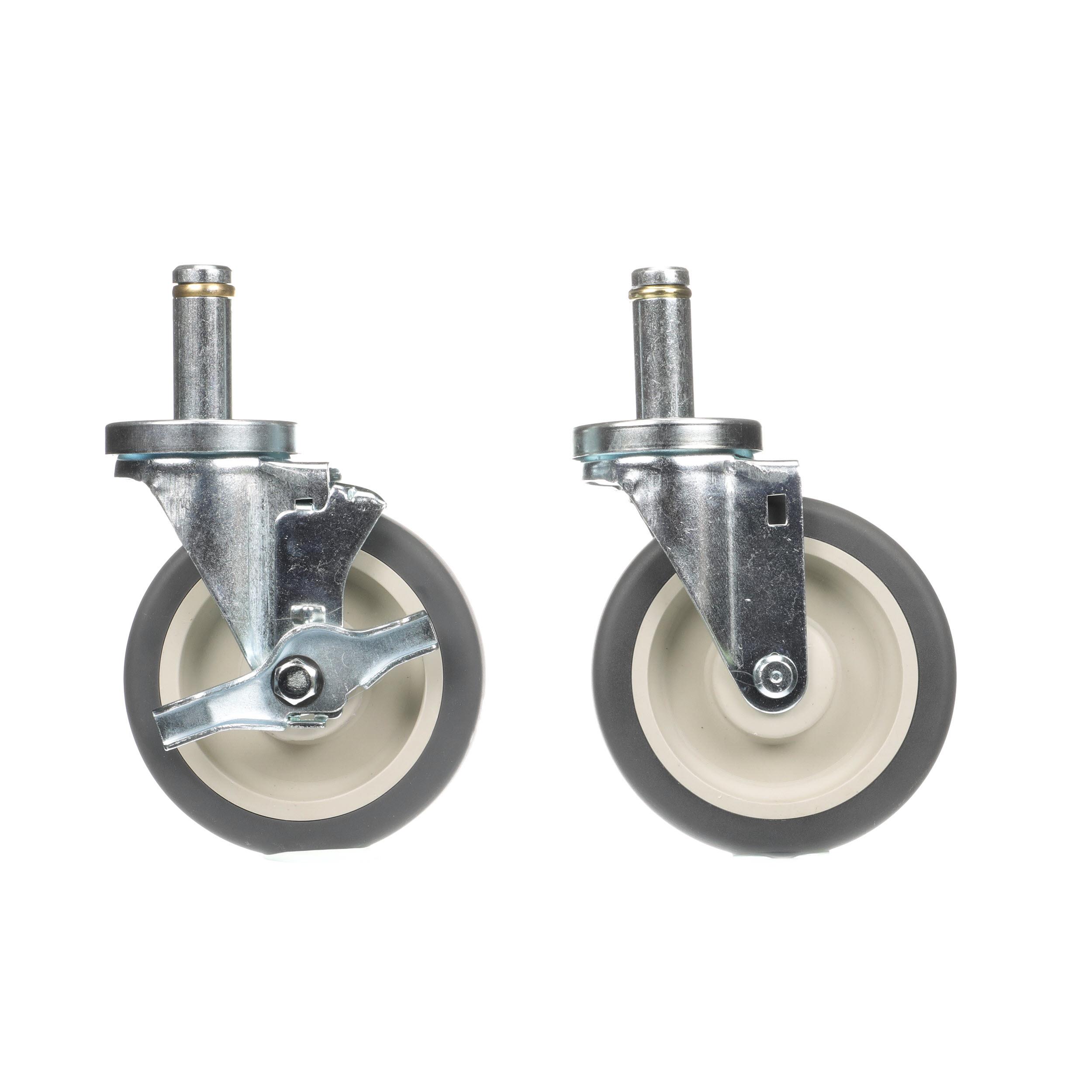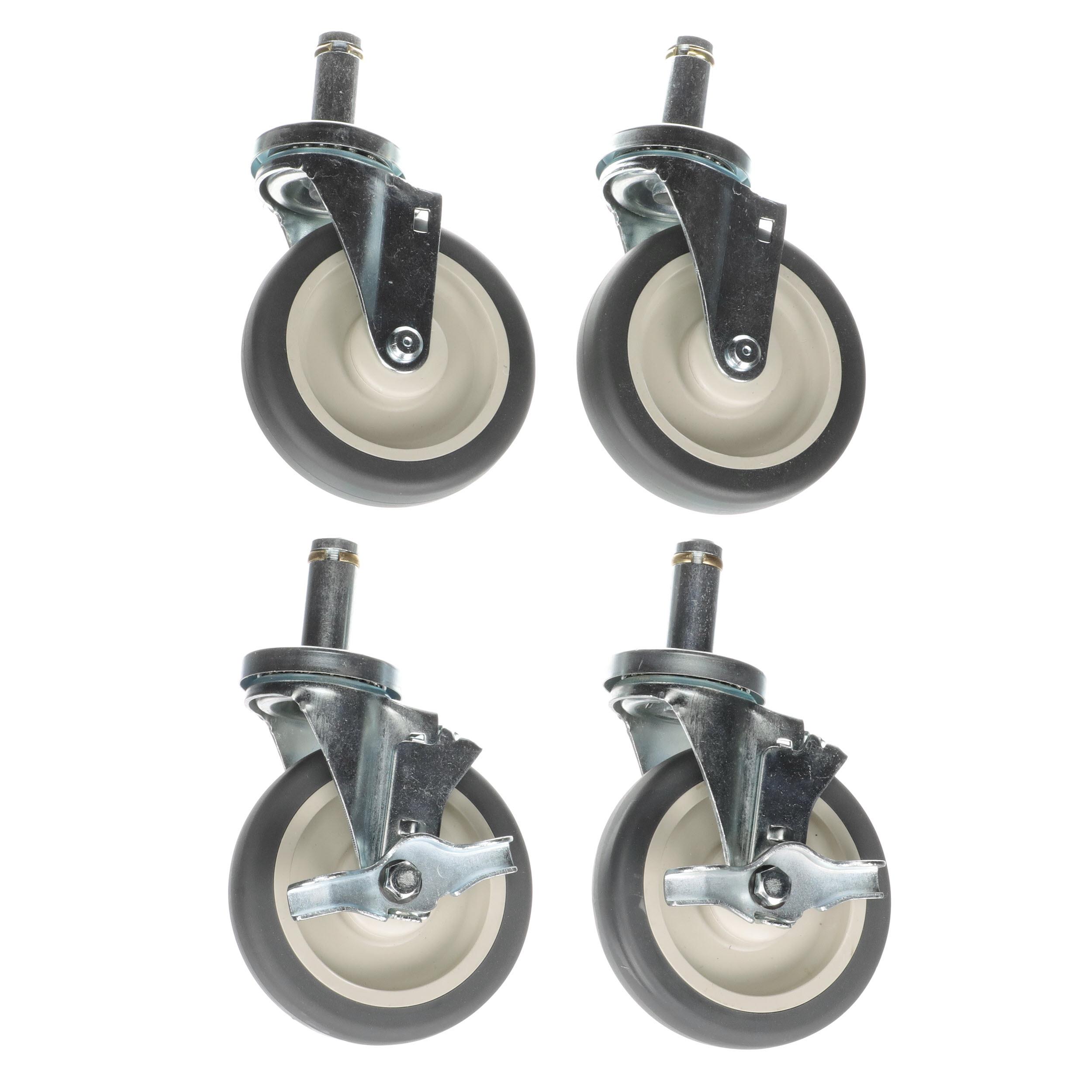 - Caster Kit, Medium Duty .846" x 2-3/4" Spring Ring Stem Caster With 5" Gray Polyurethane Wheel, 2 Brake And 2 Non-Brake In Retail Box