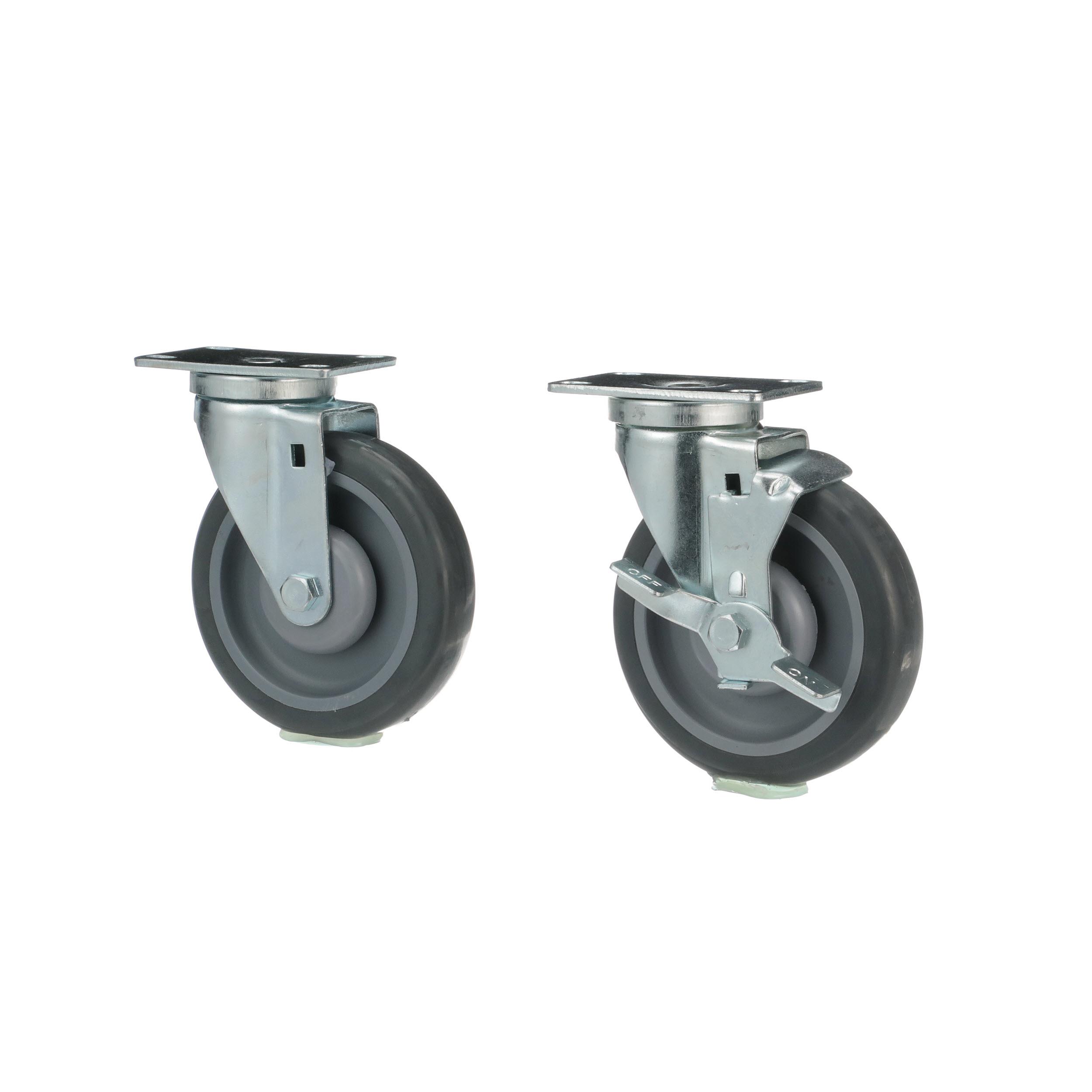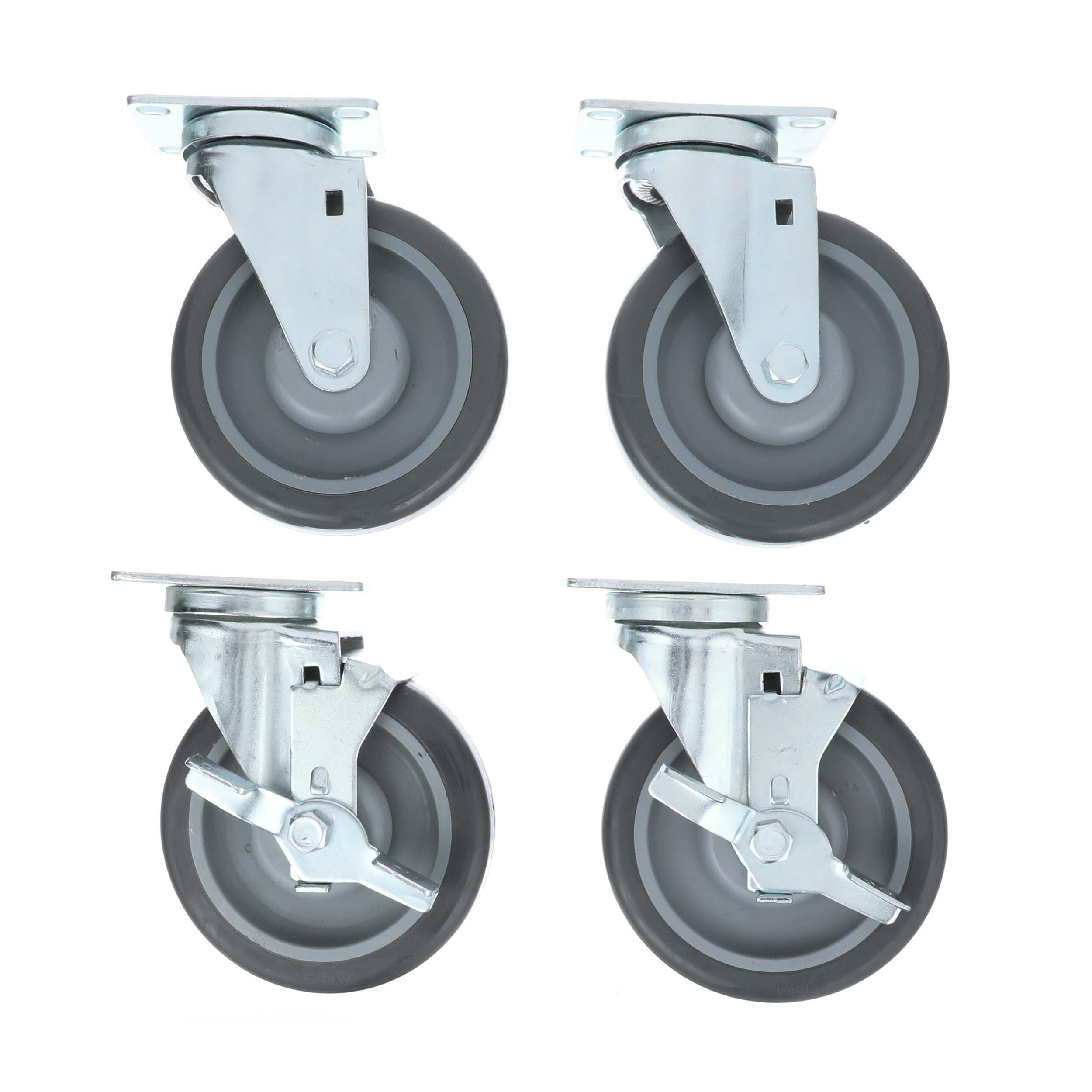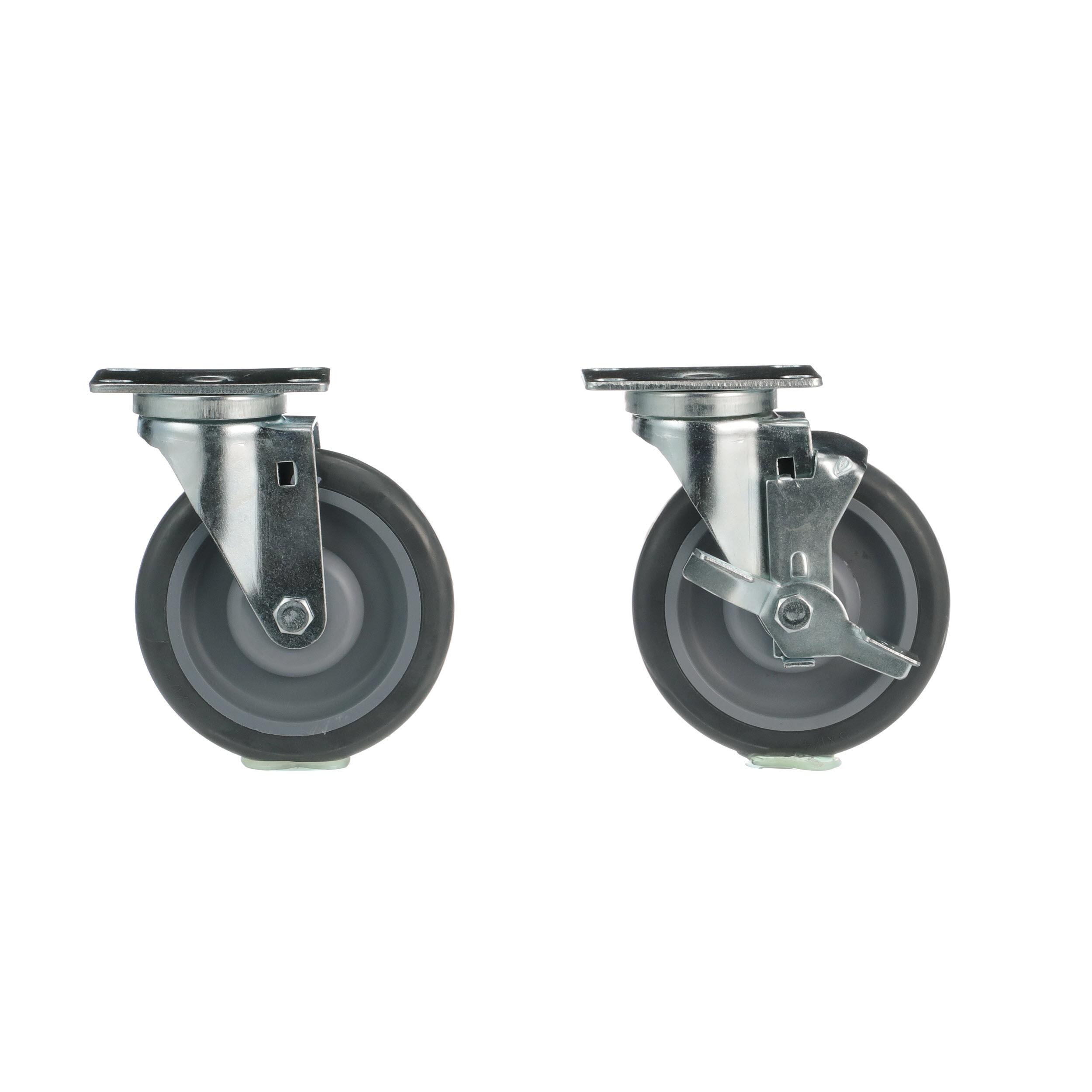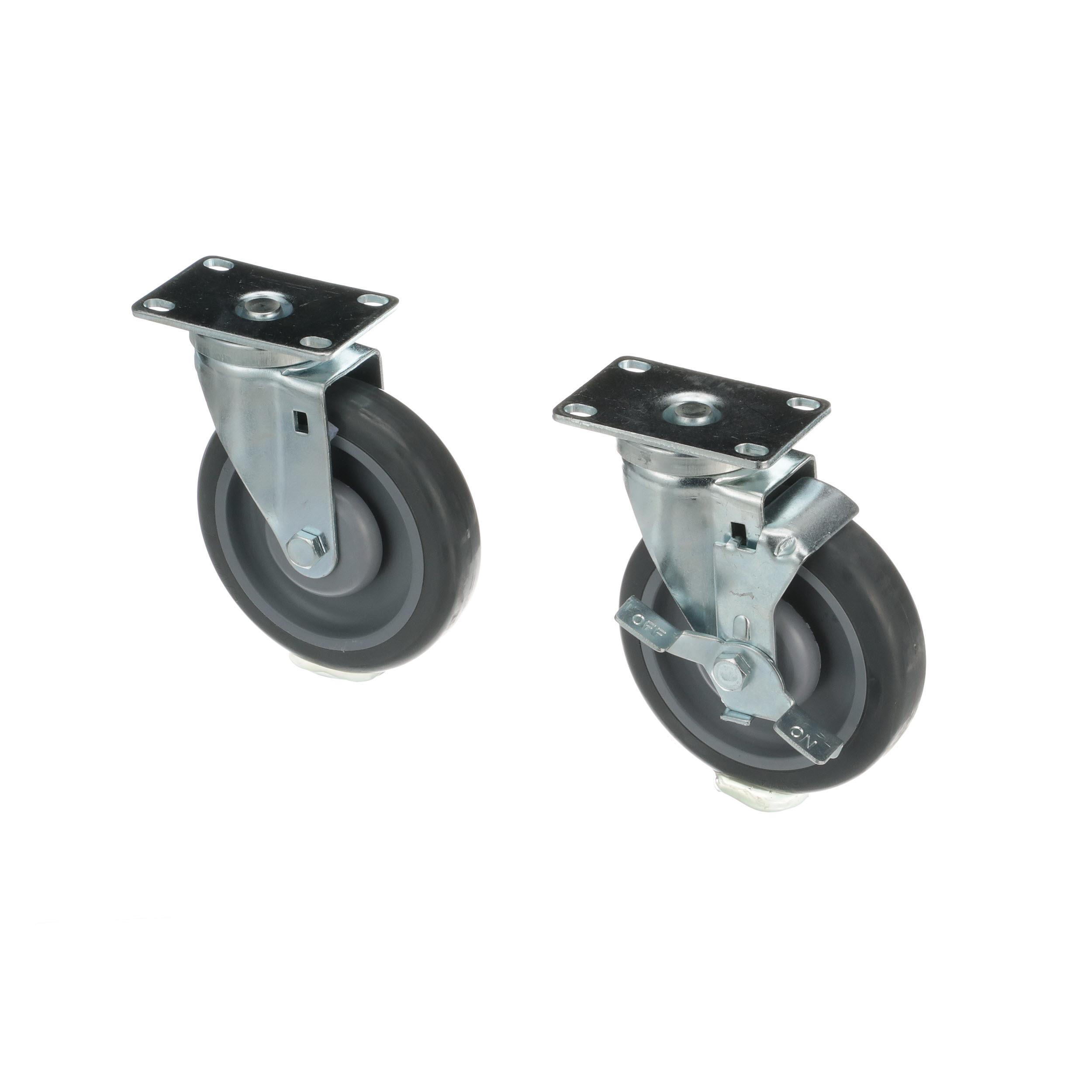 - Caster Kit, Medium Duty 2-3/8" x 3-5/8" Plate Caster With 5" Gray Polyurethane Wheel, 2 Brake And 2 Non-Brake In Retail Box