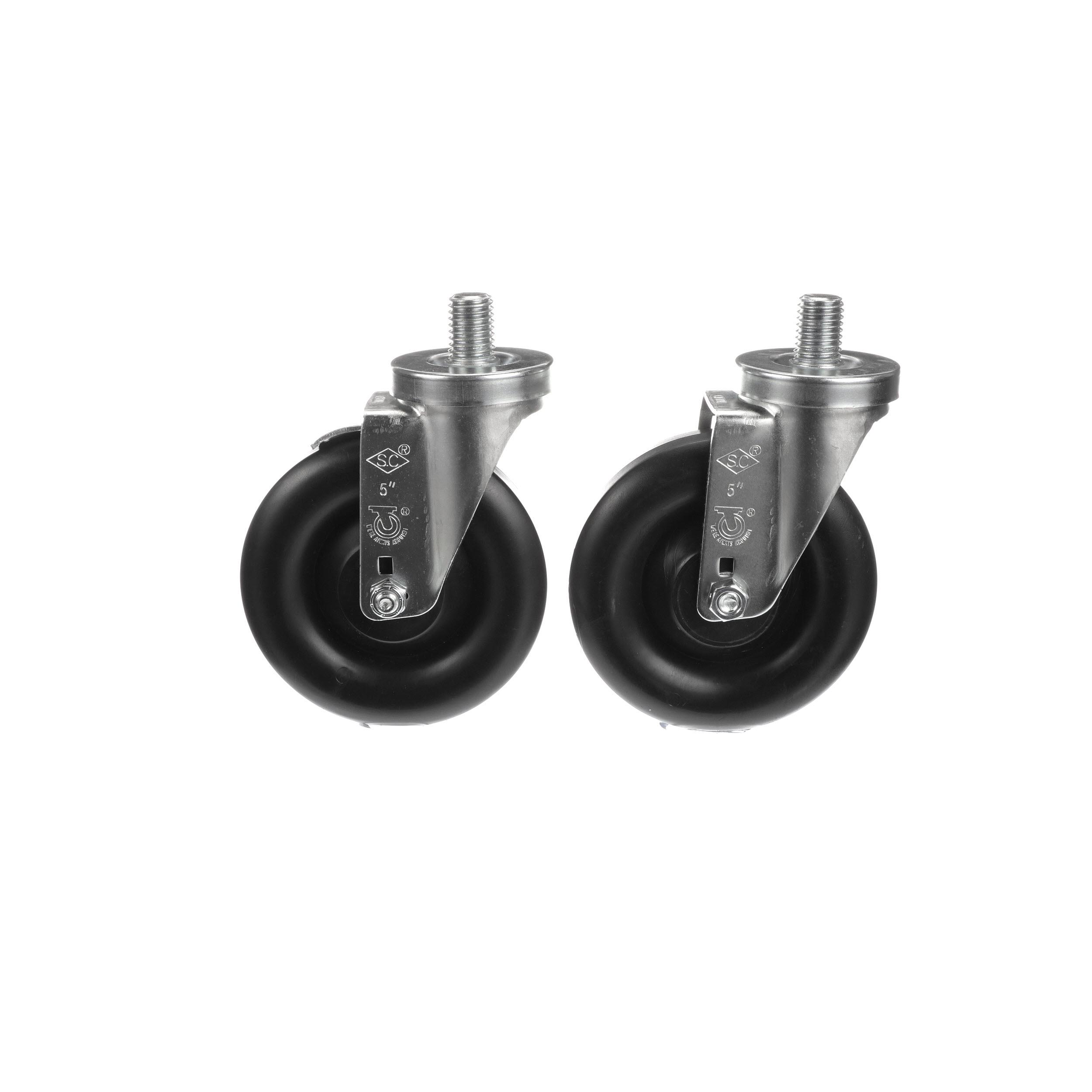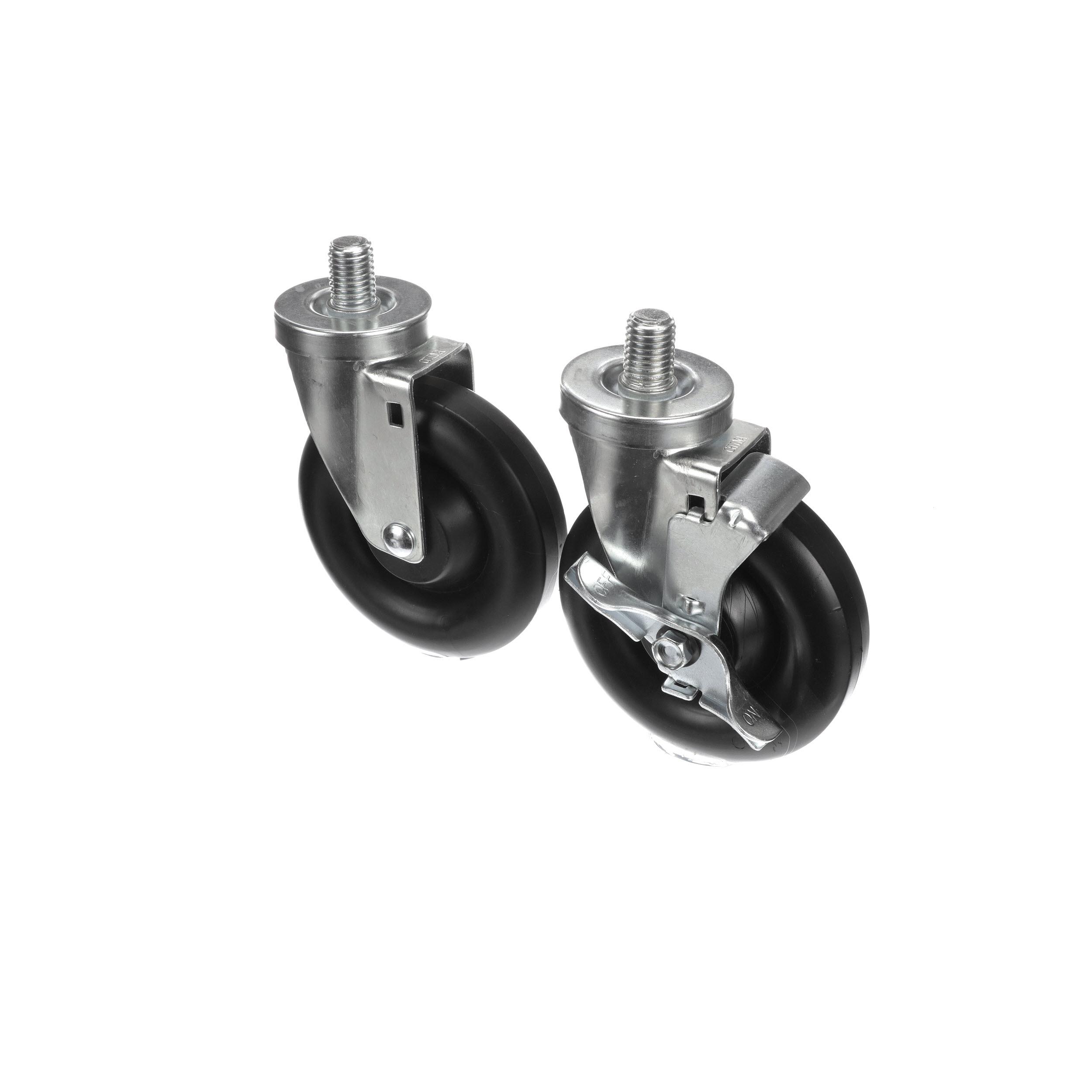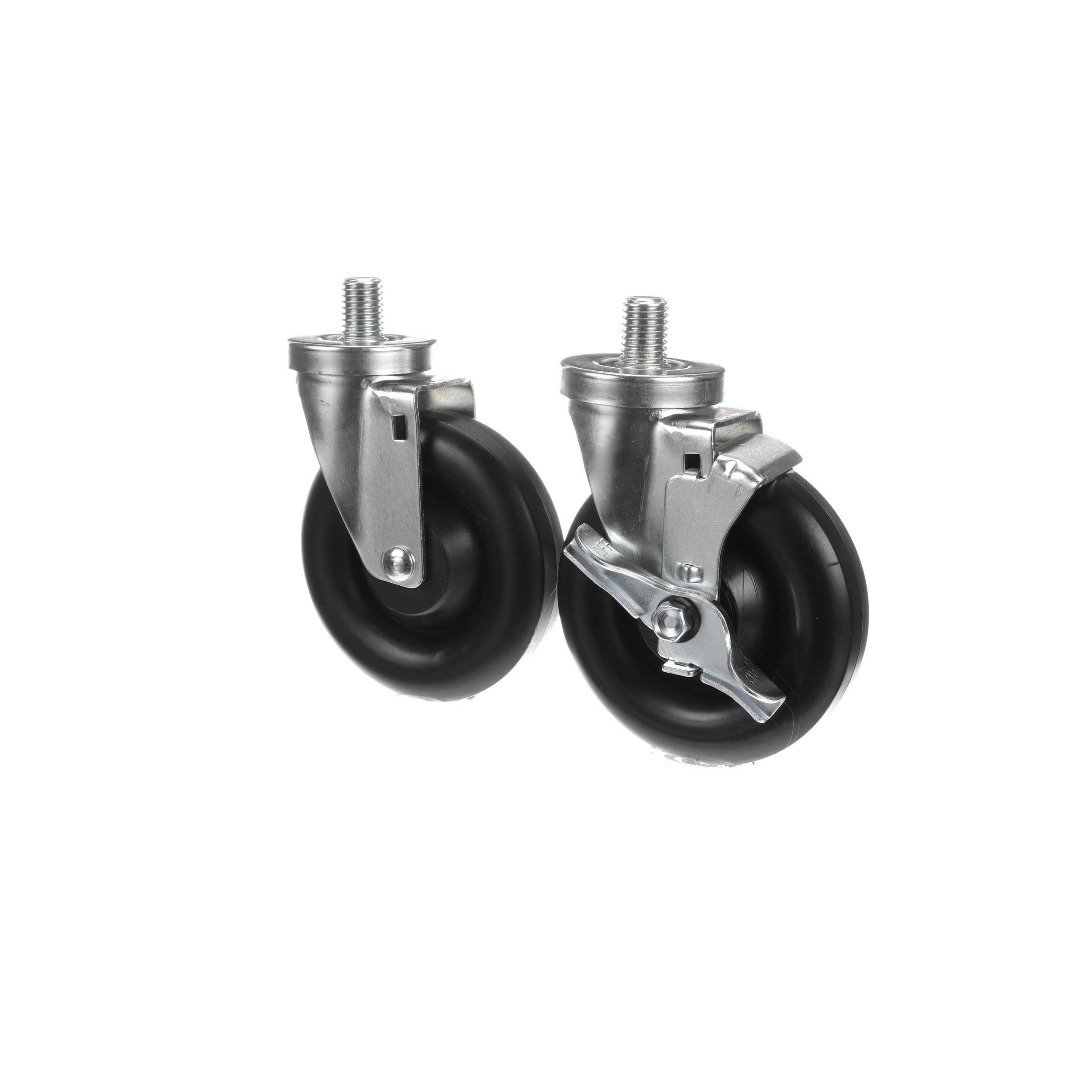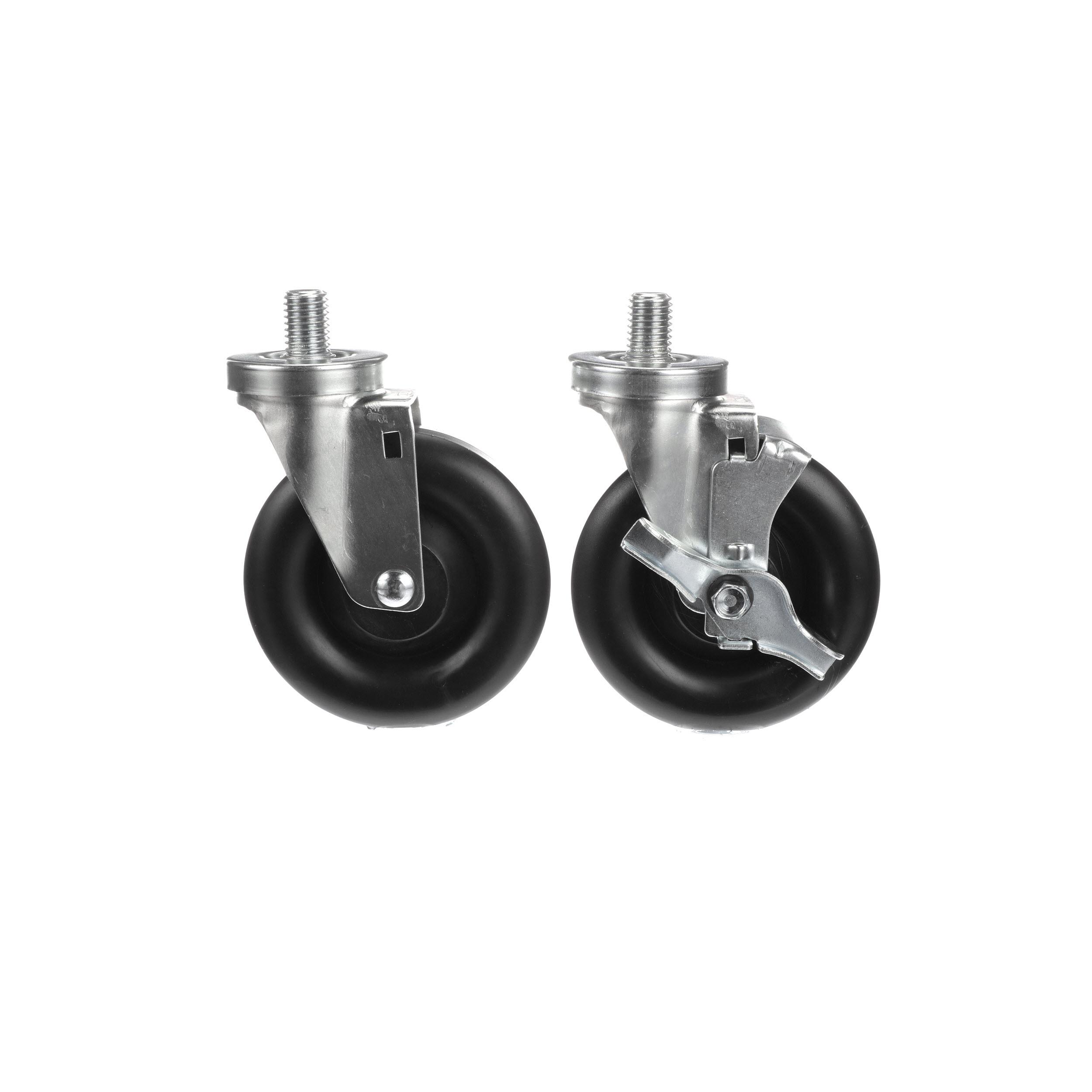 - Caster Kit, Medium Duty 3/4-10 x 1" Threaded Stem Caster With 5" Black Polyolefin Wheel, 2 Brake And 2 Non-Brake In Retail Box
