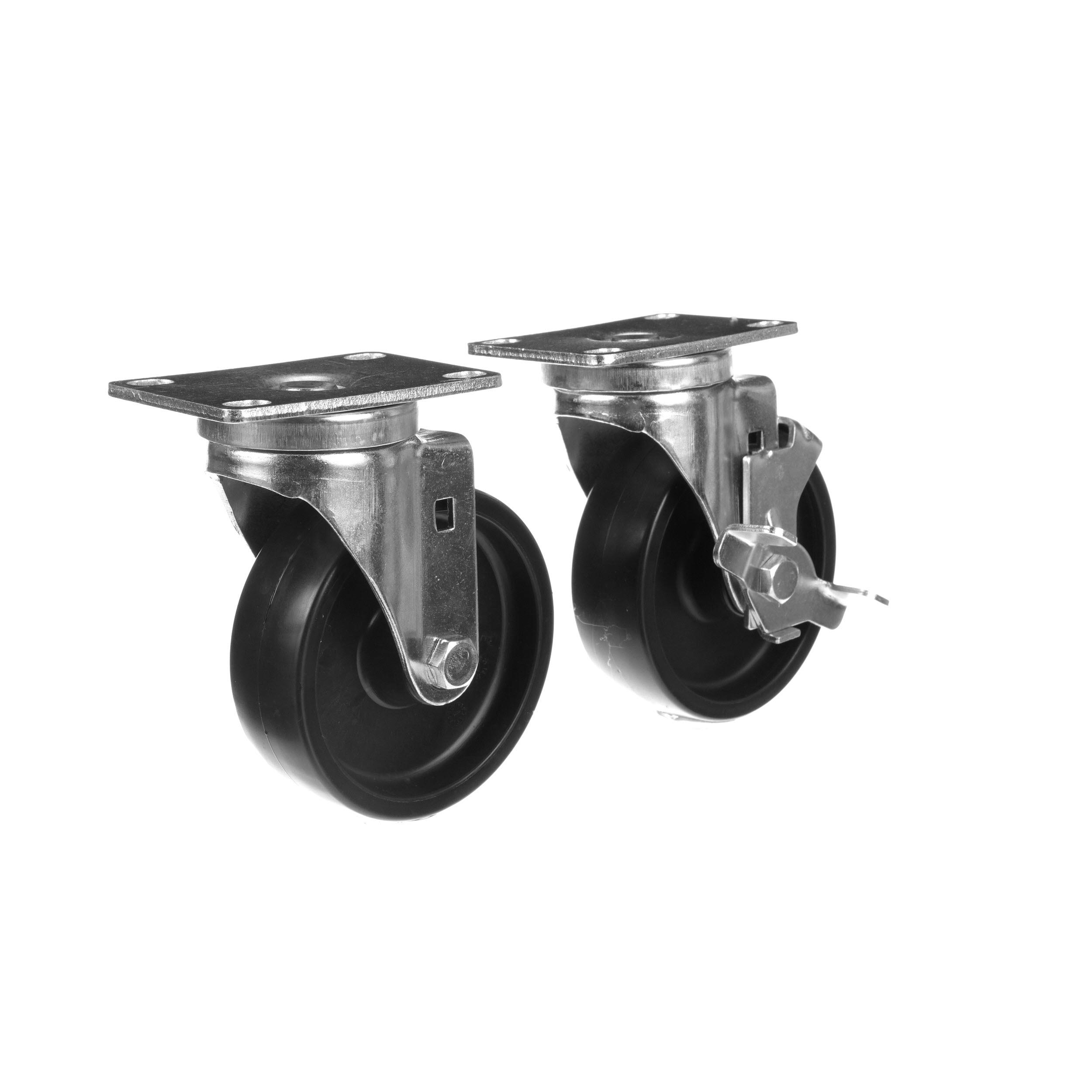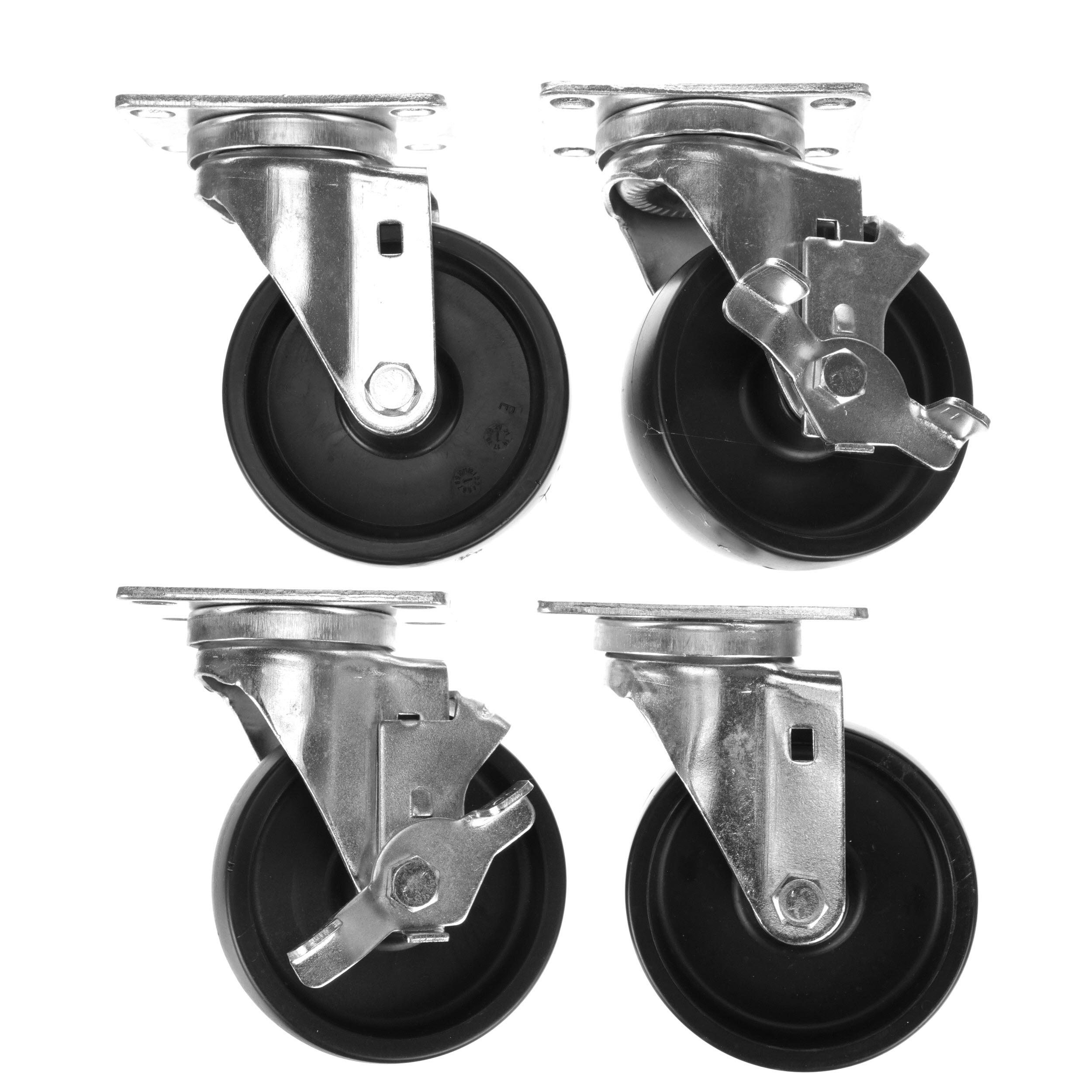 - Caster Kit, Medium Duty 2-3/8" x 3-5/8" Plate Caster With 4" Black Polyolefin Wheel, 2 Brake And 2 Non-Brake In Retail Box