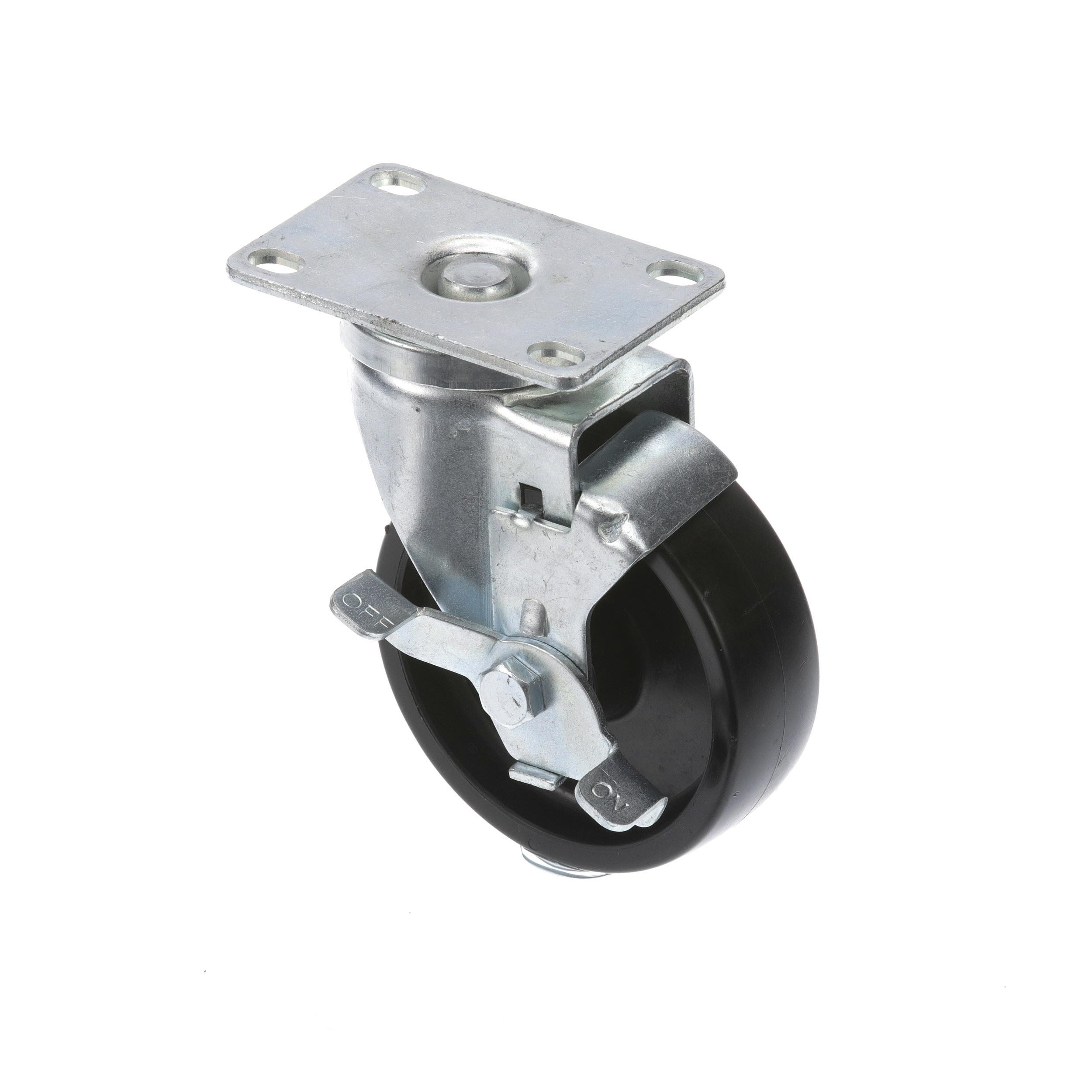 Medium Duty 2-3/8" x 3-5/8" Plate Caster With 4" Black Polyolefin Wheel With Brake