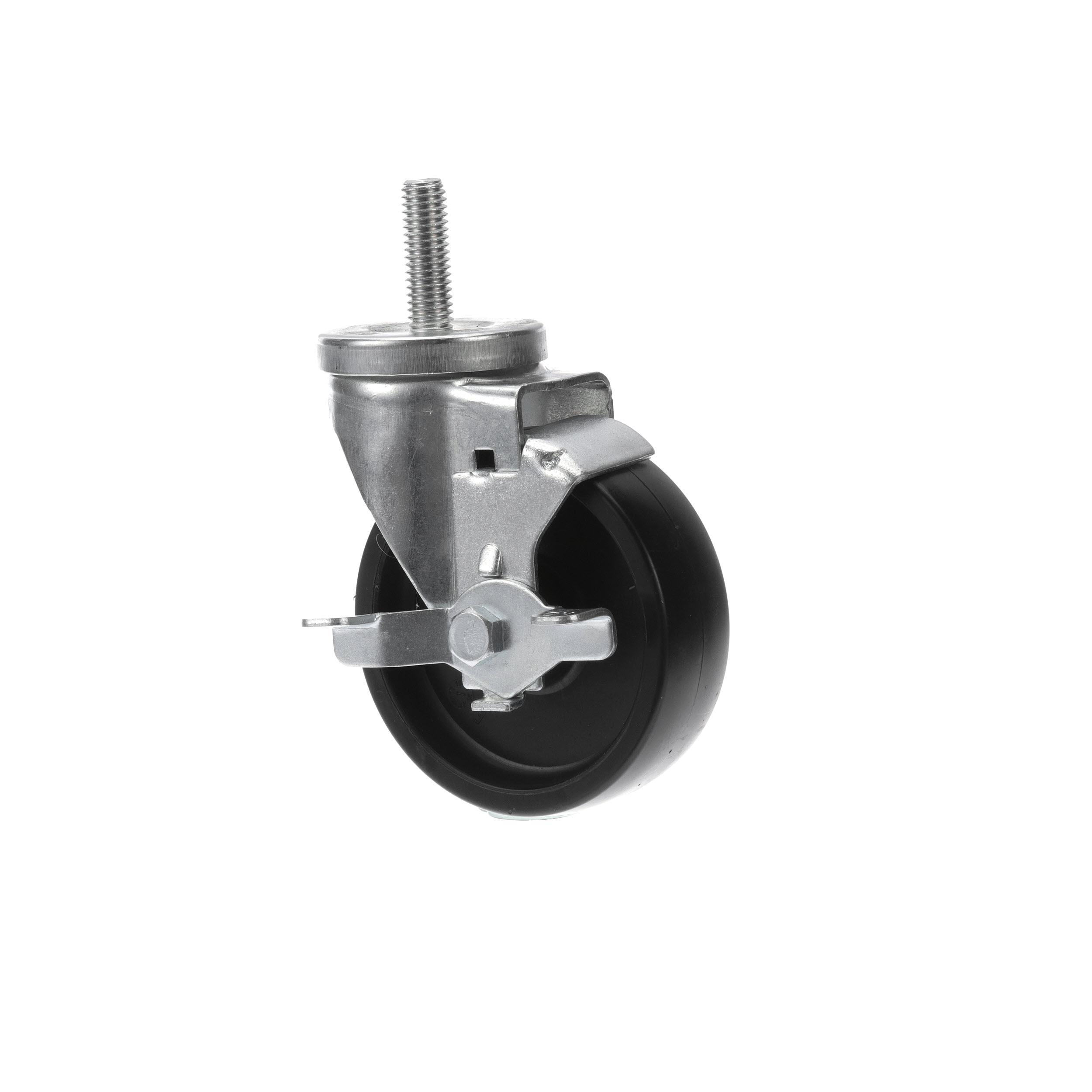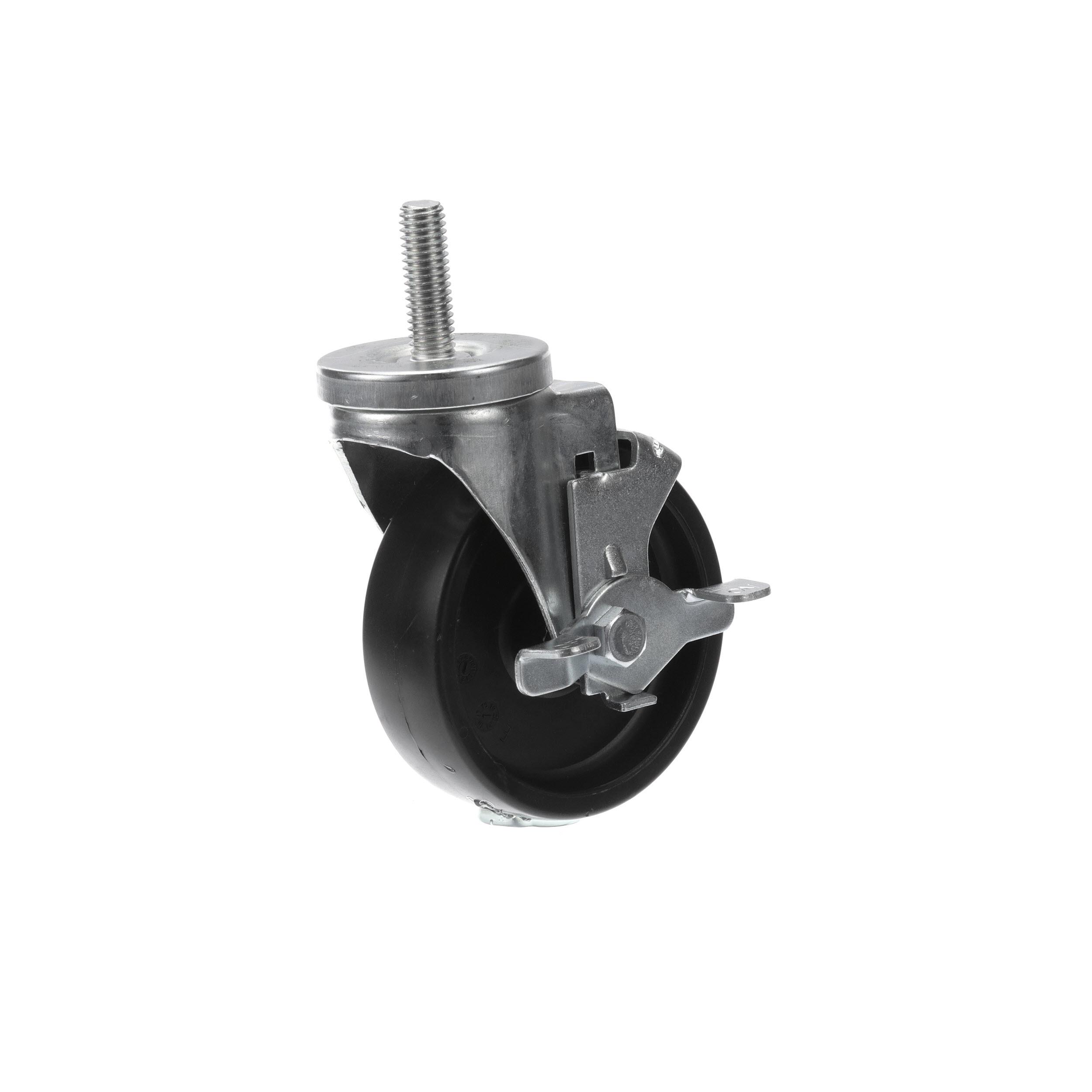 SEE LINK BELOW FOR PROMO PRICING- Medium Duty 1/2-13 x 1-1/2" Threaded Stem Caster With 4" Black Polyolefin Wheel With Brake