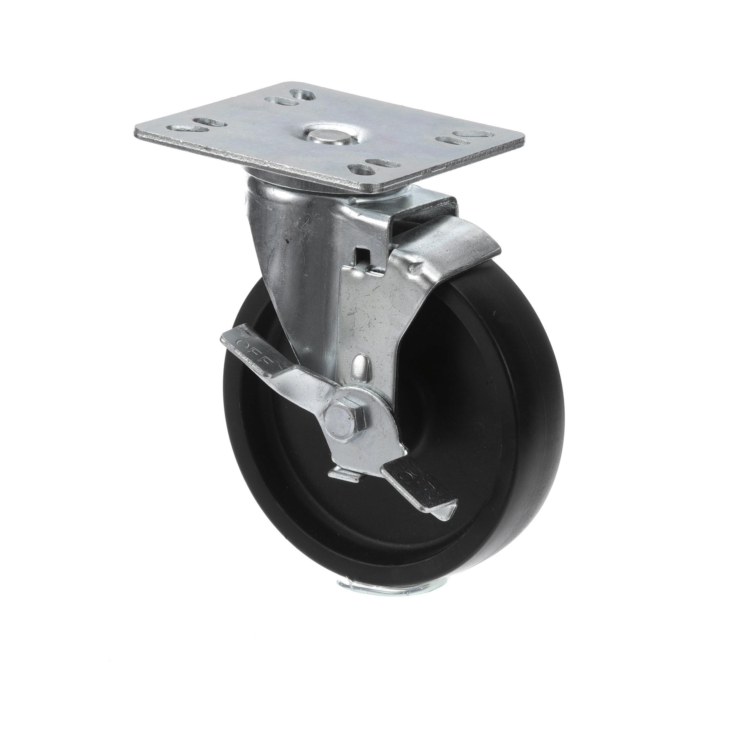 - Medium Duty 4" x 4" Universal Plate Caster With 5" Black Polyolefin Wheel With Brake