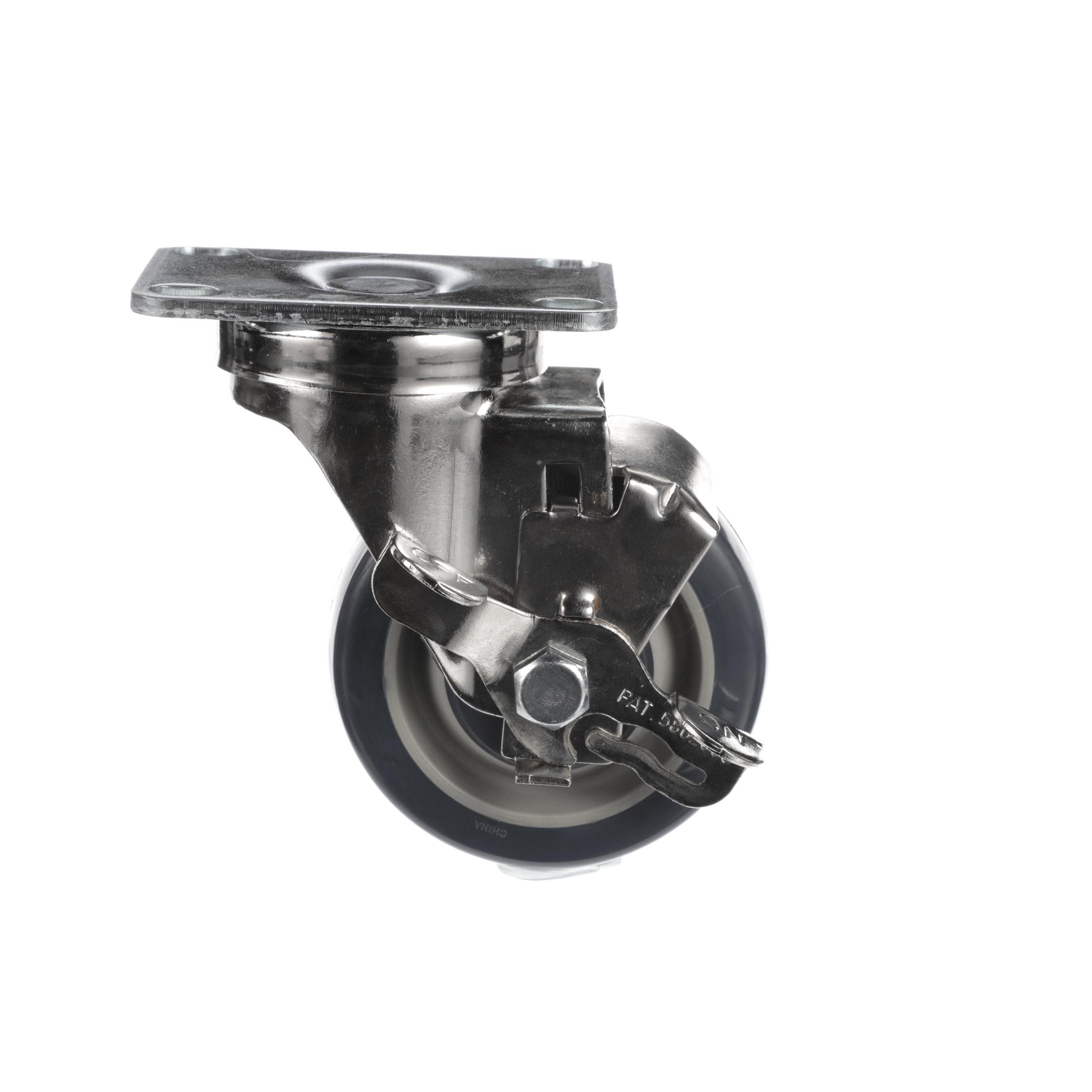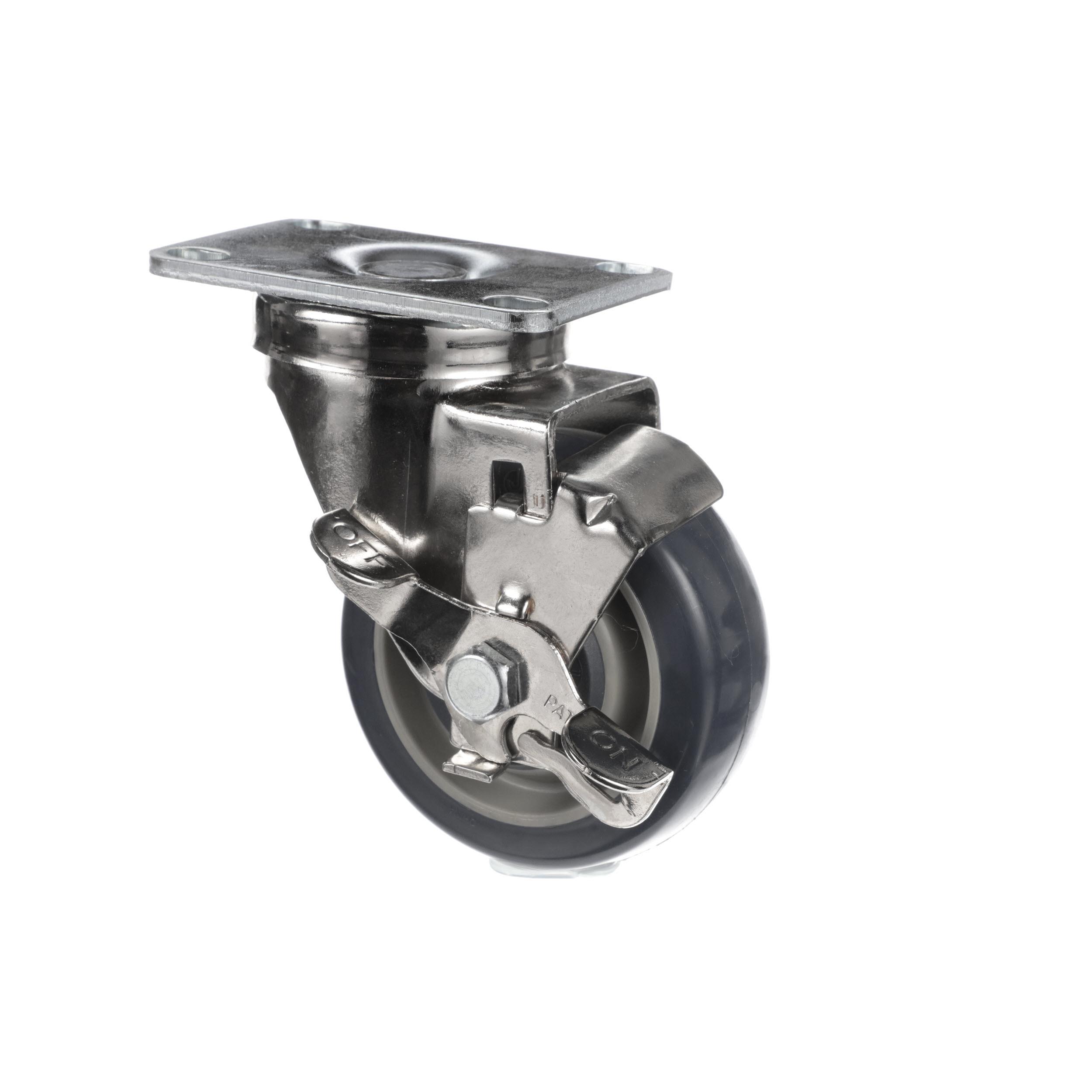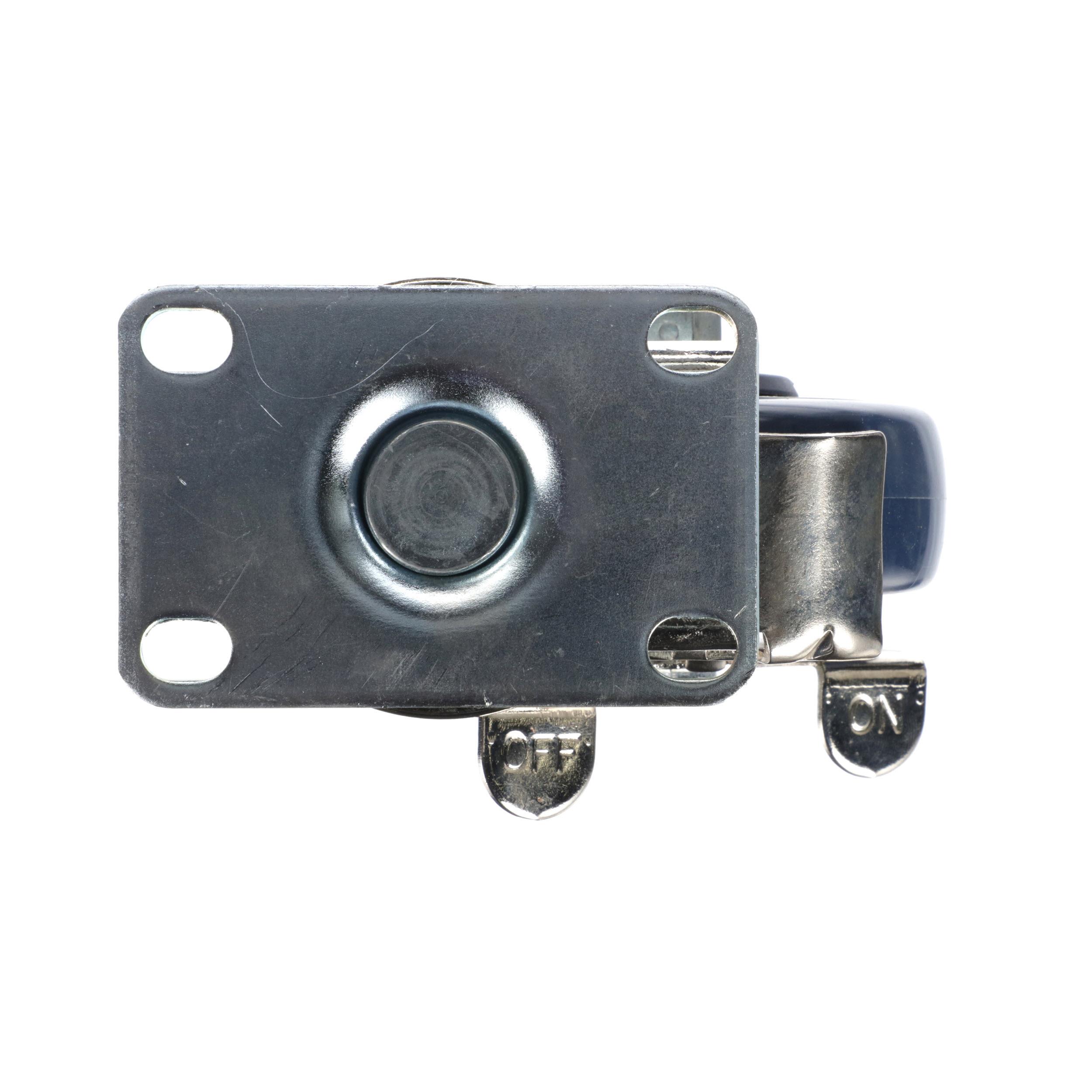 - Medium Duty 2-3/8" x 3-5/8" Plate Caster With 3-1/2" Blue Polyurethane Wheel And Brake