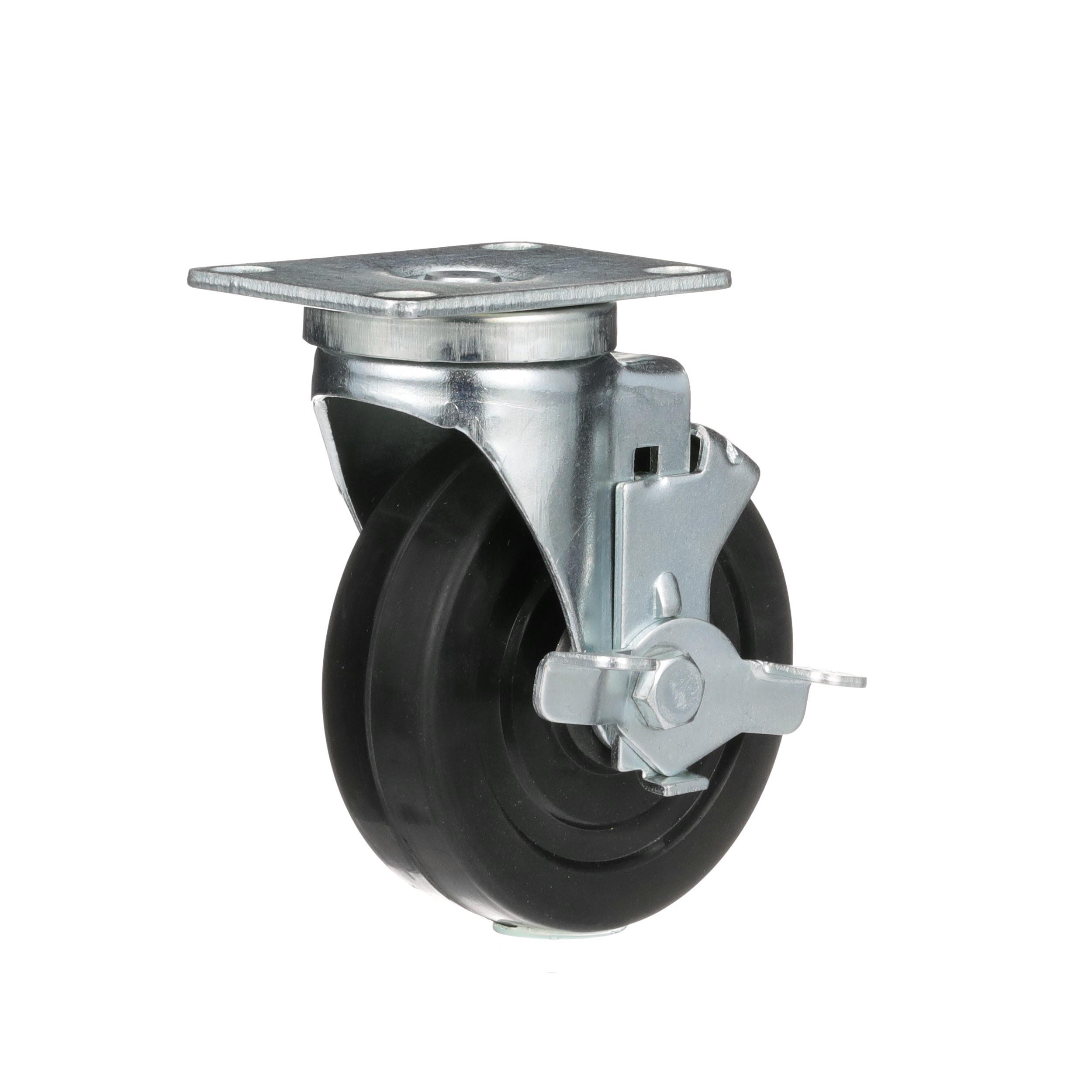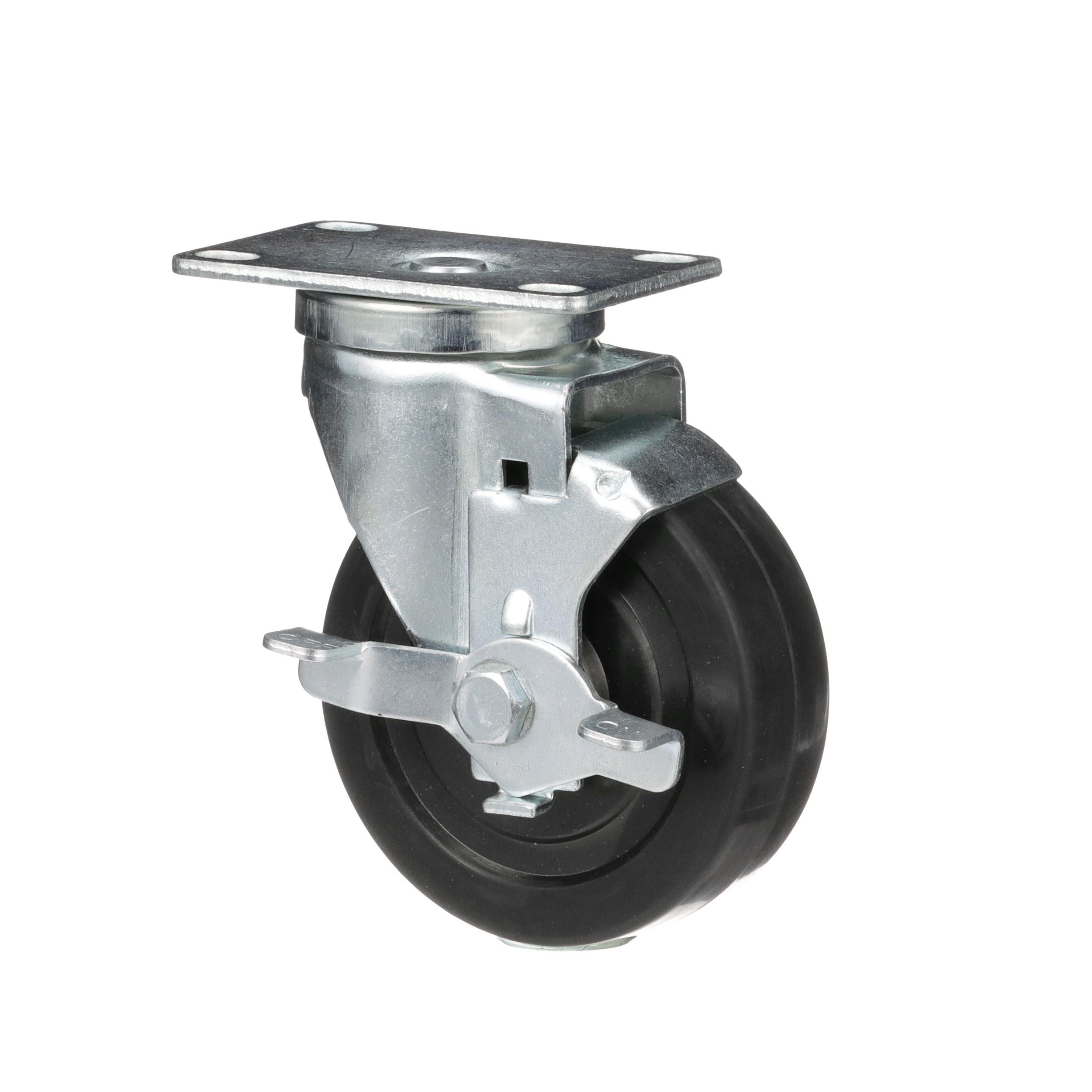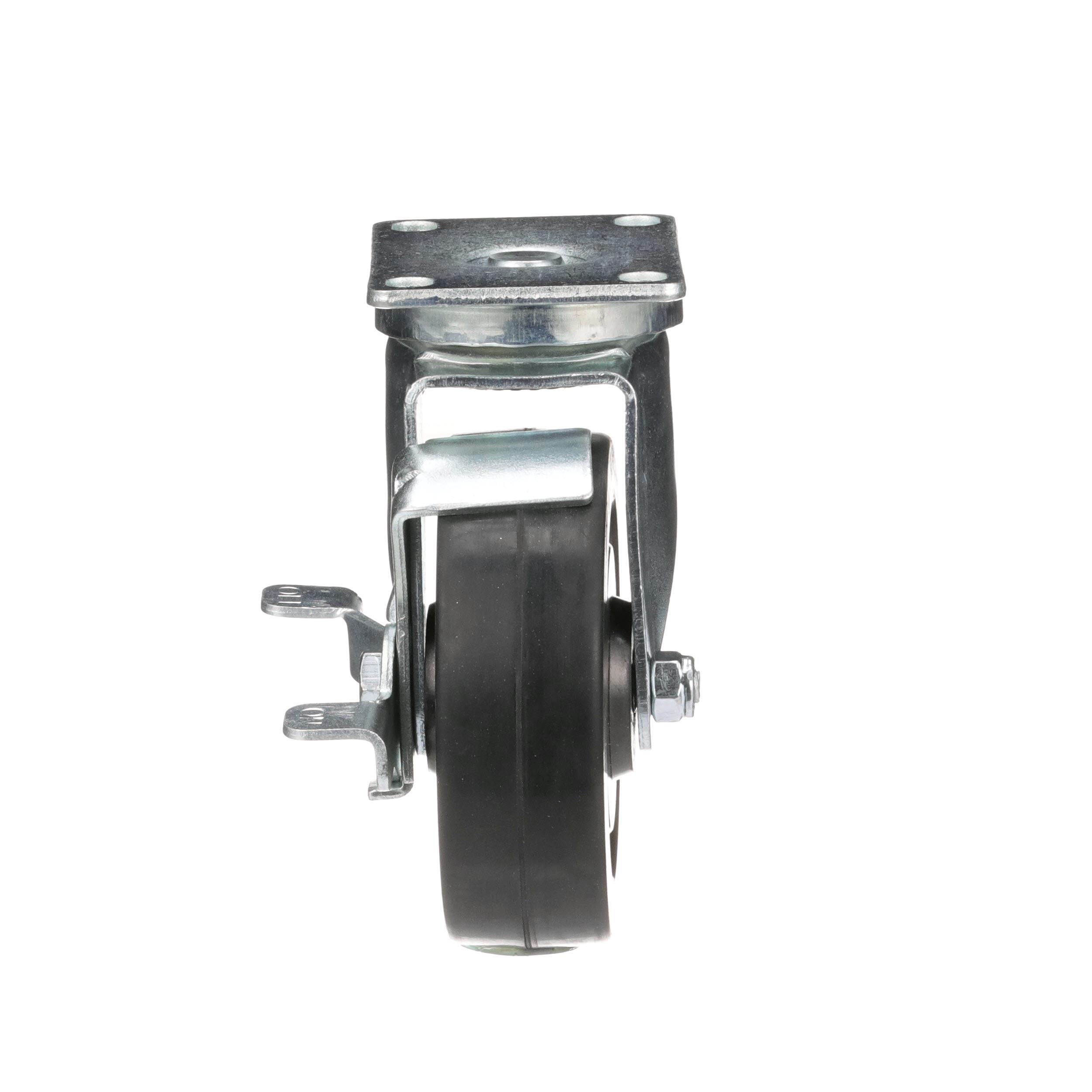 Medium Duty 2-3/8" x 3-5/8" Plate Caster With 5" Black Rubber Wheel With Brake