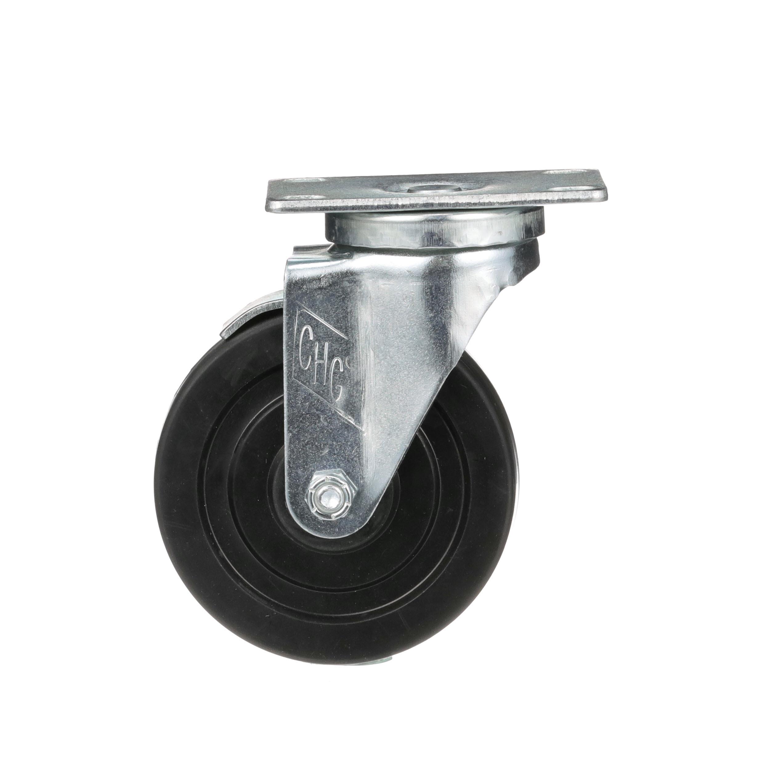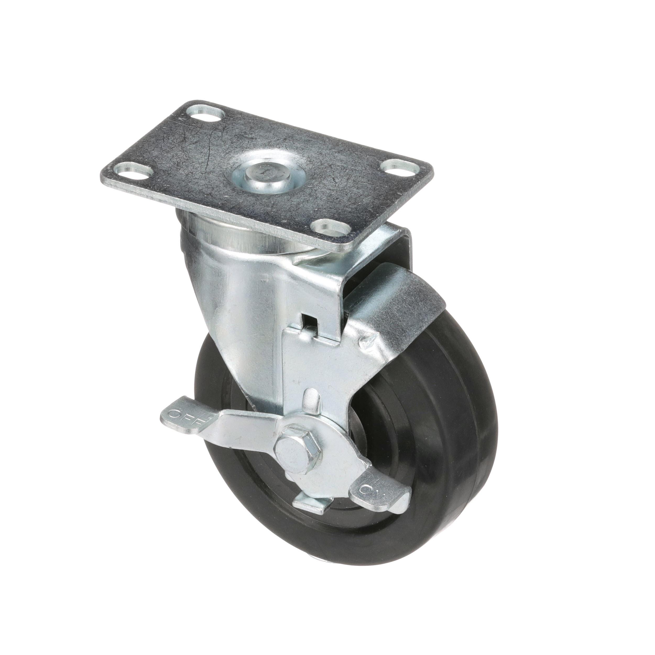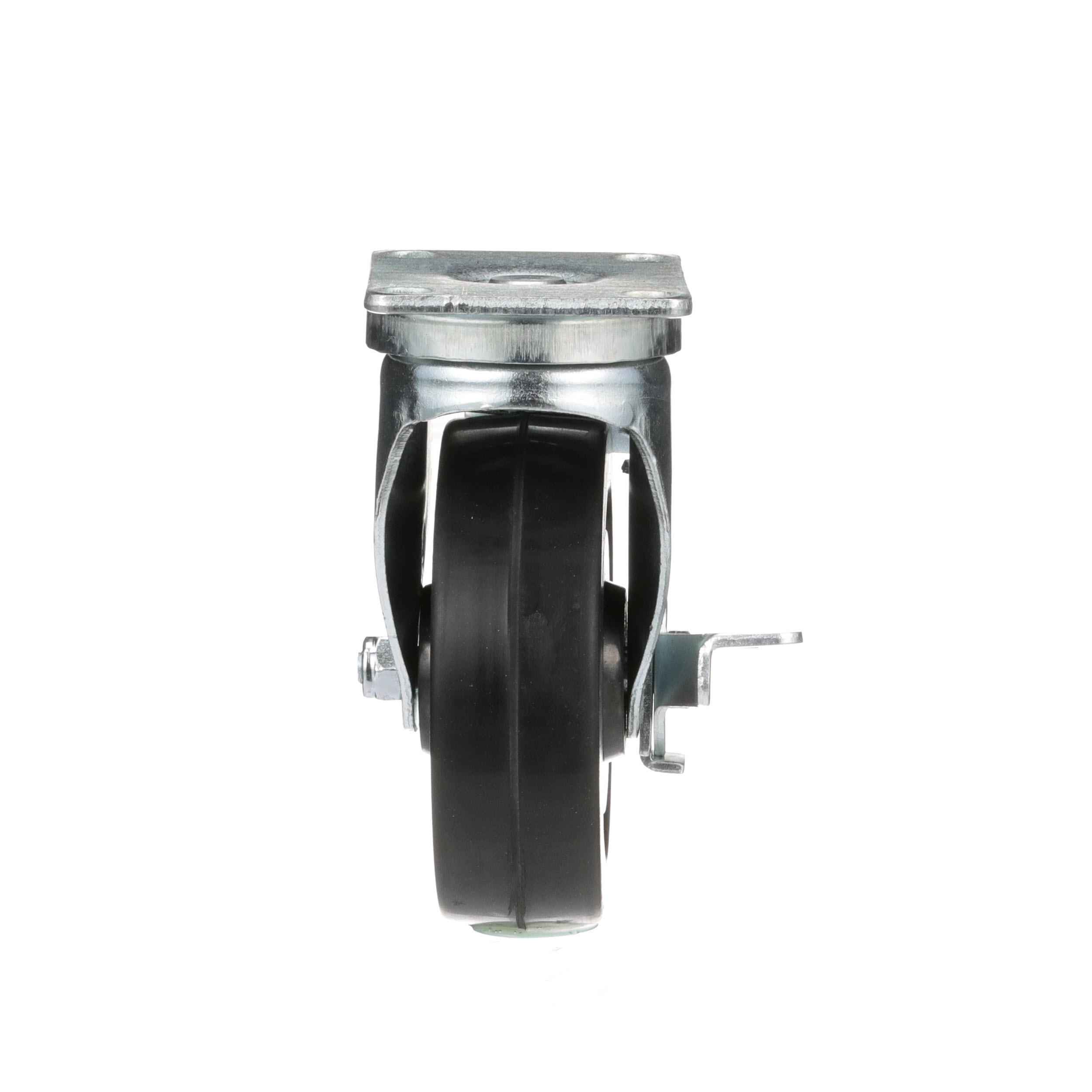 Medium Duty 2-3/8" x 3-5/8" Plate Caster With 5" Black Rubber Wheel With Brake