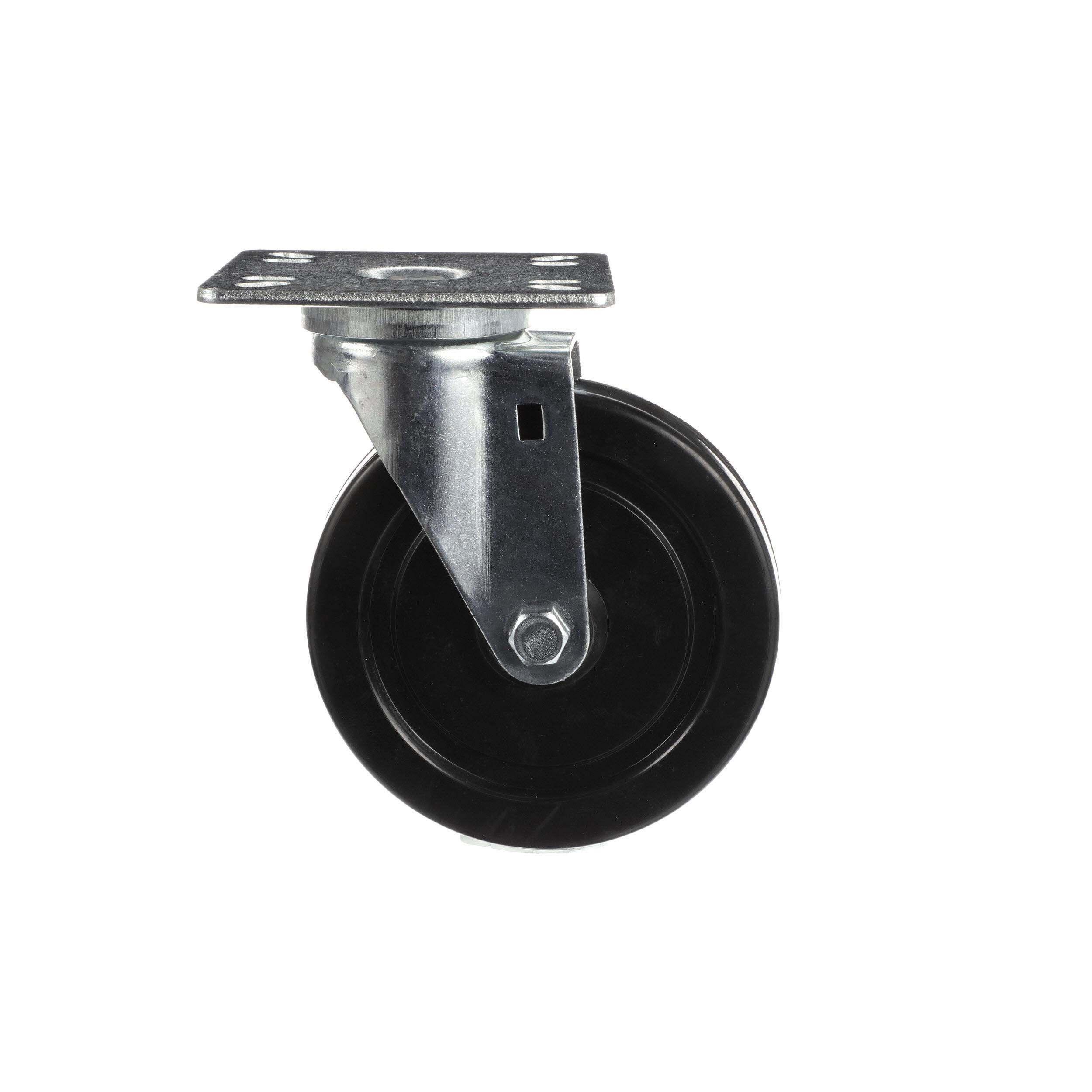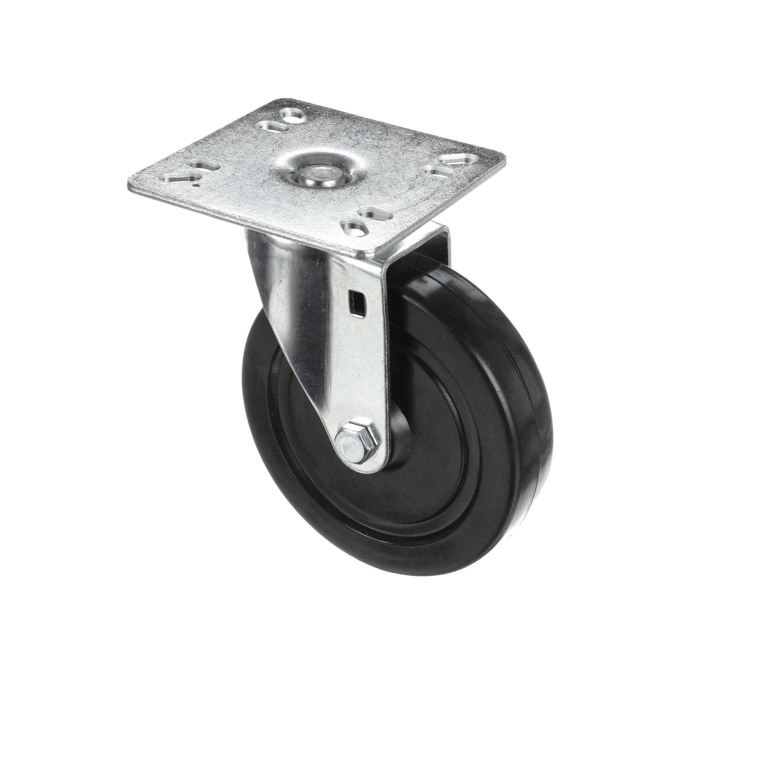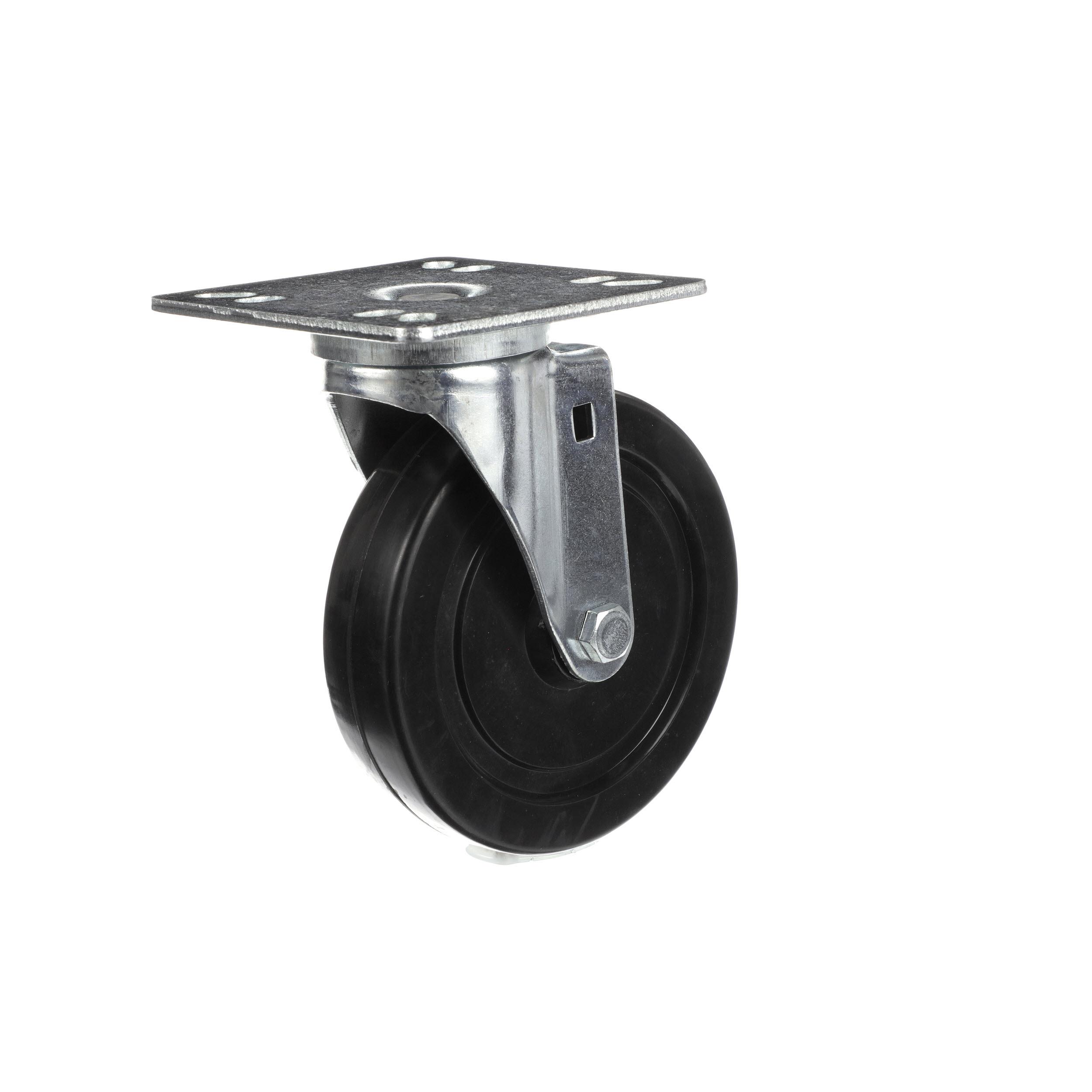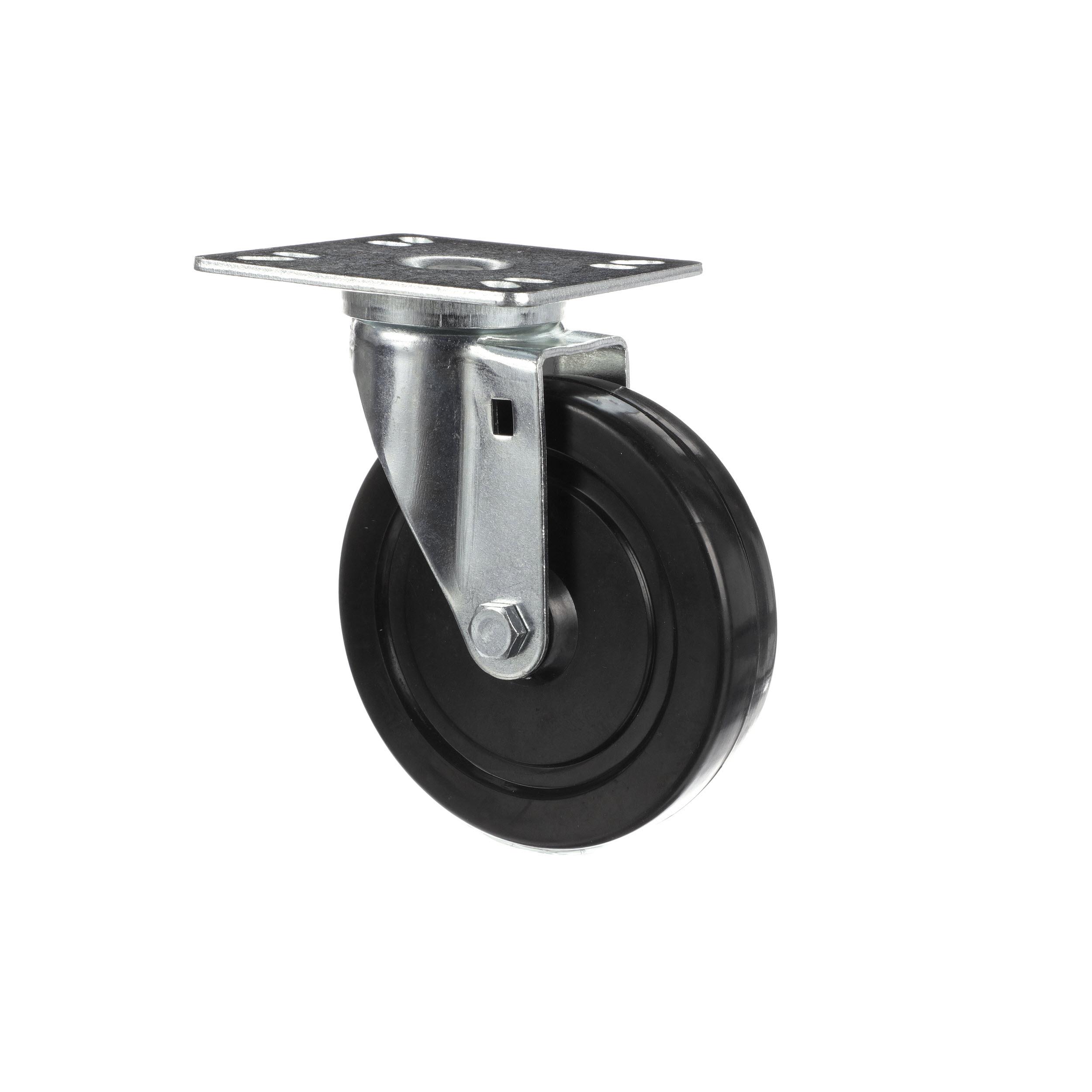 - Medium Duty 4" x 4" Universal Plate Caster With 5" Black Rubber Wheel
