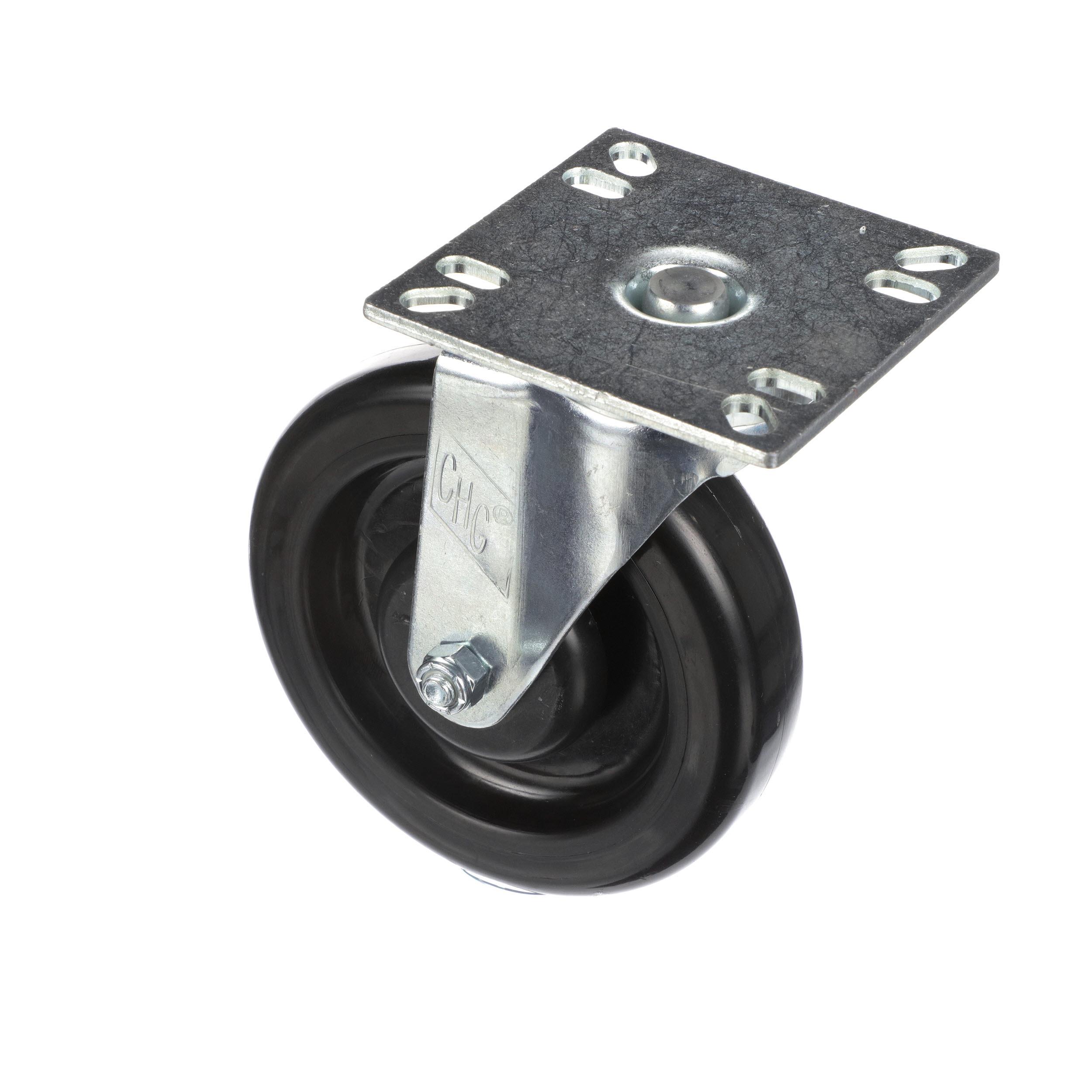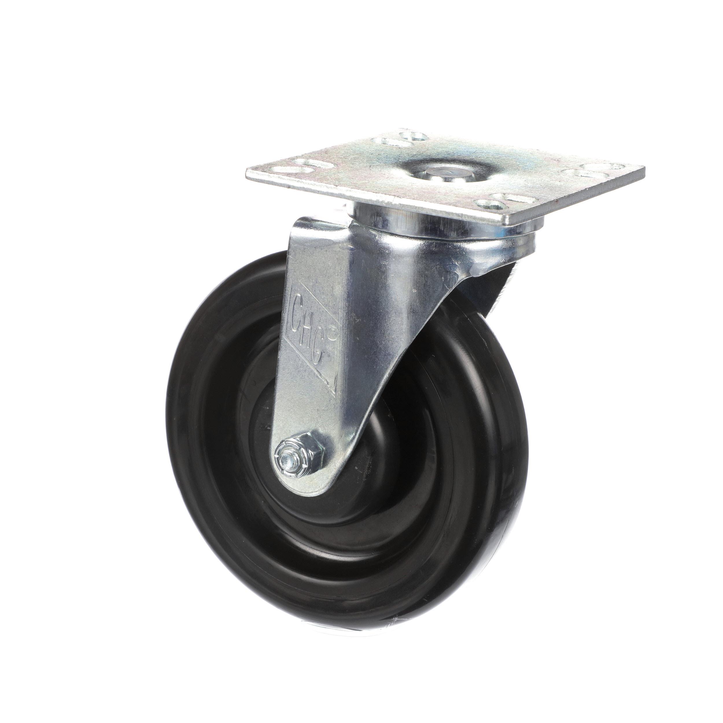 - Medium Duty 3-1/2" x 3-1/2" Universal Plate Caster With 5" Black Polyolefin Wheel