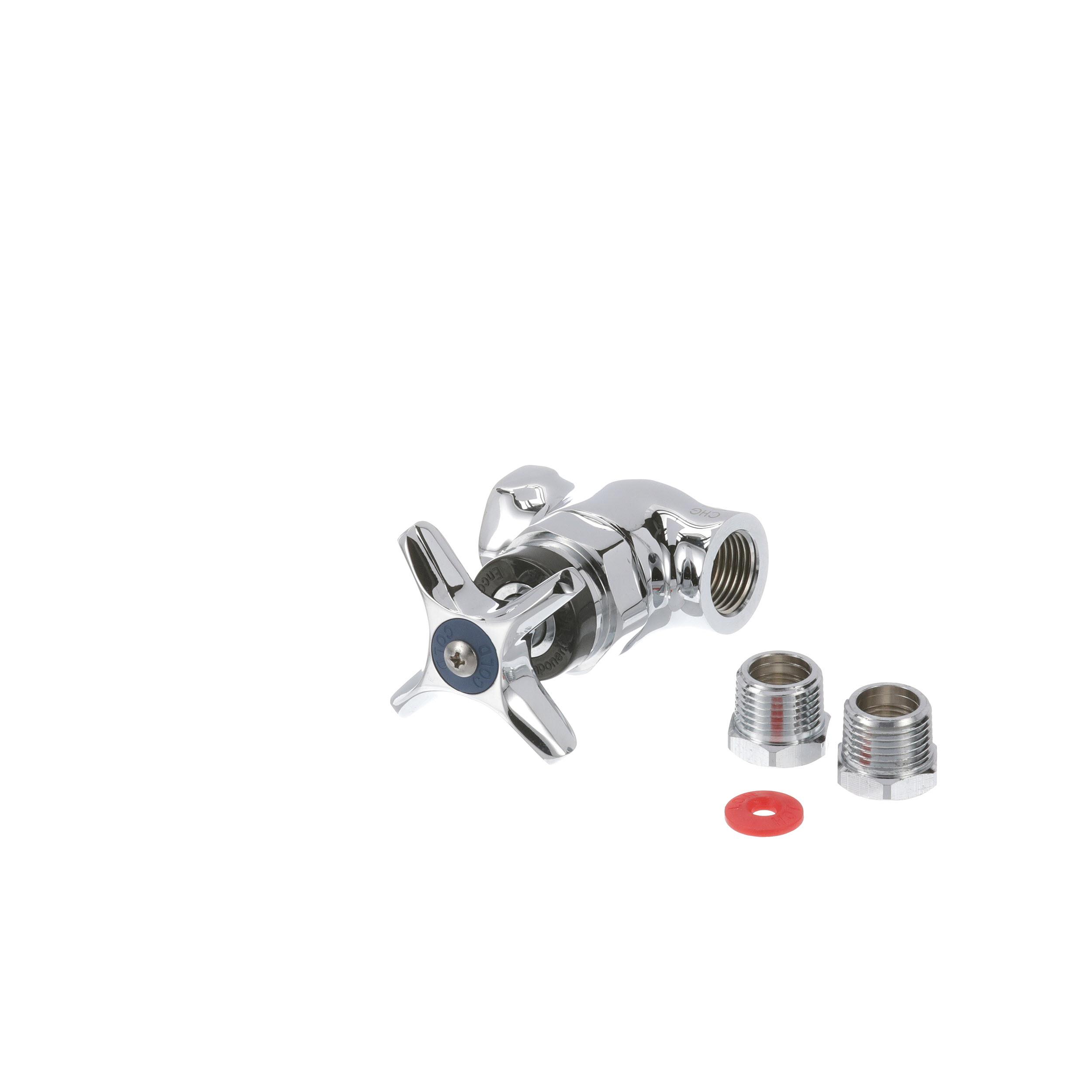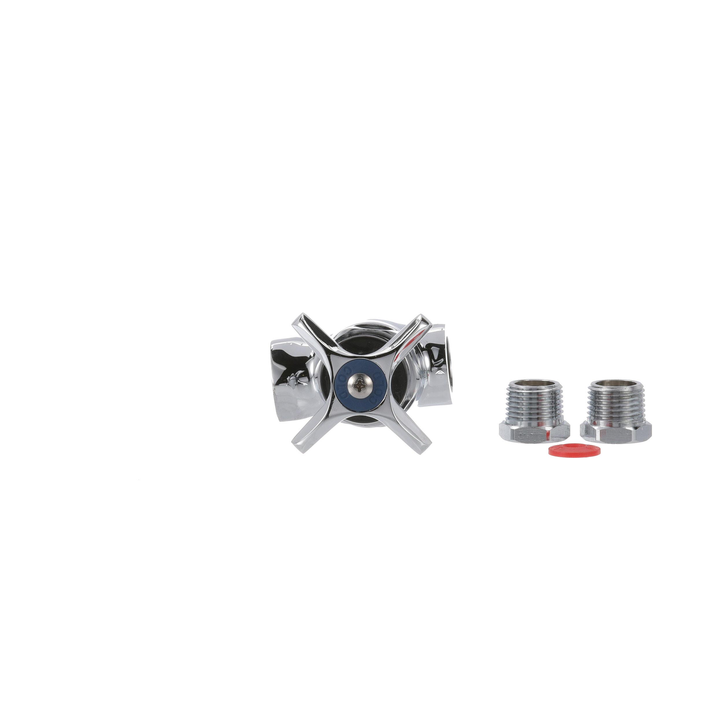 Shut Off Control Valve, Polished Chrome, Cross Handle, 3/8" IPS Inlet/Outlet and 1/2" Universal
