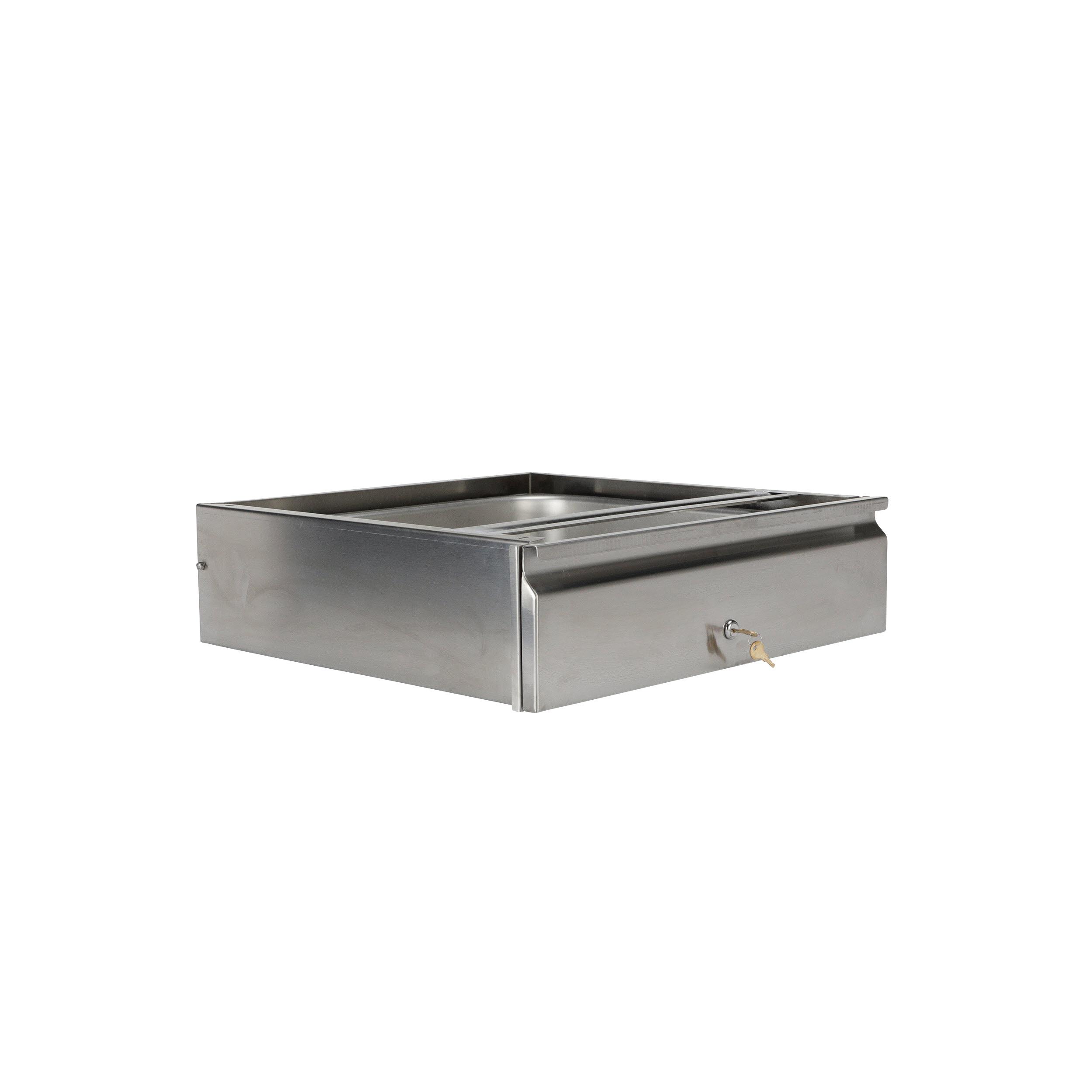 - 20" W x 20" L x 5" D Stainless Steel Economy Drawer Assembly with Cylinder Lock and Stainless Steel Pan