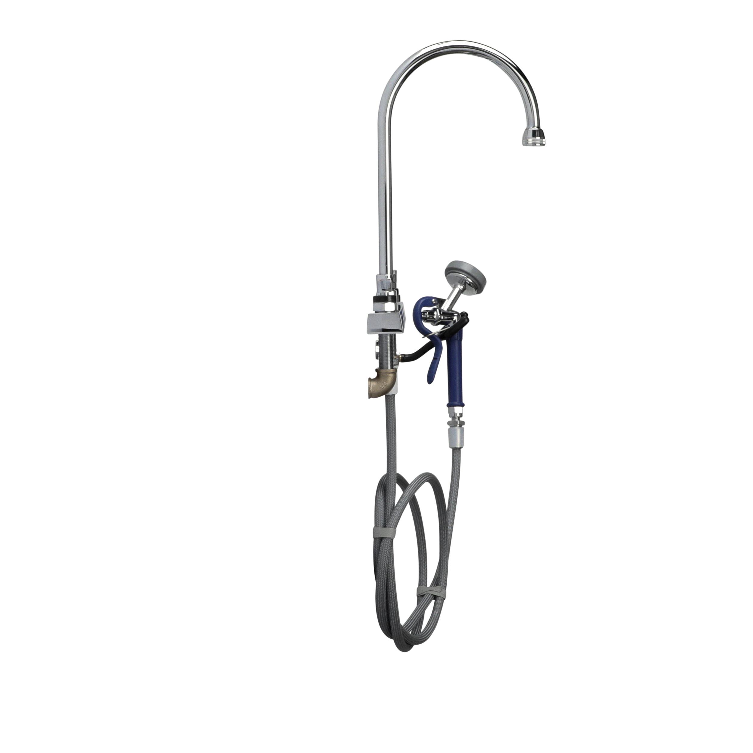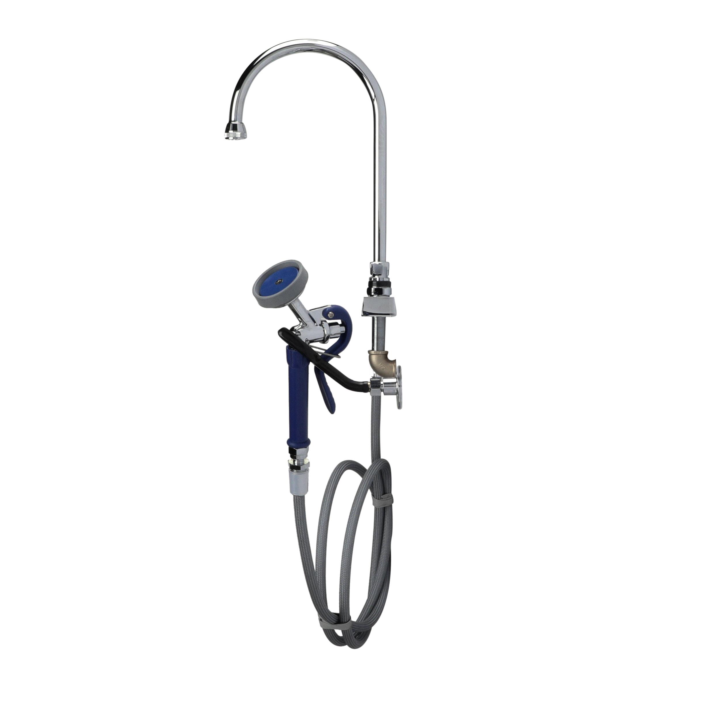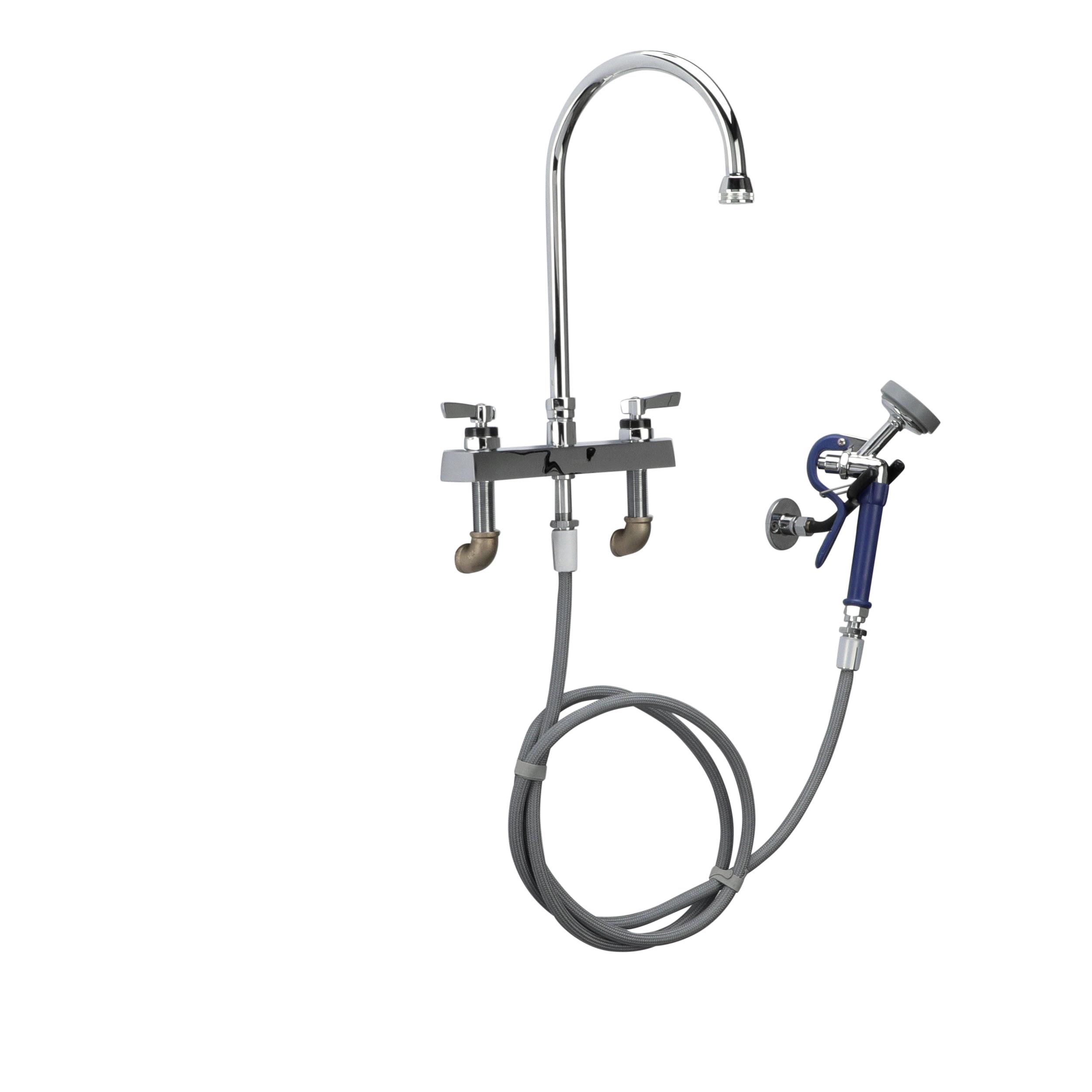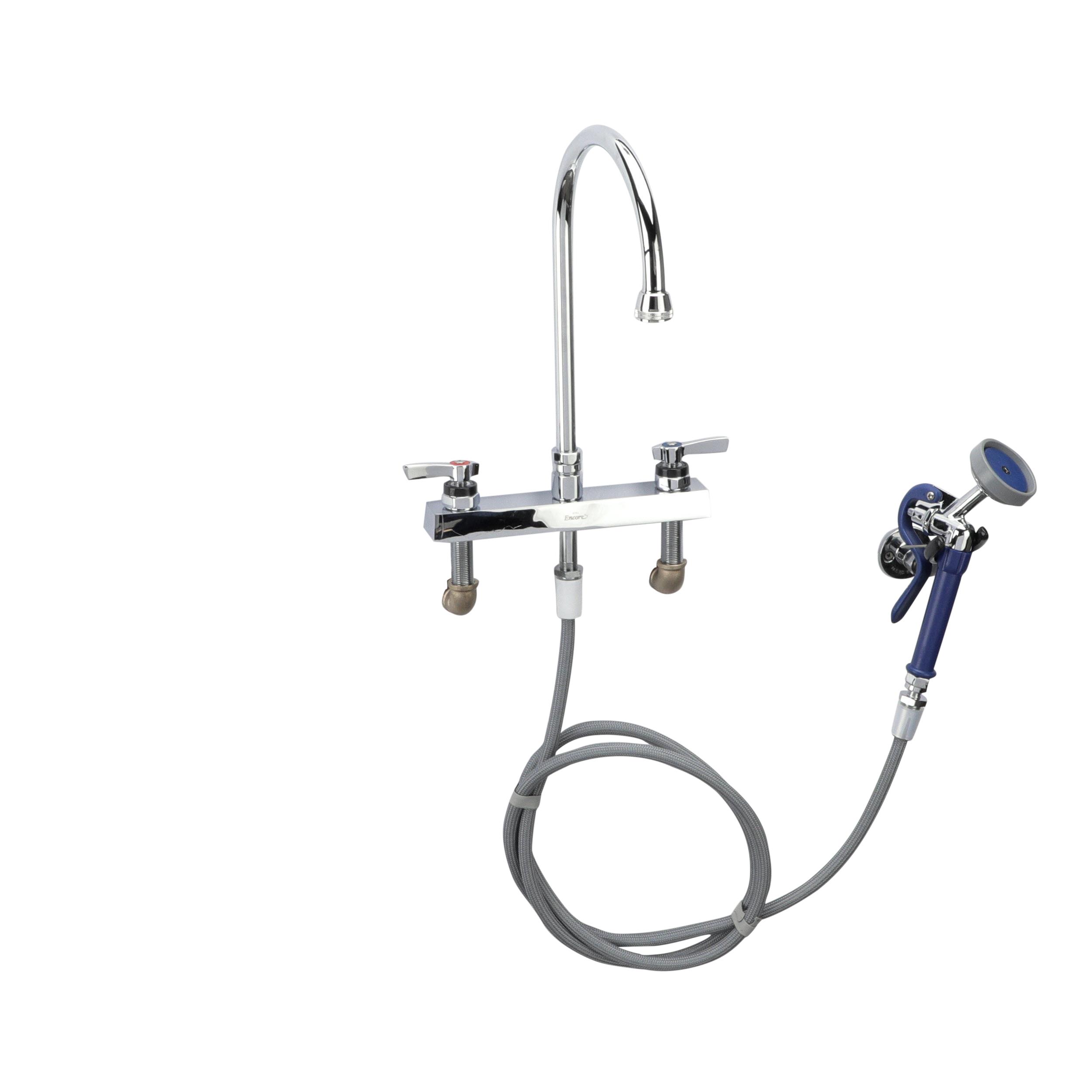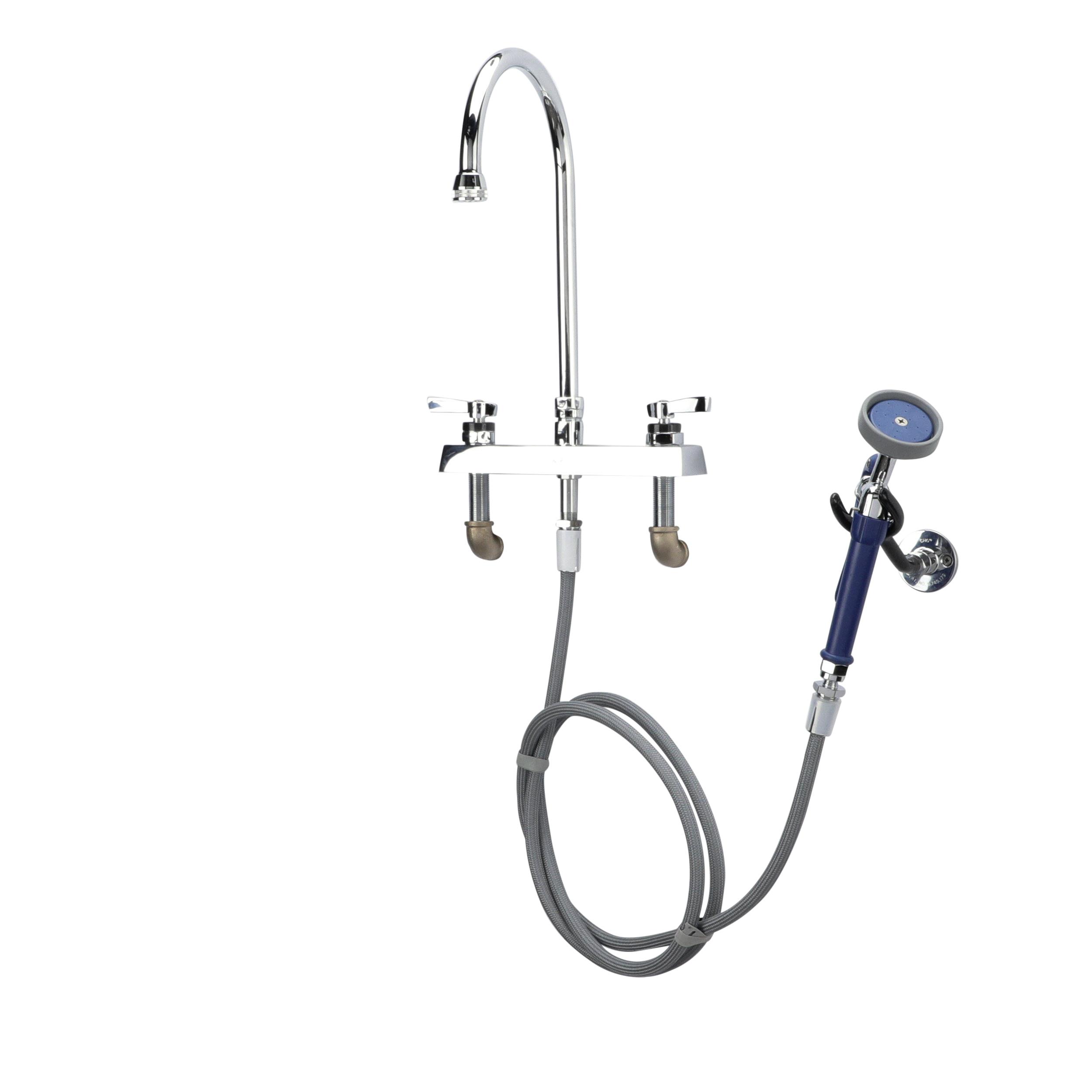Encore® 8" OC Deck Mount Veterinary Faucet 96" Braided Hose with Lightweight Aluminum Side Sprayer and 4" Wrist Blade Handles