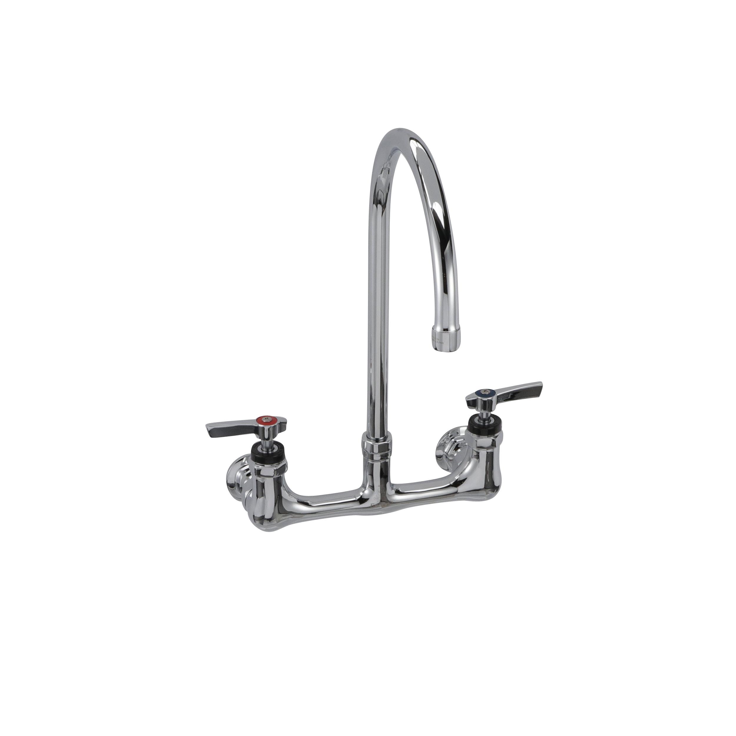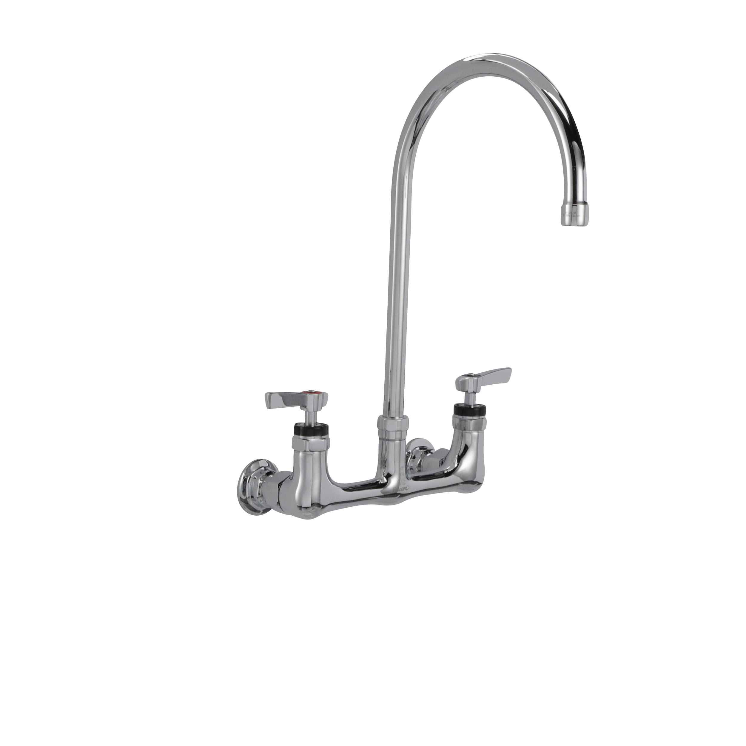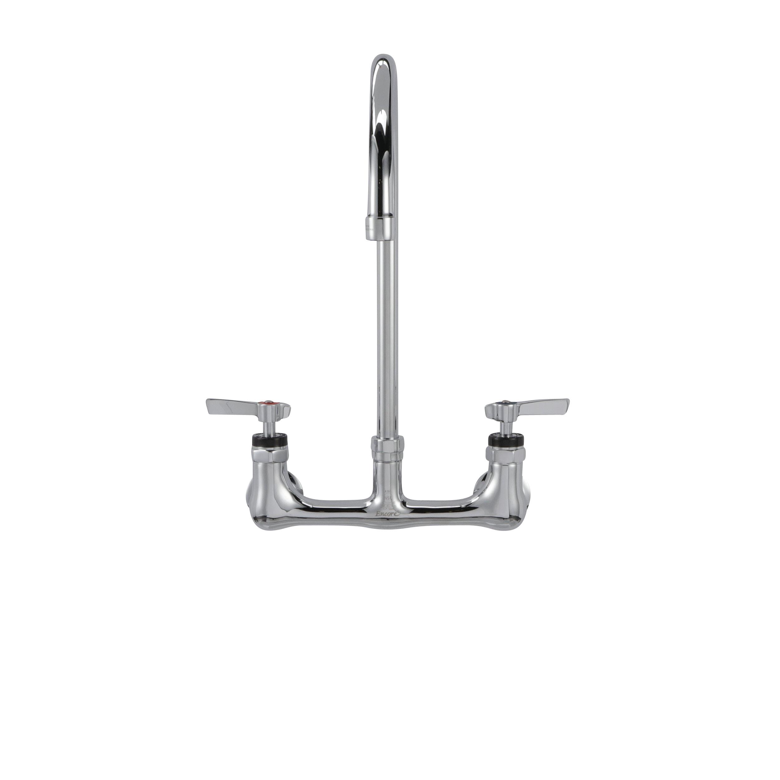 Encore® 8" OC. Brass Chrome Plated Wall Mount Faucet Ceramic Valves with 8" Swivel Gooseneck Spout