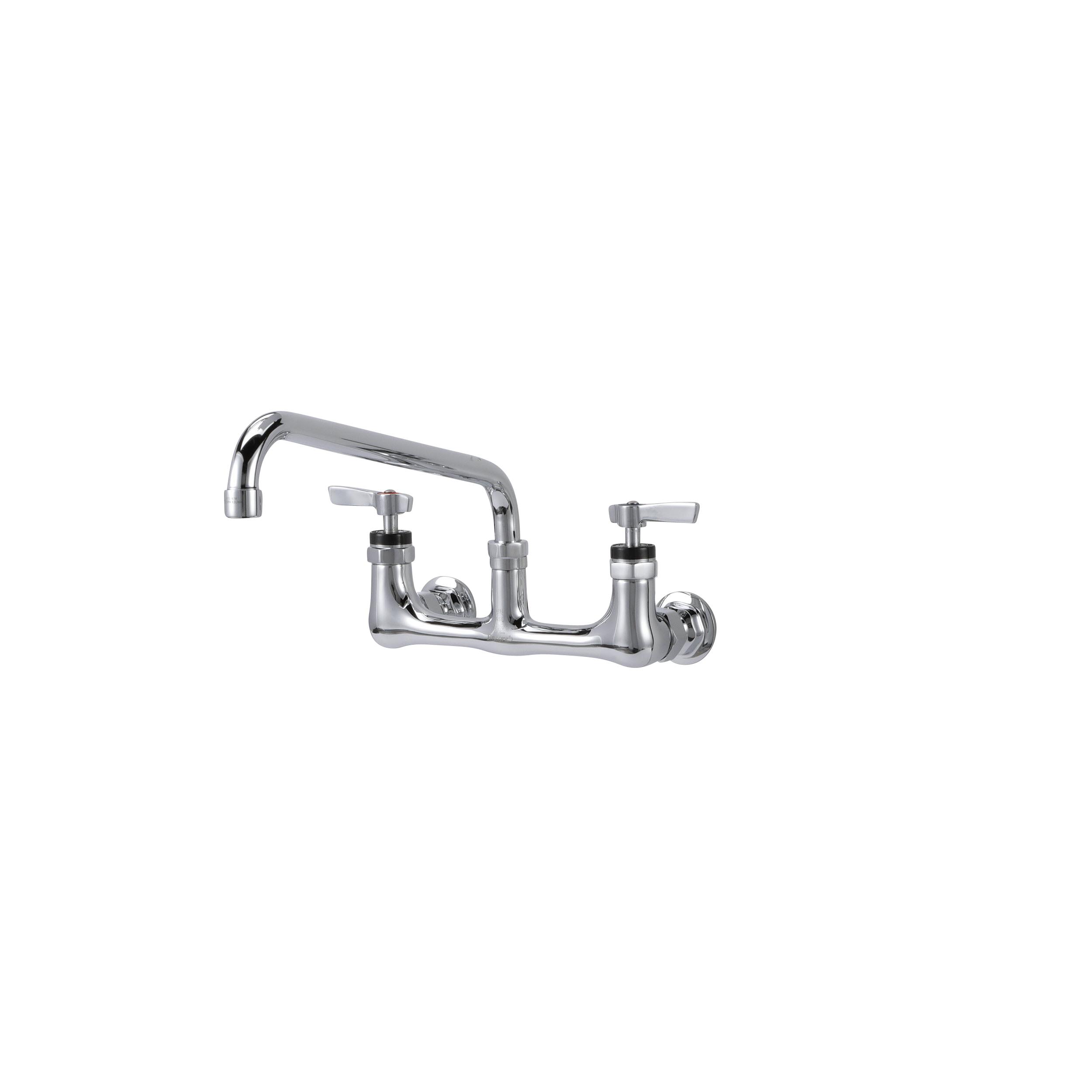 Encore® 8" OC. Brass Chrome Plated Wall Mount Faucet Ceramic Valves with 12" Swivel Spout, Retail Packaging