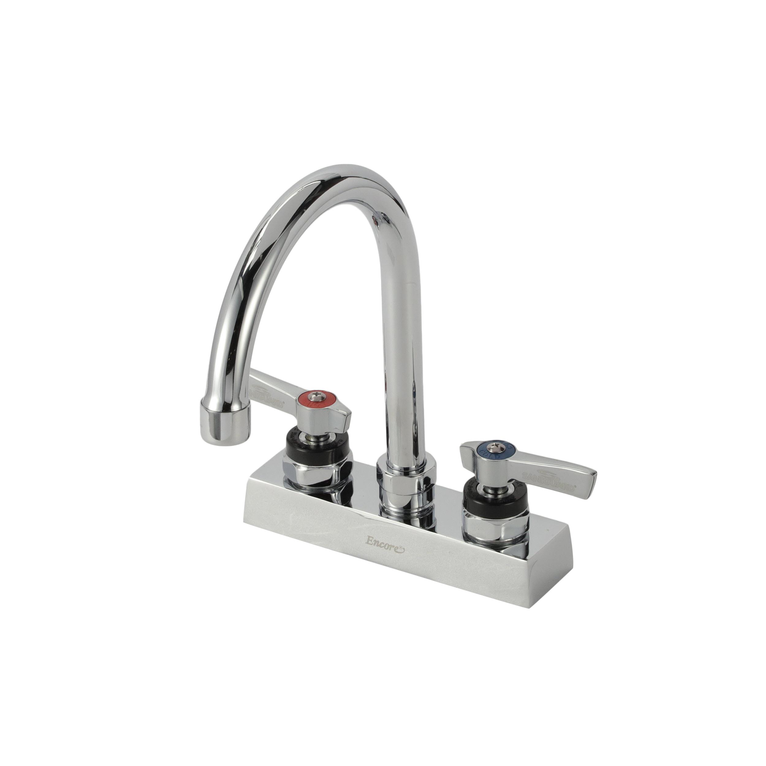 Encore 4" OC Deck Mount Faucet Ceramic Valves with 6" Rigid Gooseneck Spout