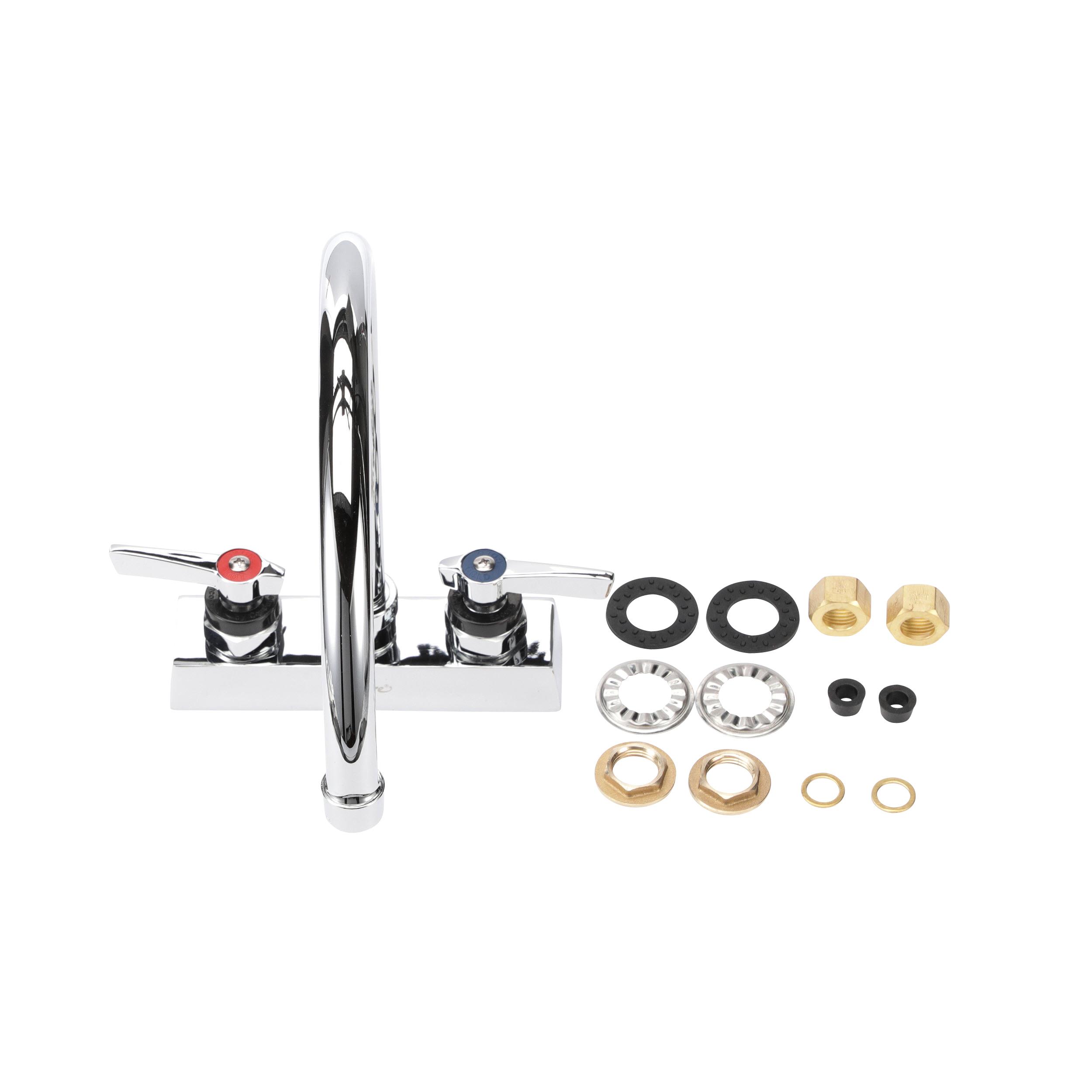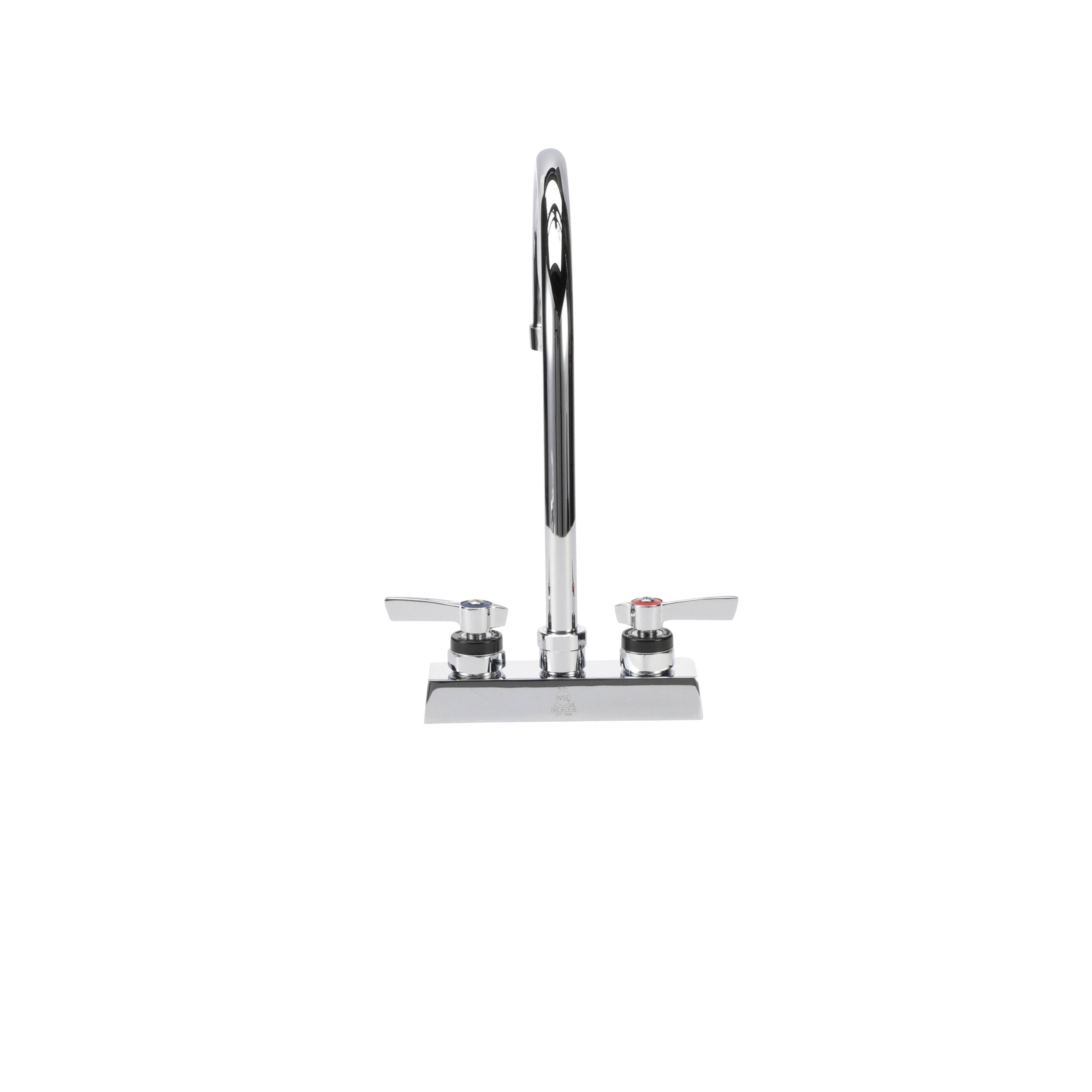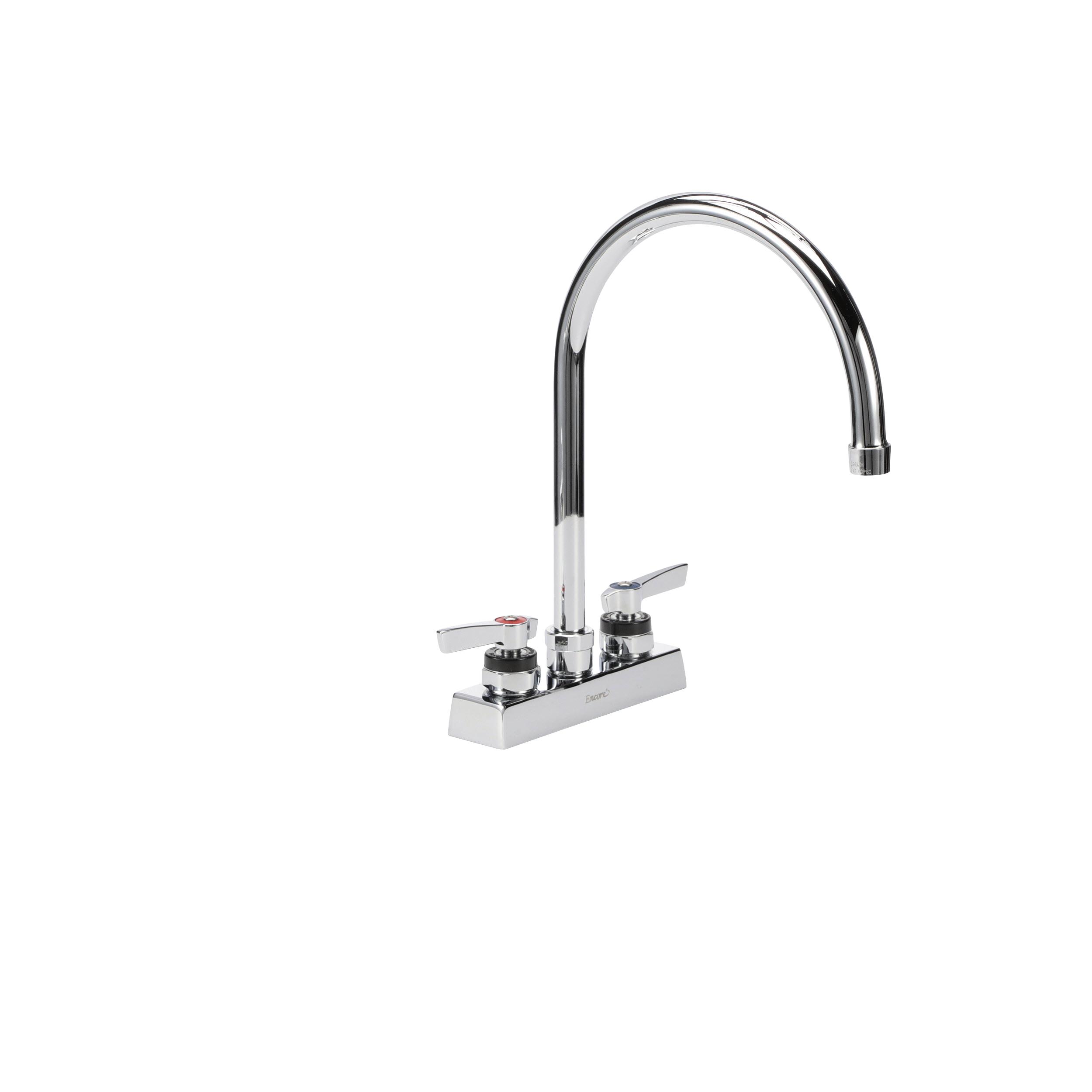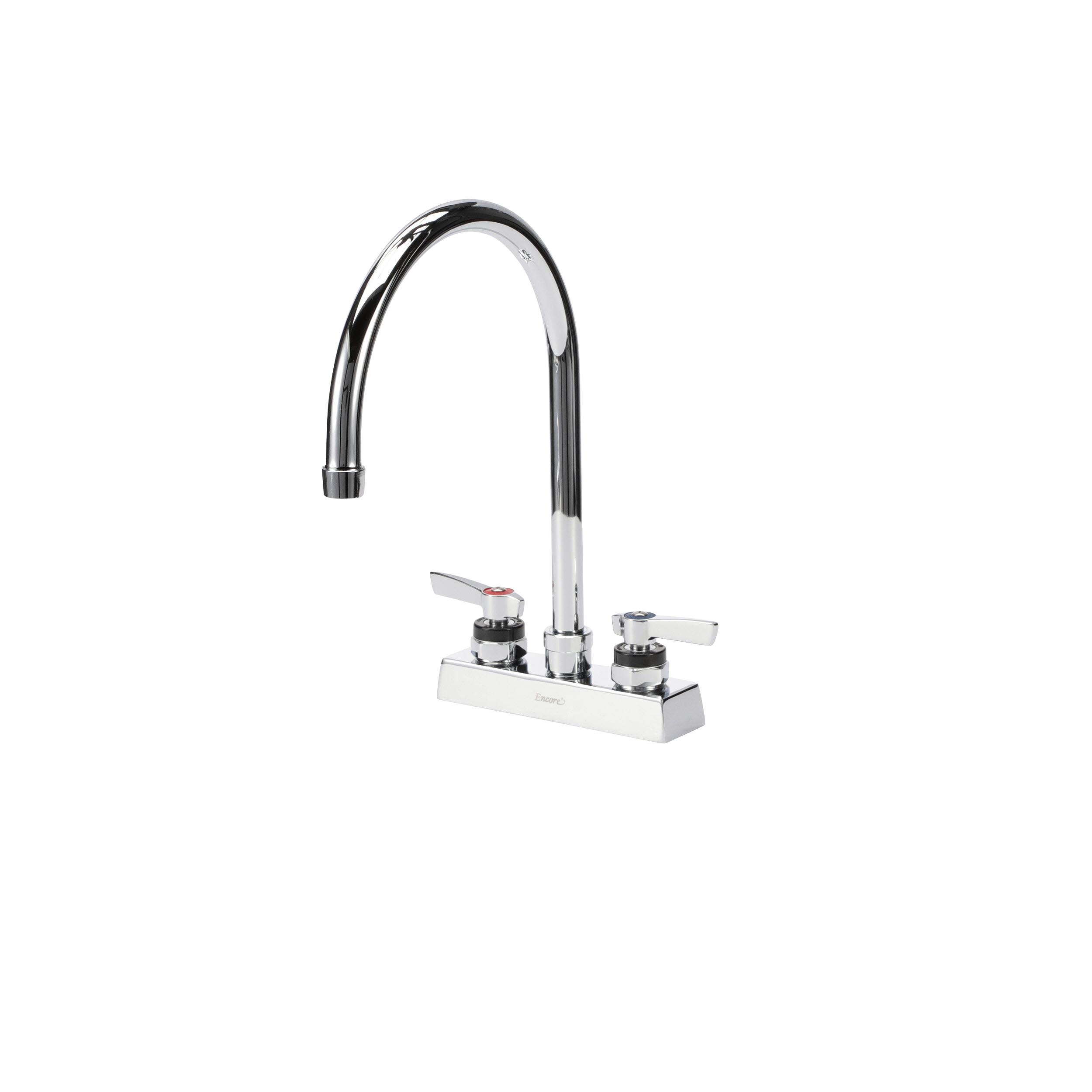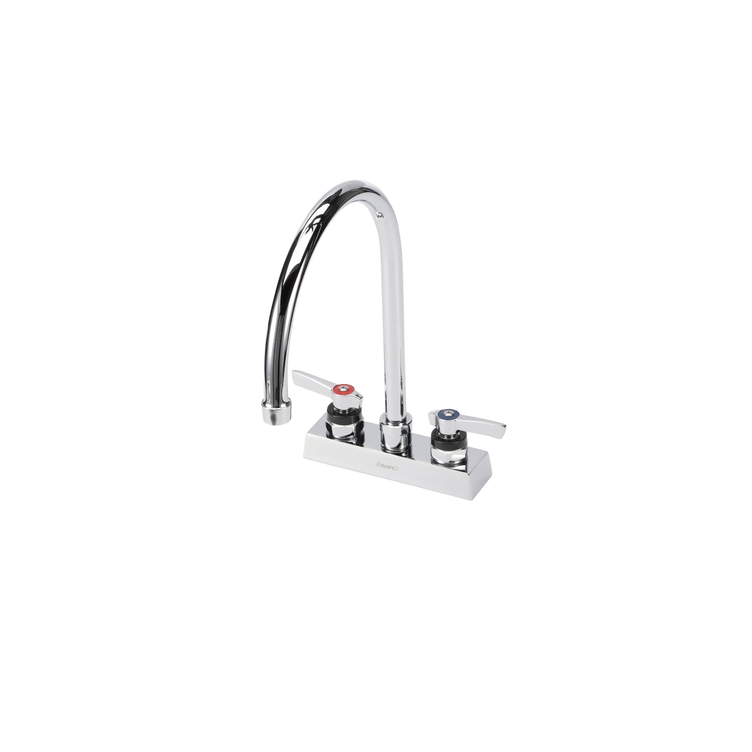 Encore 4" OC Deck Mount Faucet with 8-1/2" Swivel Gooseneck Spout, Lever Handles, Retail Packaging