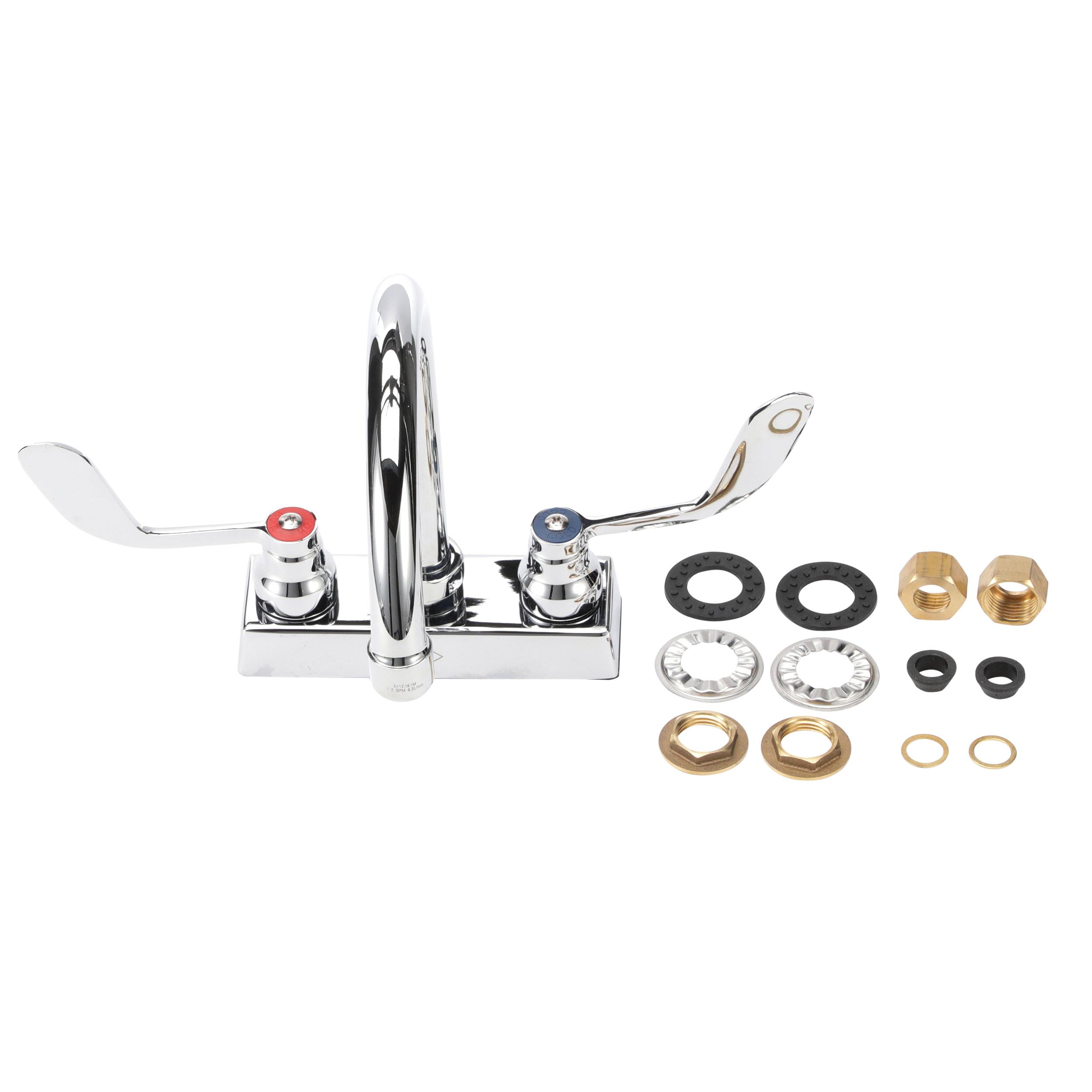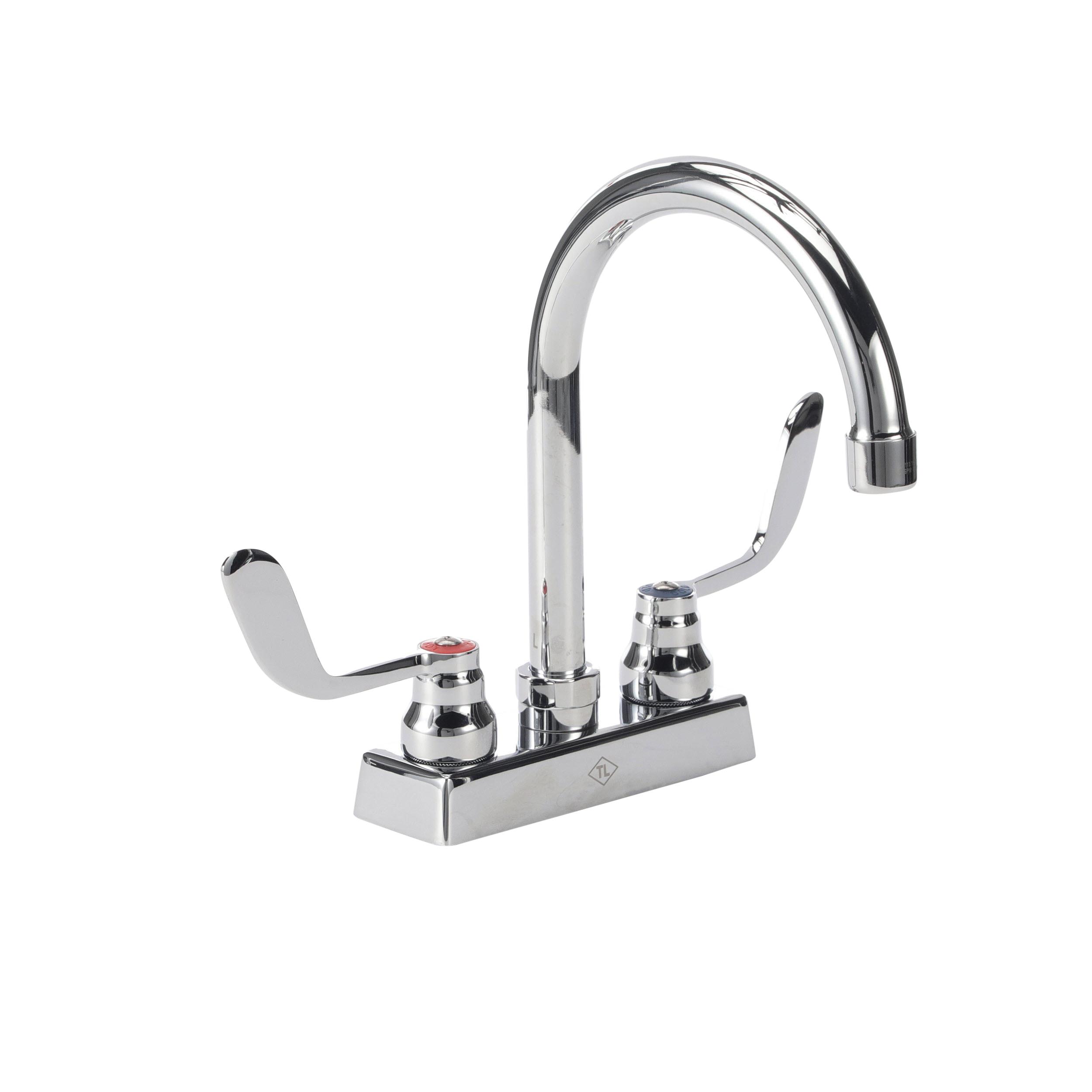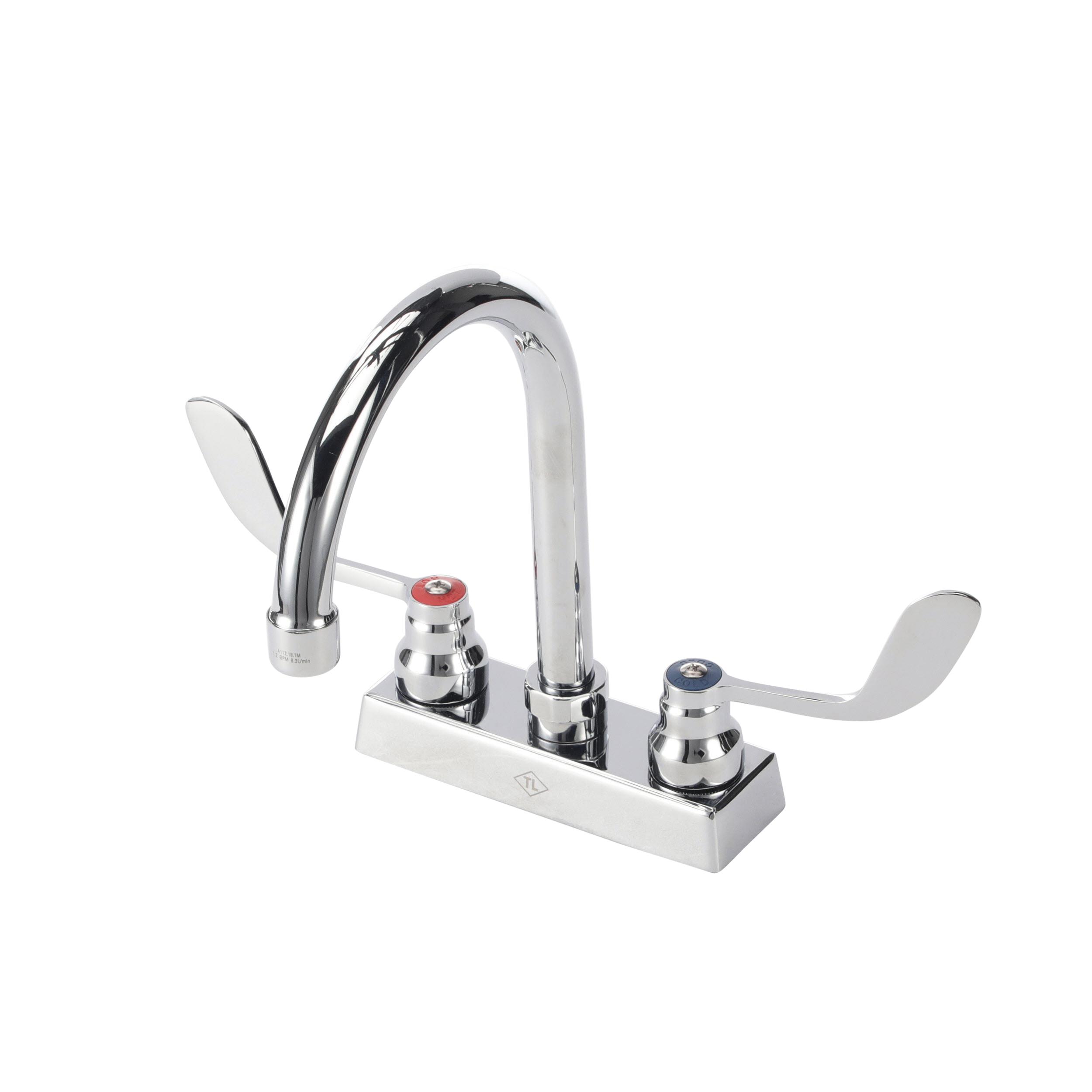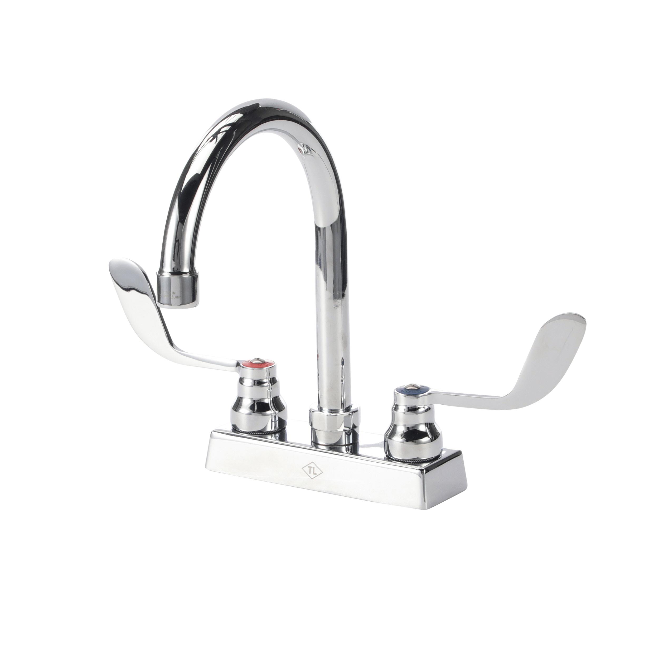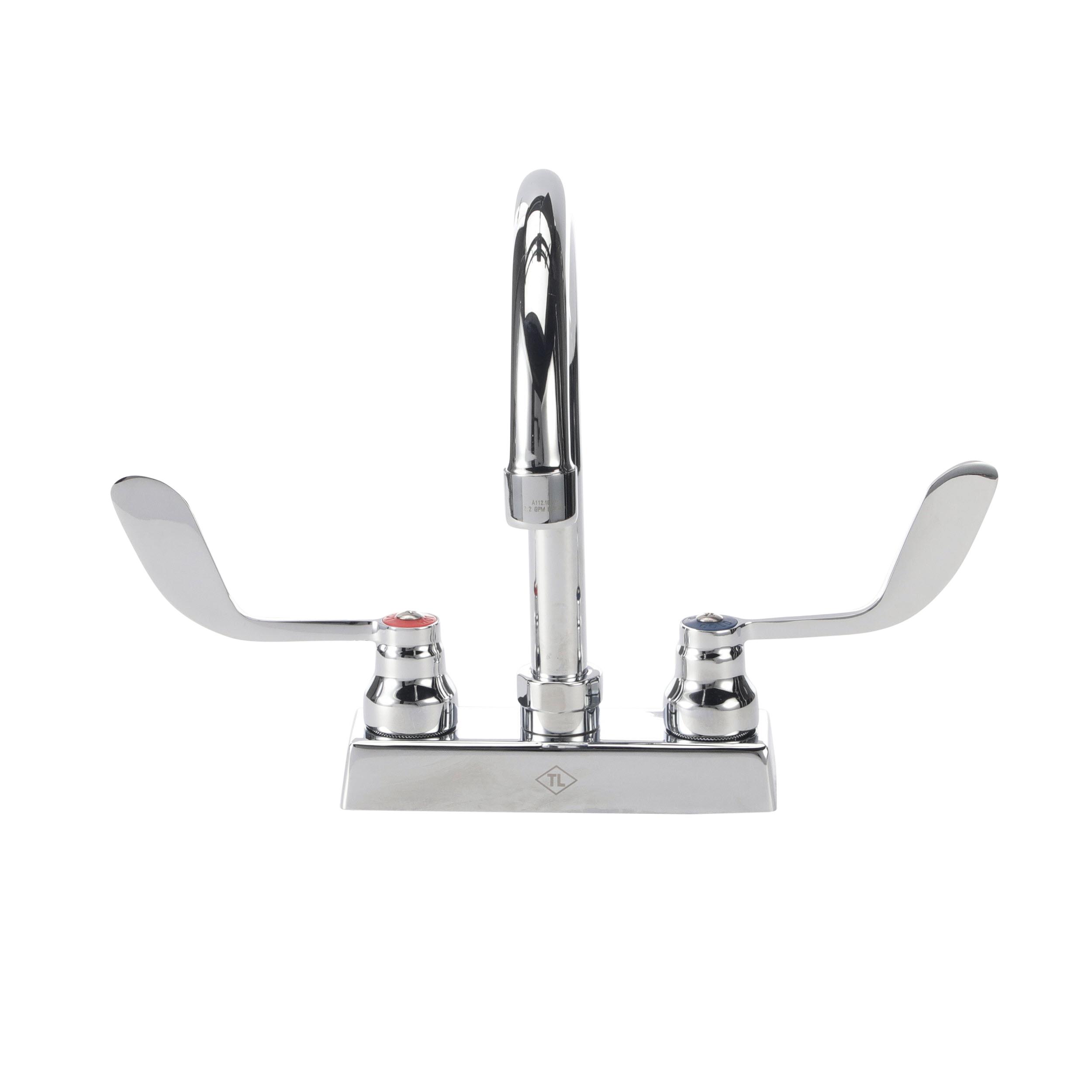 TOP-LINE® 4" OC Deck Mount Faucet Ceramic Valves 4" Wrist Blade Handles with 6" Swivel Gooseneck Spout