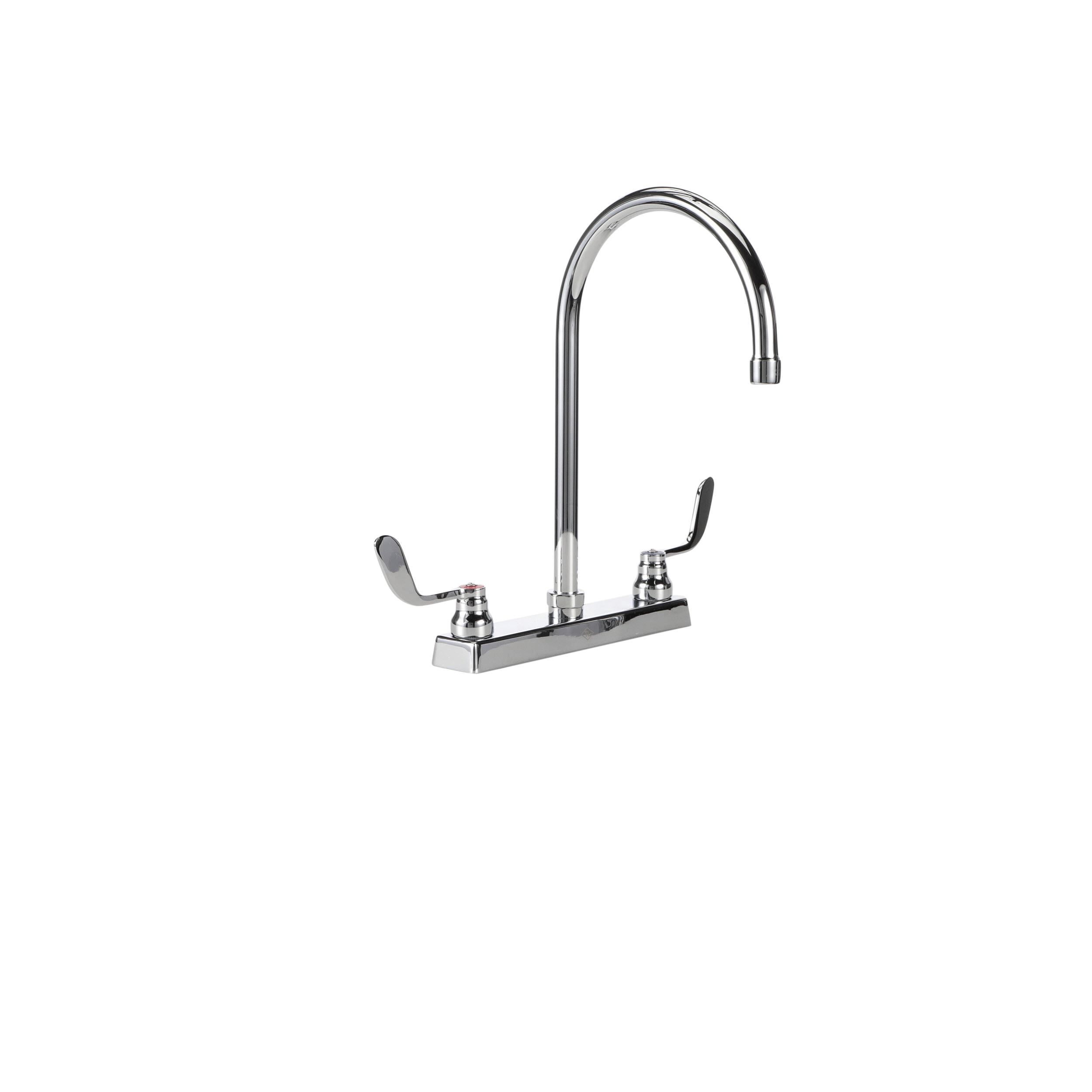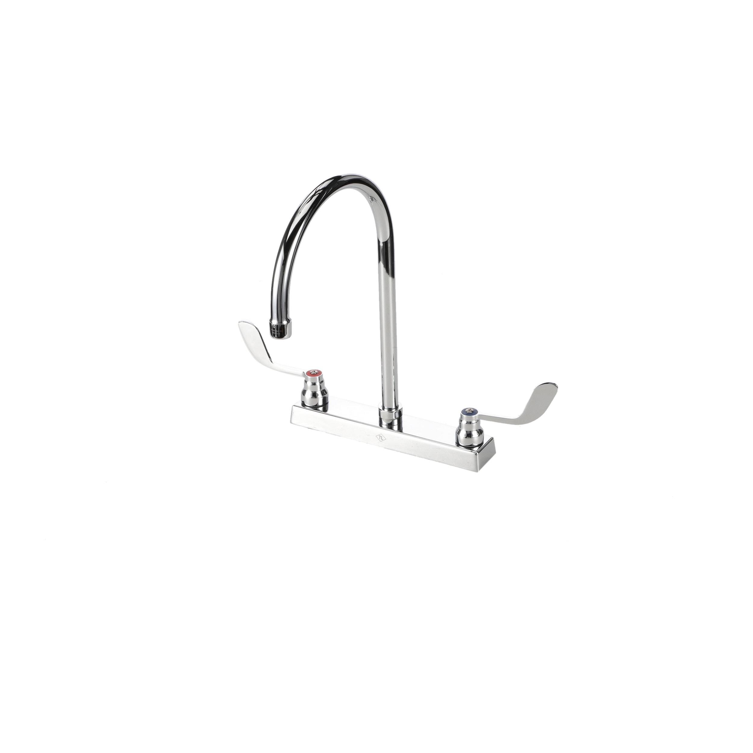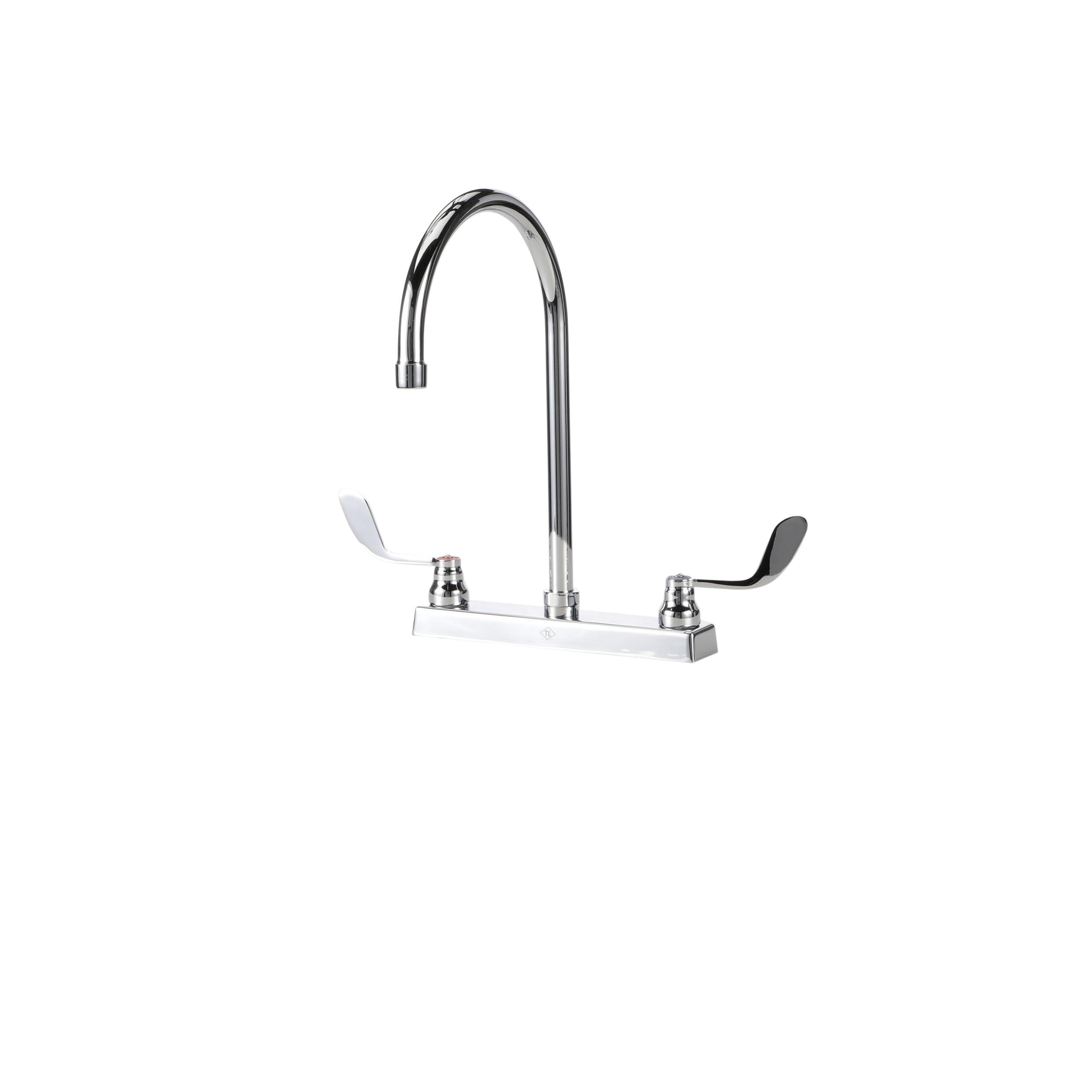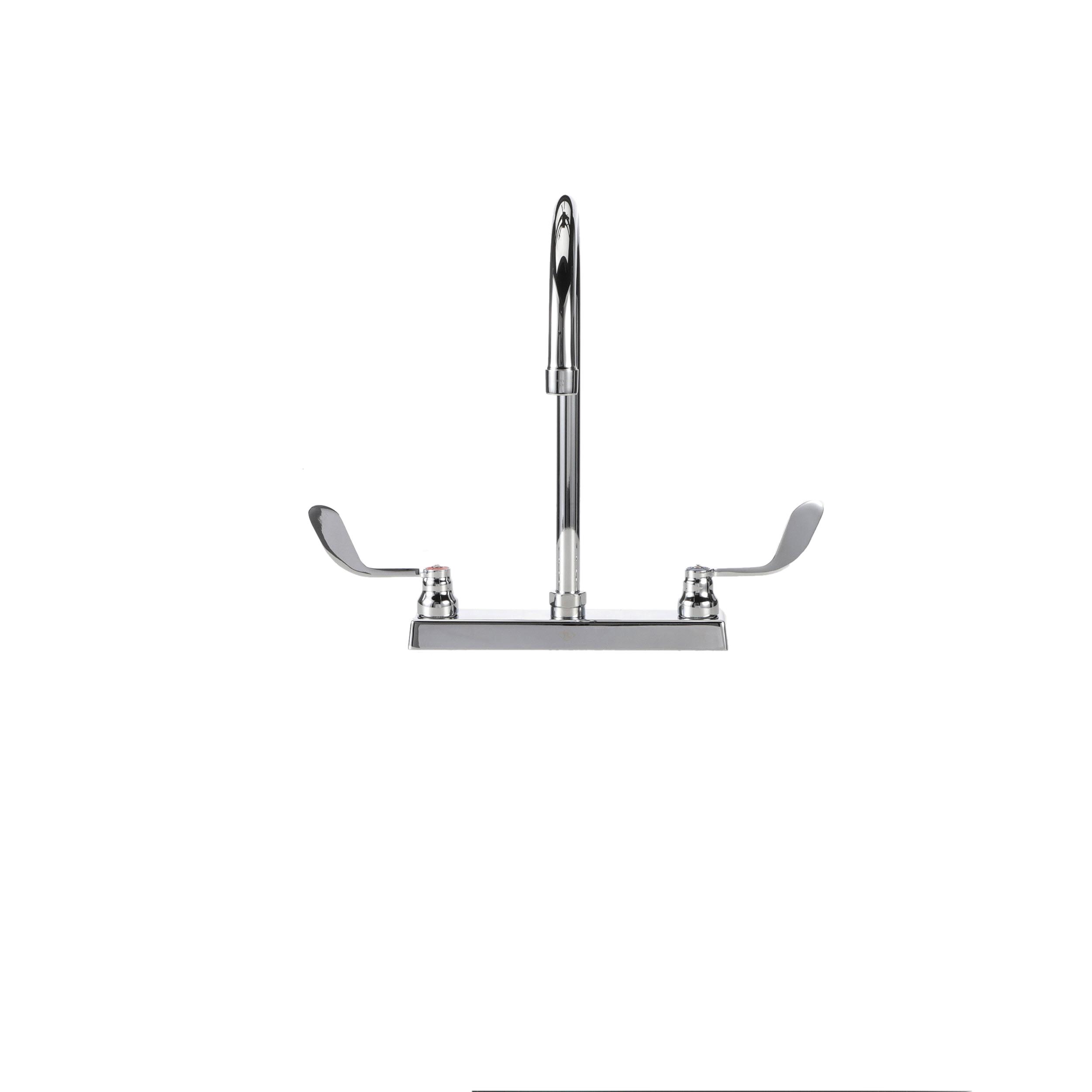 TOP-LINE® 8" OC Deck Mount Faucet Ceramic Valves 4" Wrist Blade Handles with 8-1/2" Swivel Gooseneck Spout