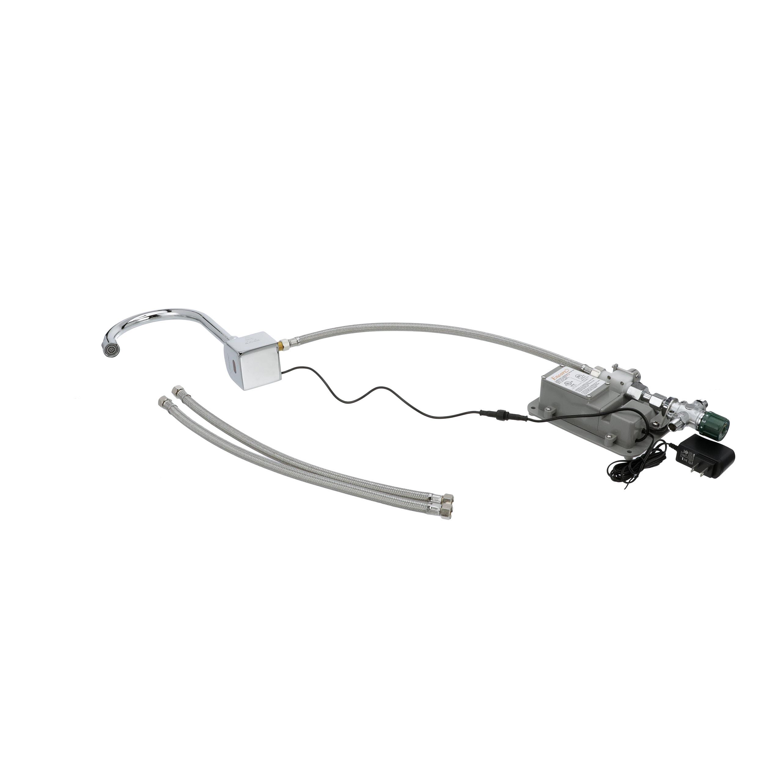 Intelli-Flo EZ Electronic Wall Mount Faucet 3-1/2" Rigid Gooseneck Spout AC Powered with Thermostatic Mixing Valve and 1.5 gpm Laminar Flow Vandal Resistant