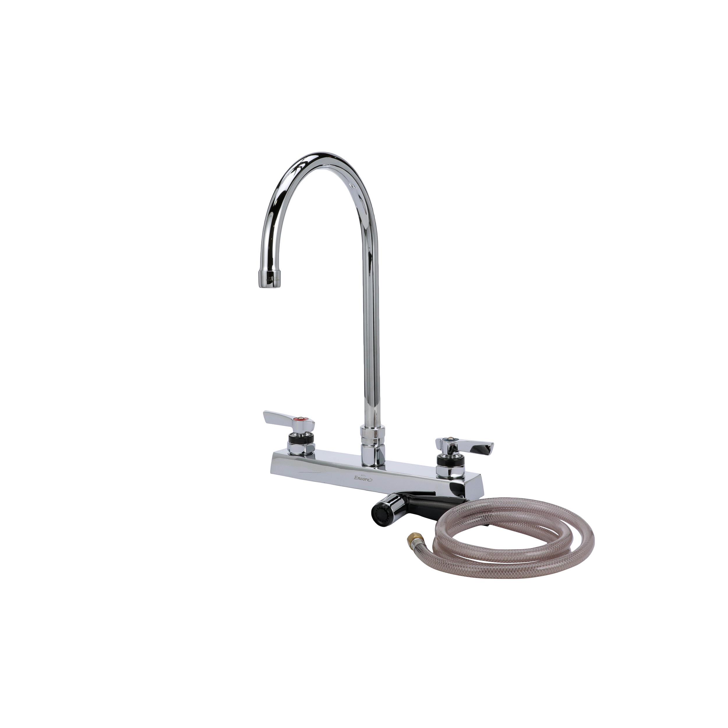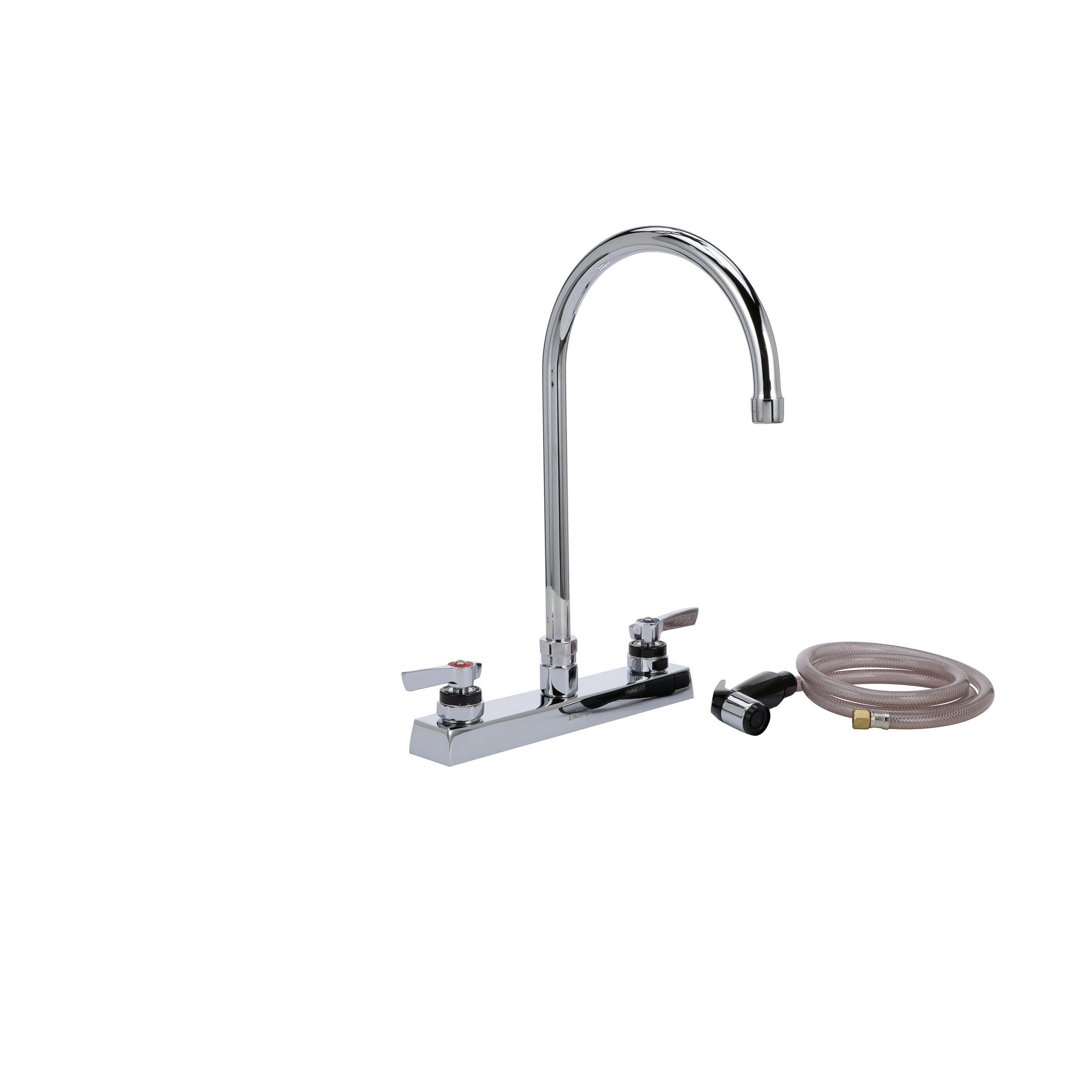 Encore 8" OC Deck Mount Faucet with 8" Swivel Gooseneck Spout 48" Nylon Hose and Spray