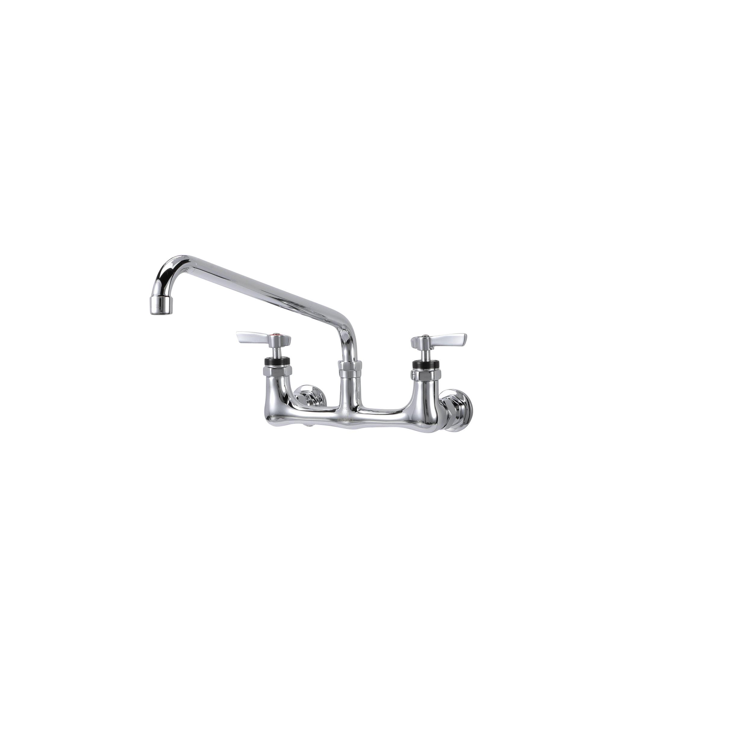 Encore® 8" OC. Brass Chrome Plated Wall Mount Faucet Ceramic Valves with 14" Swivel Spout
