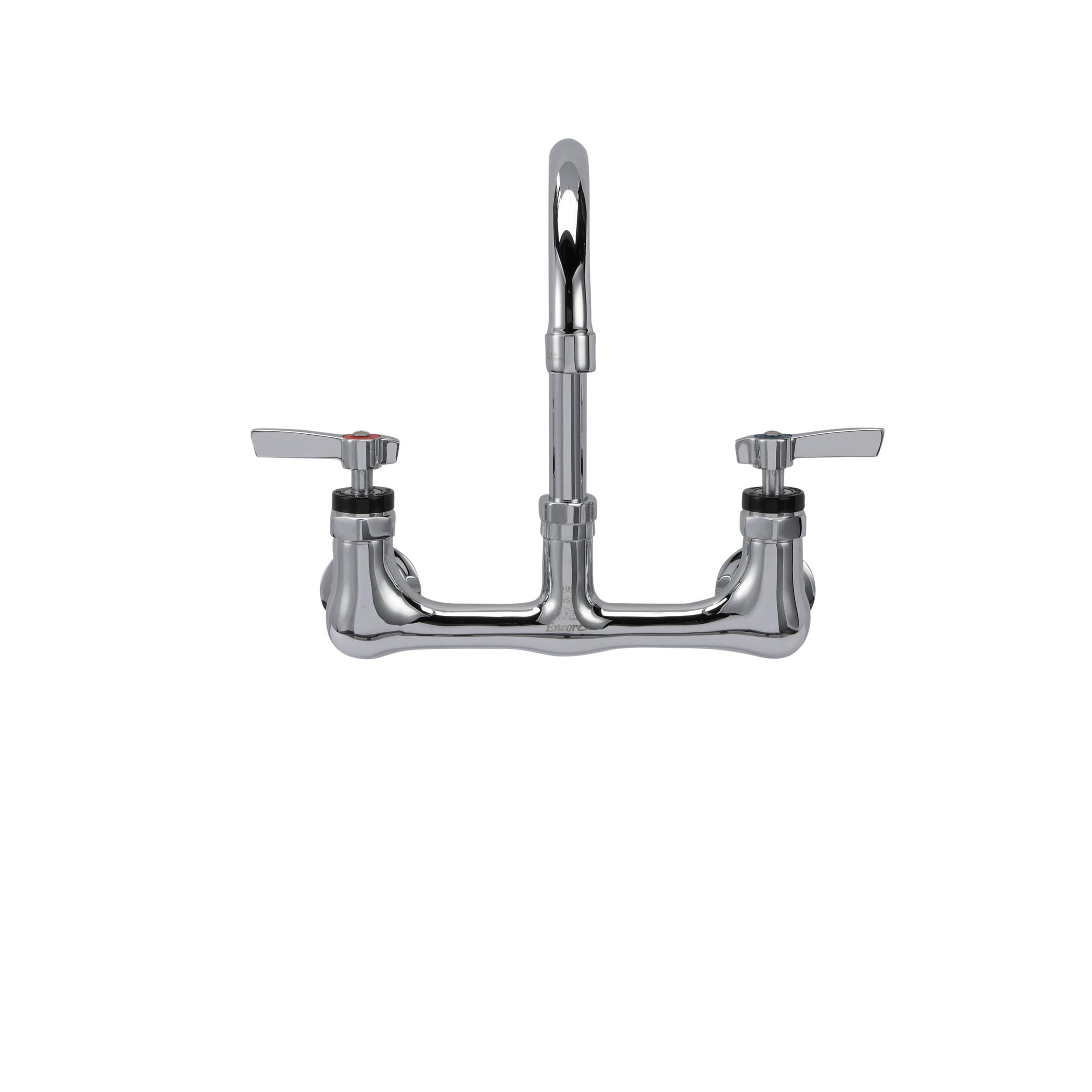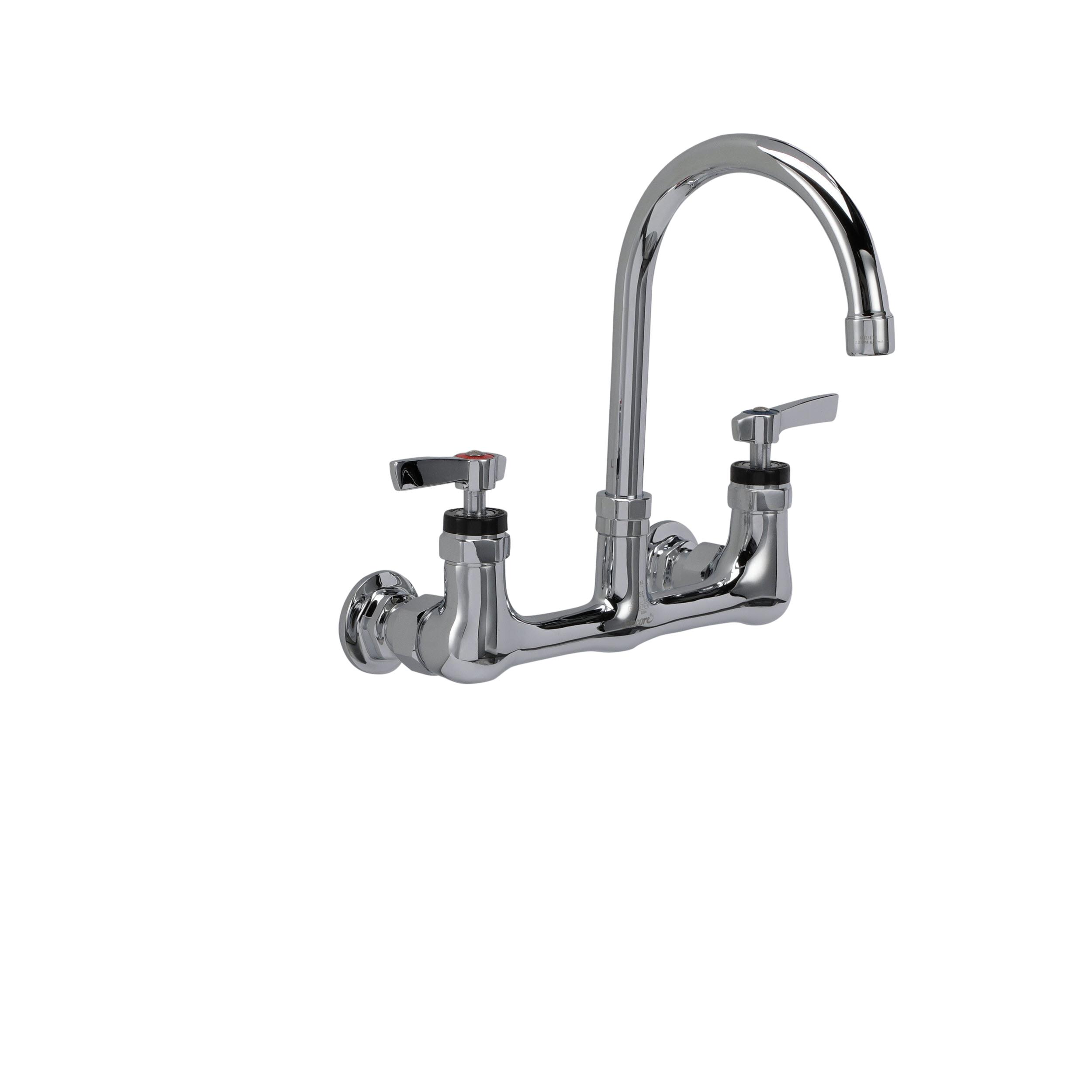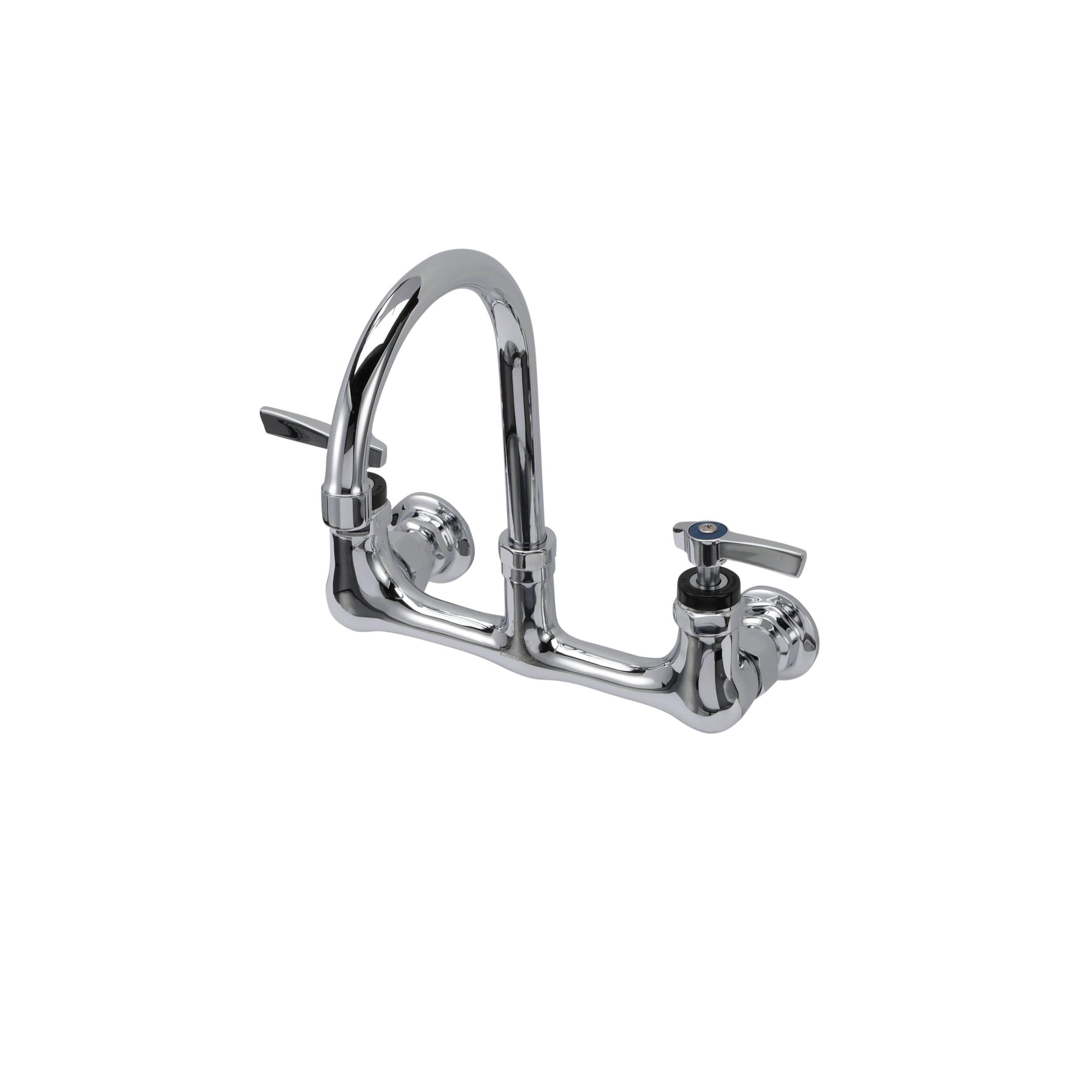 Encore® 8" OC. Brass Chrome Plated Wall Mount Faucet Ceramic Valves with 6" Swivel Gooseneck Spout