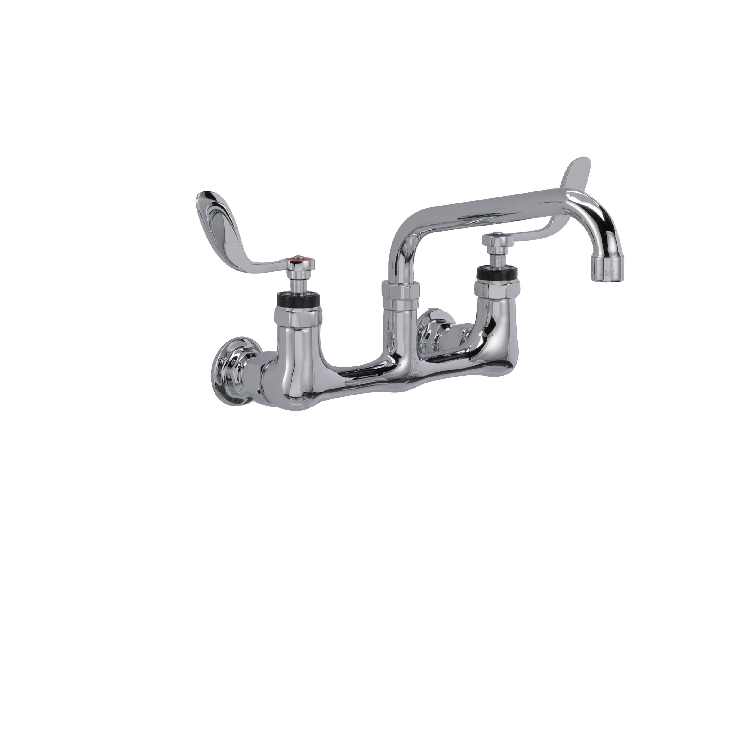 Encore® 8" OC. Brass Chrome Plated Wall Mount Faucet with 8" Swivel Spout 4" Wrist Blade Handles