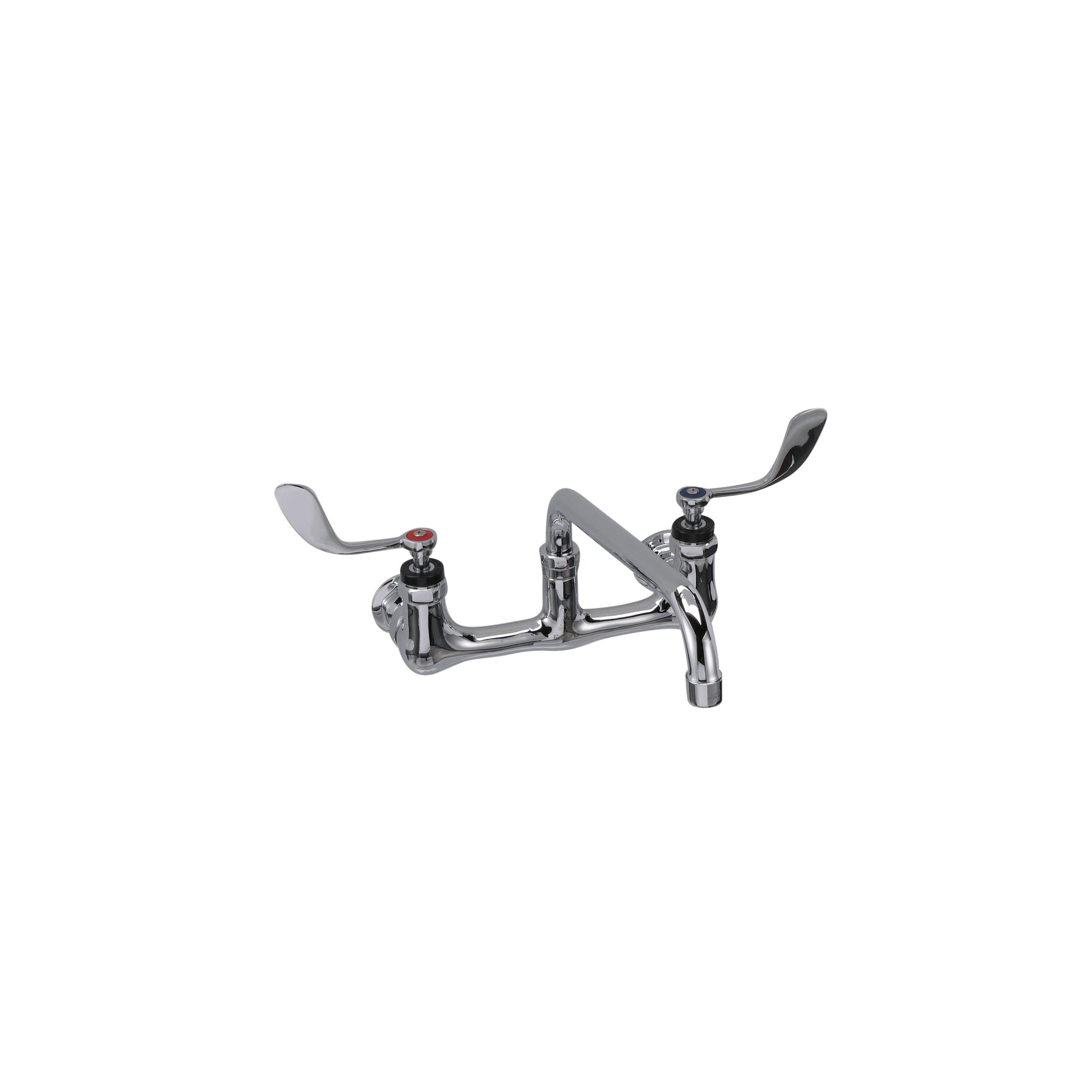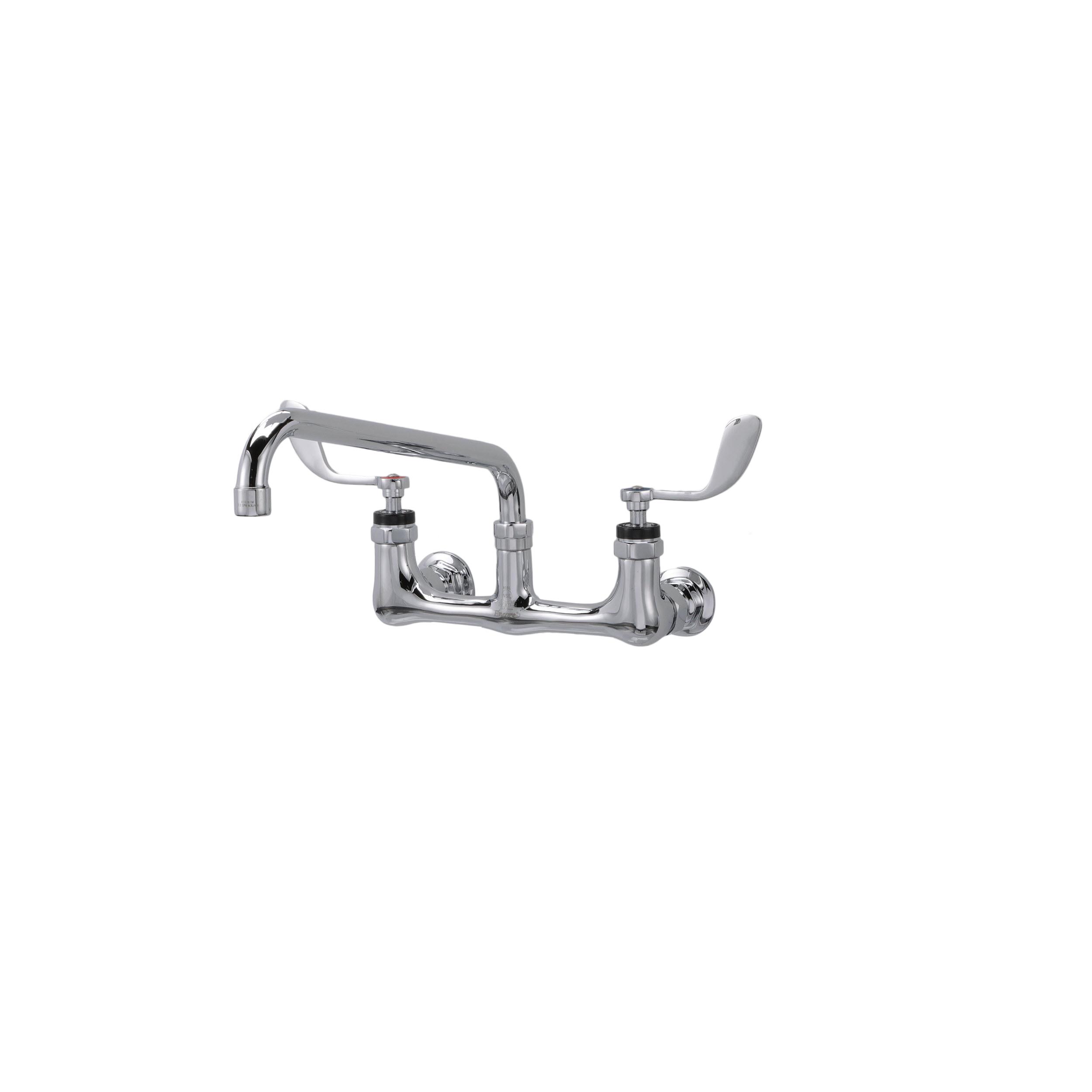 Encore® 8" OC. Brass Chrome Plated Wall Mount Faucet with 12" Swivel Spout 4" Blade Handles