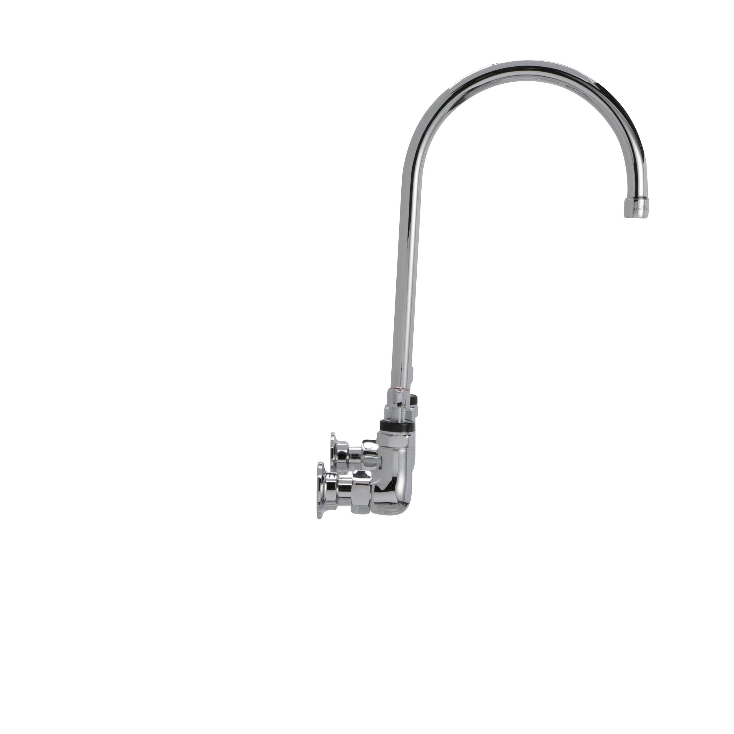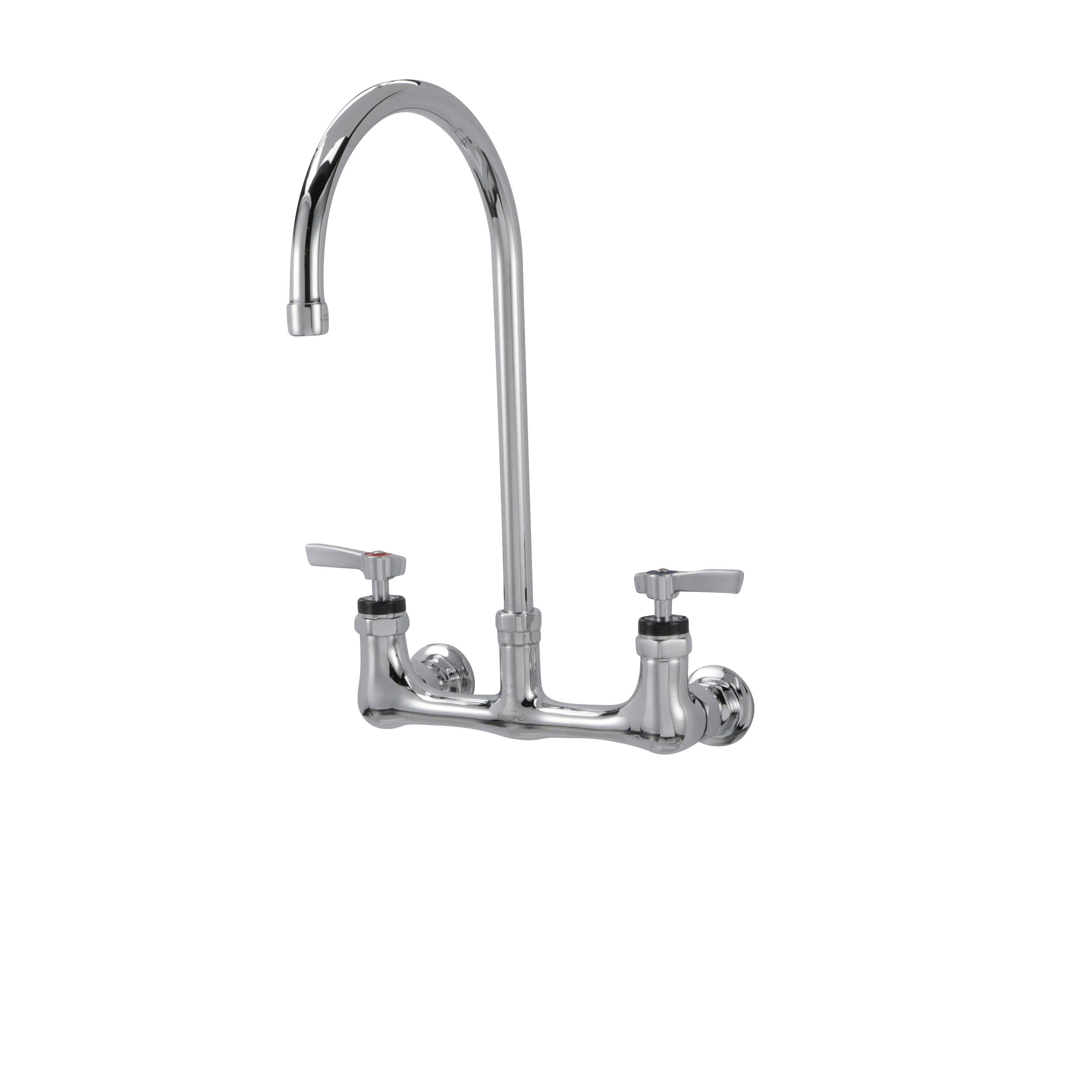 - Encore® 8" OC. Brass Chrome Plated Wall Mount Faucet with 8" Swivel Gooseneck Spout Lever Handles (Retail Packaging)