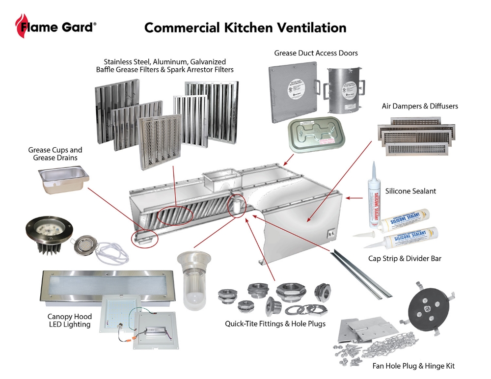 Component Hardware has provided the Flame Gard Canopy Hood line of products since 1968. With a focus on superior performance and safety, Component Hardware has a broad offering including grease filters, grease duct access doors, kitchen exhaust supplies, and other accessories for commercial cooking hood applications.