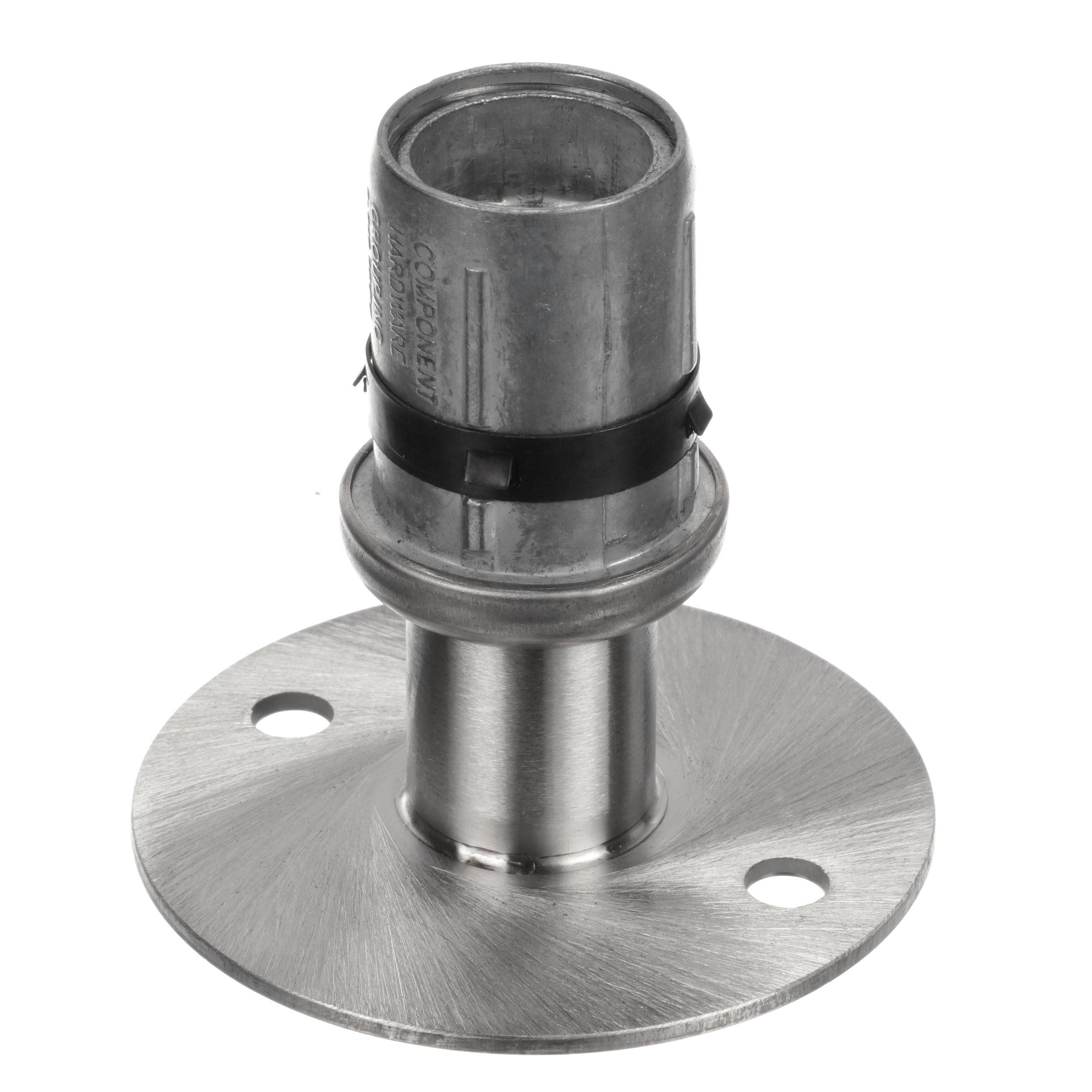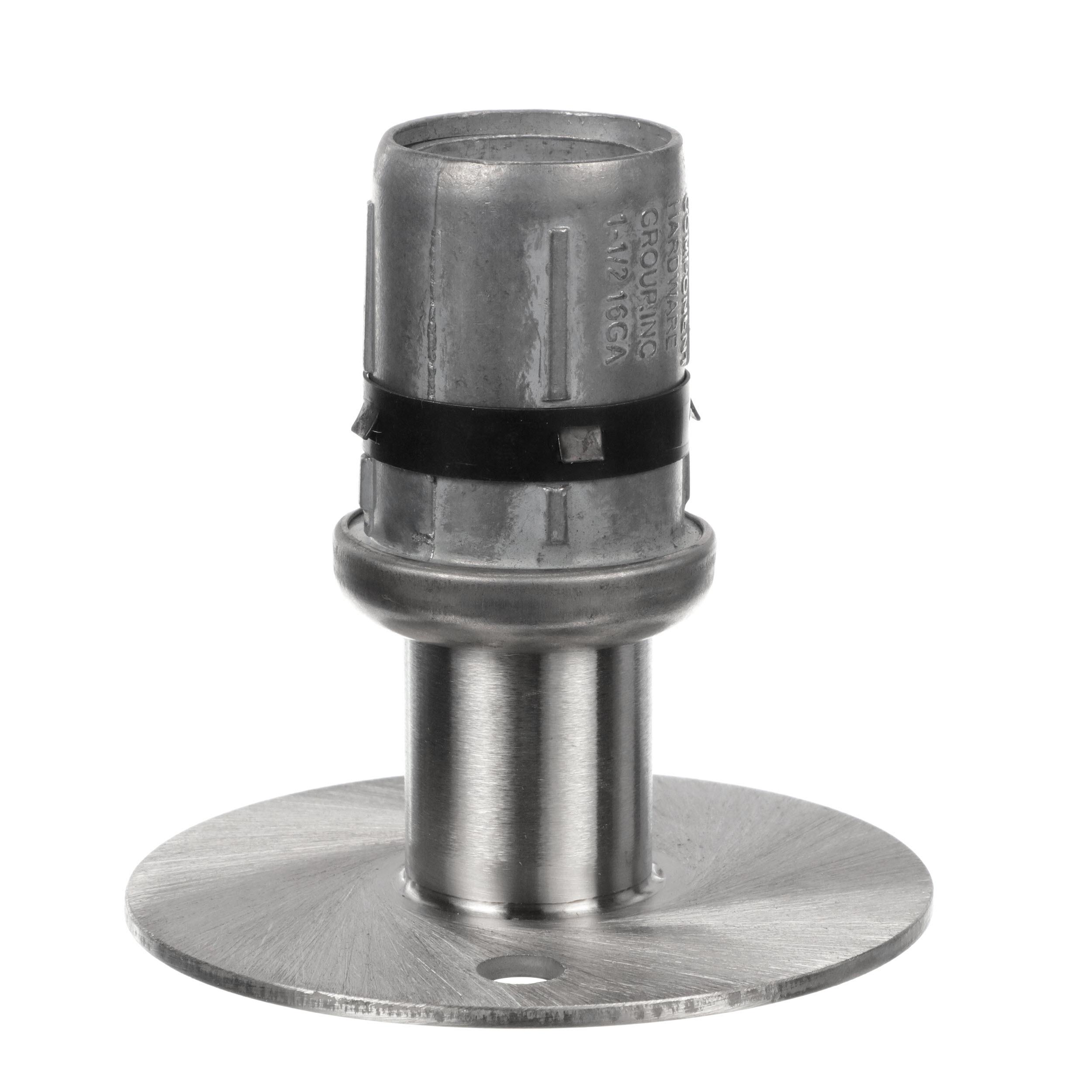 3-1/2" OD 12-gauge stainless steel flanged toe with two 11/32" mounting holes spaced 2-1/2" OC permits secure fastening to the floor