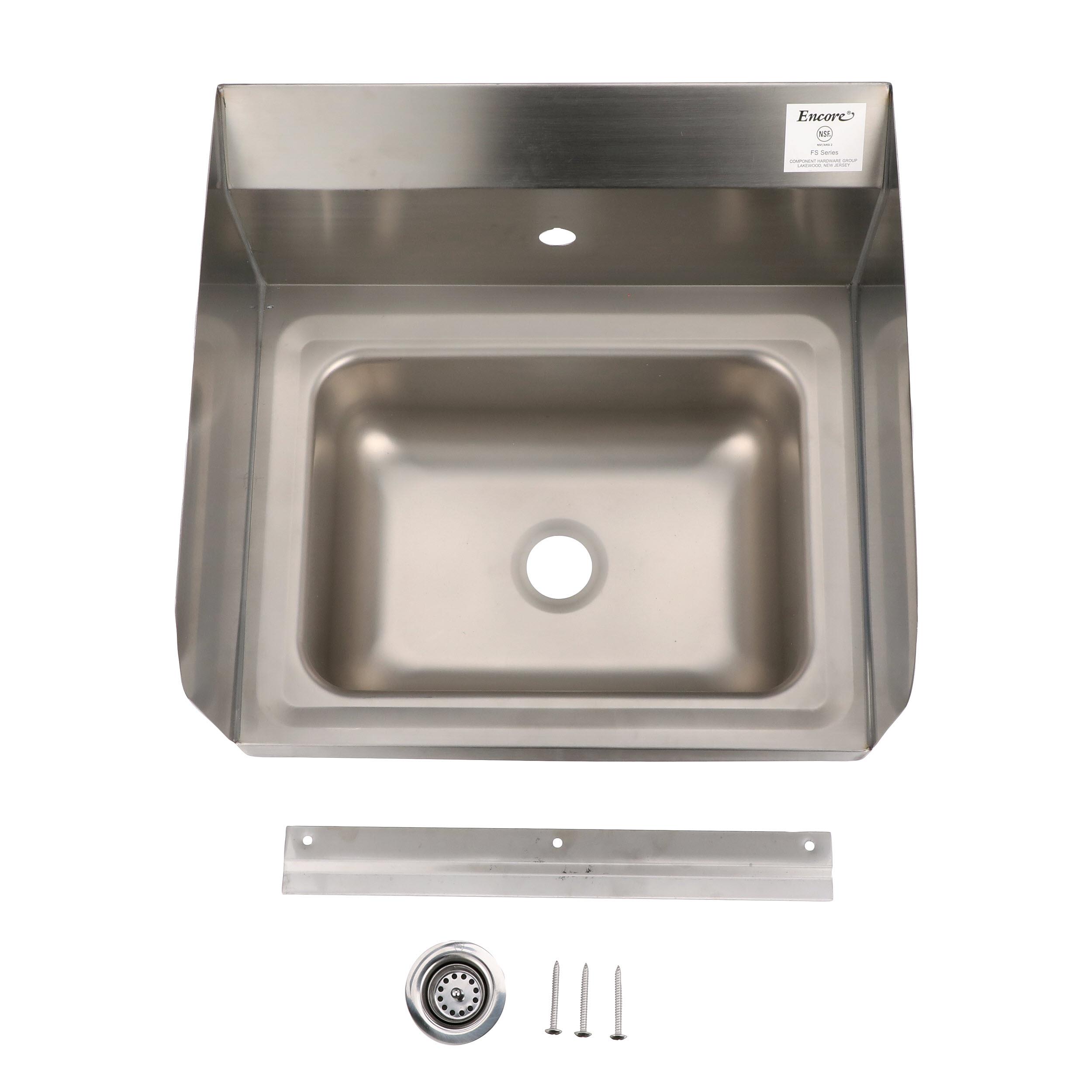 Encore® Wall Mount Type 304 Series Stainless Steel Hand Sink 14" x 10" x 5" Deep with Single Hole and Double Side Splash
