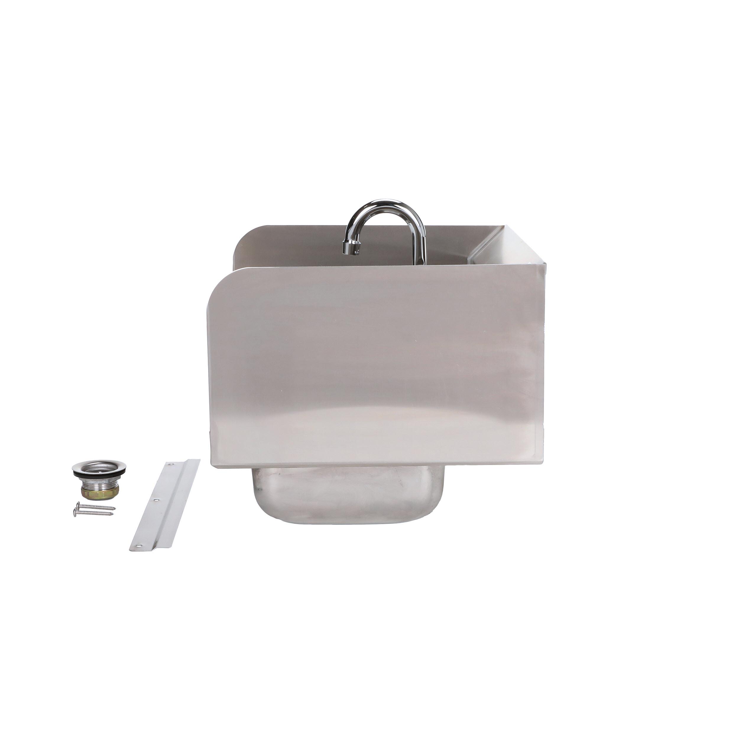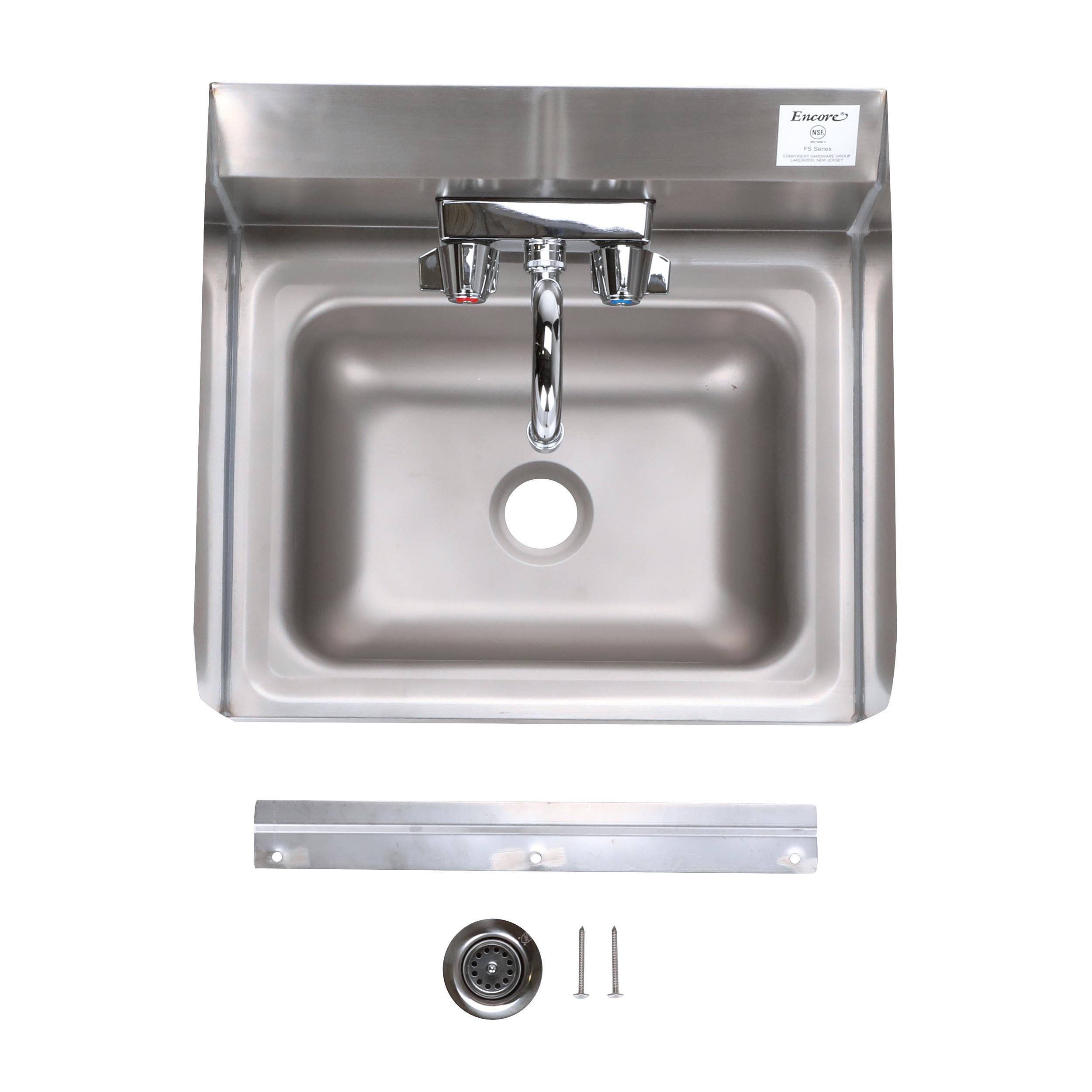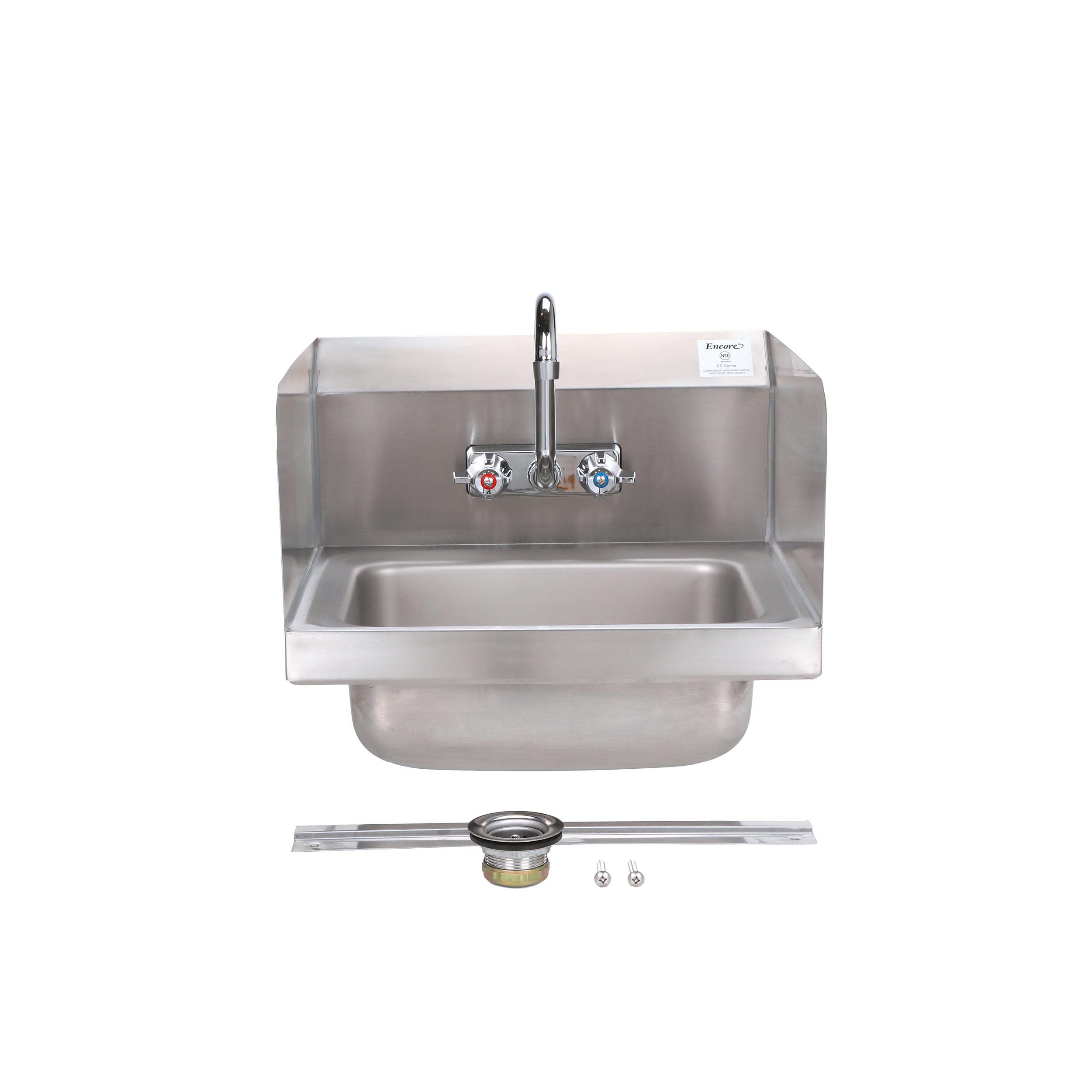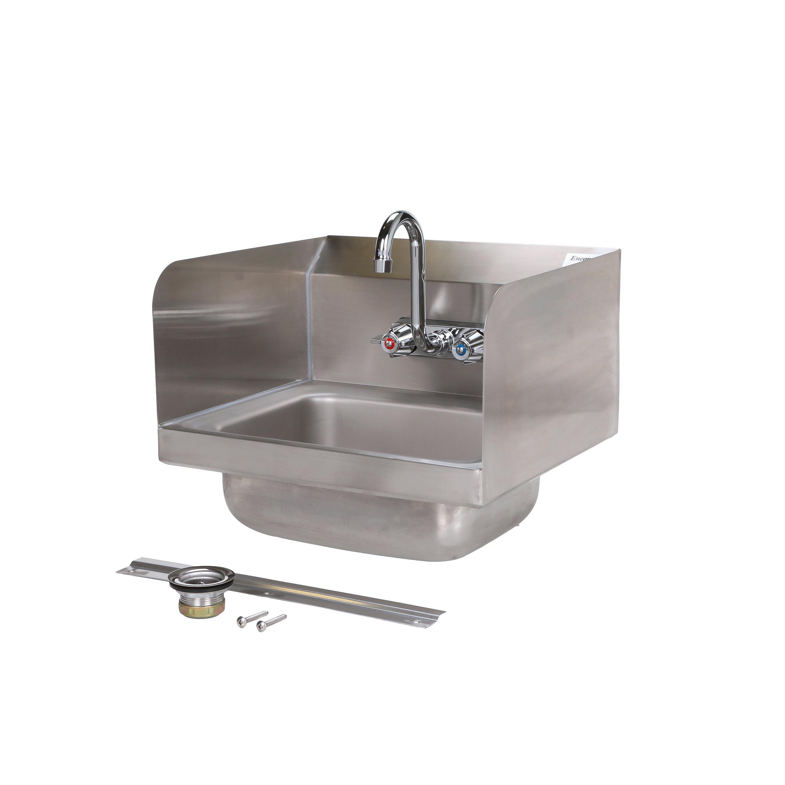 Encore Wall Mount Type 304 Series Stainless Steel Hand Sink 14" x 10" x 5" Deep with 4" OC Holes, Double side splash and KHS15-4000 Faucet