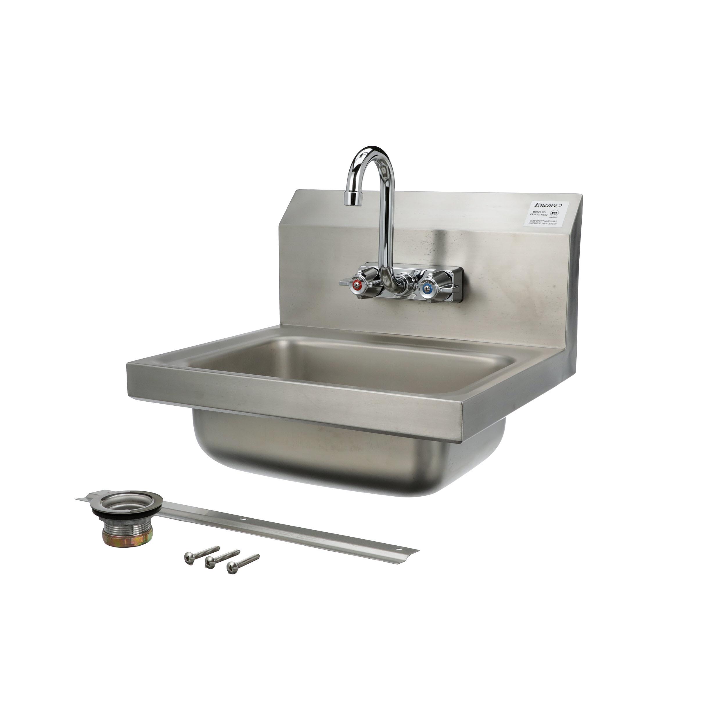 Encore® Wall Mount Type 304 Series Stainless Steel Hand Sink 4" OC Mounting Holes 14" x 10" x 5" Deep Less Side Splash with KHS15-4000