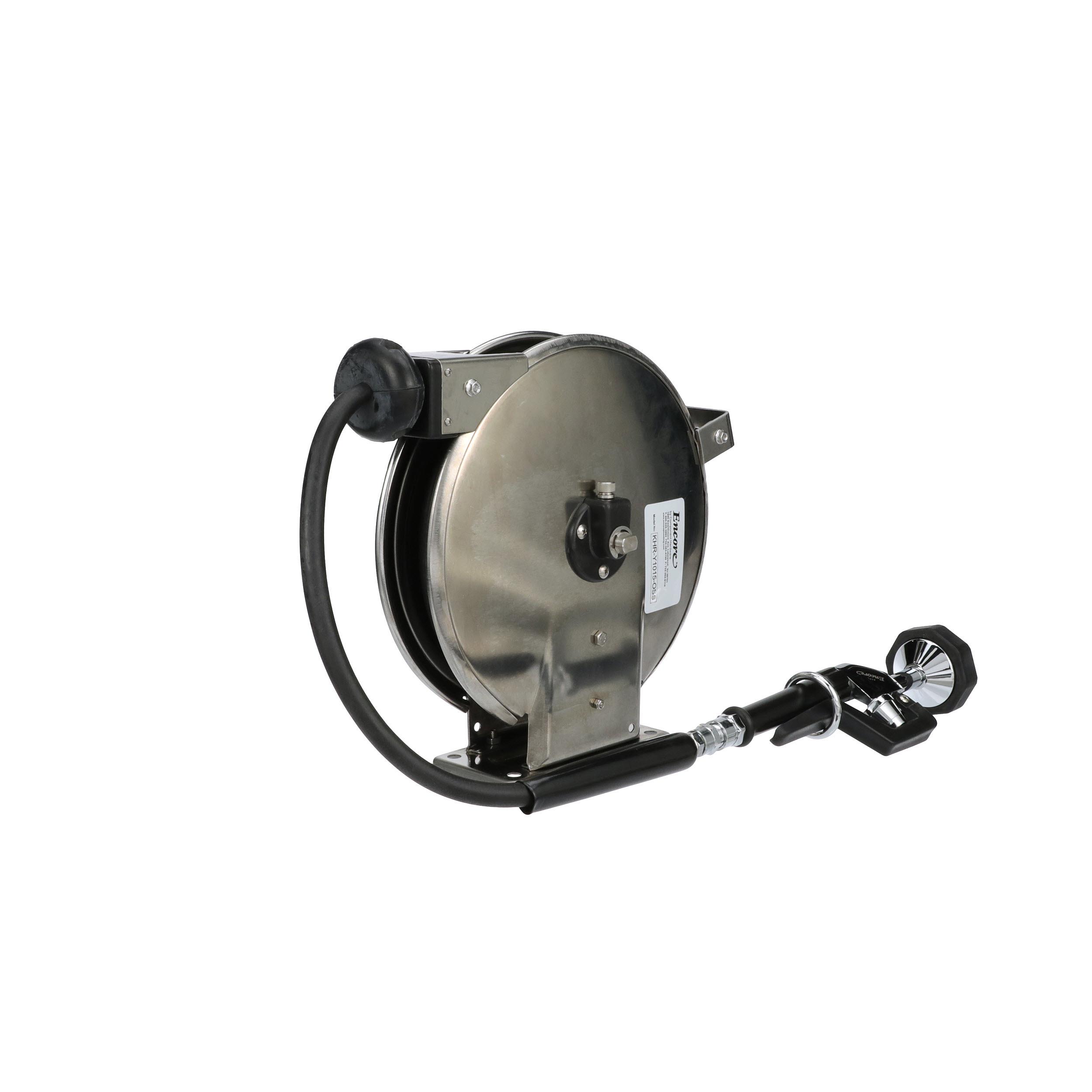 Encore® Hose Reel with 15 ft. Hose, Open Stainless Steel Reel Assembly, 3/8" NPT Female Inlet and 3.3 gpm Spray Valve
