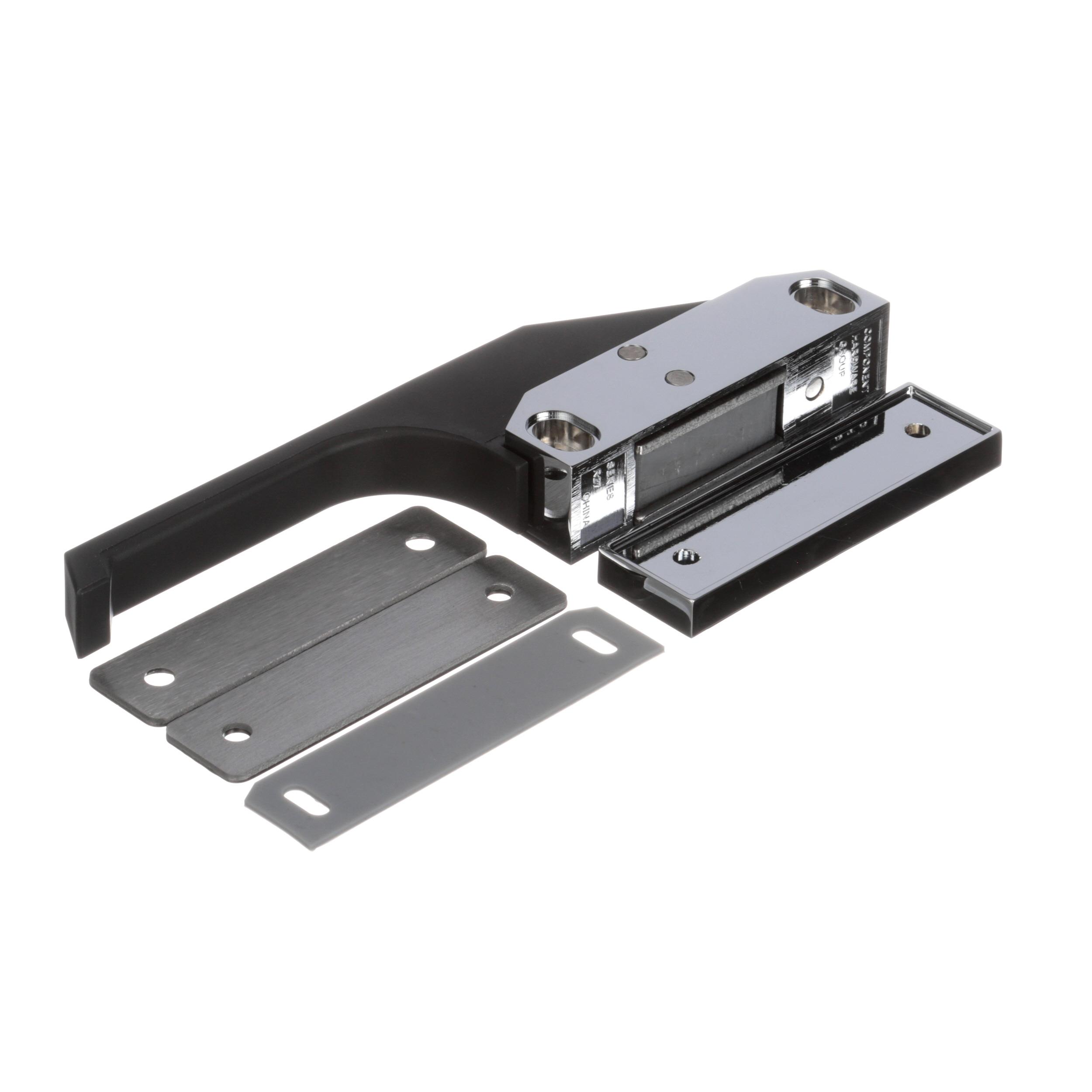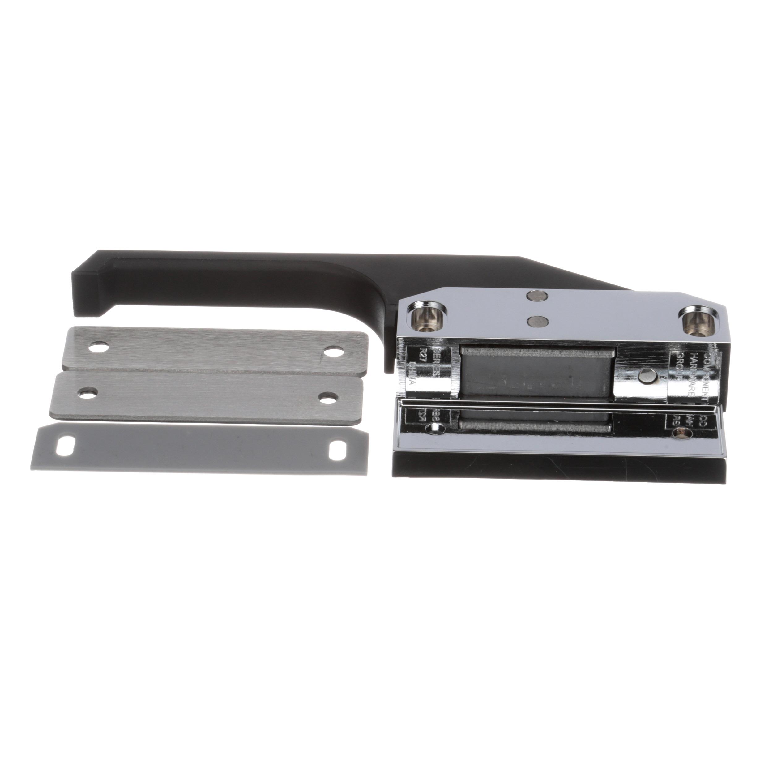 - 8-1/4" L Chrome Plated Die Cast Magnetic Edgemount Latch With Offset Black Heat-Resistant Plastic Handle And Ceramic Magnet