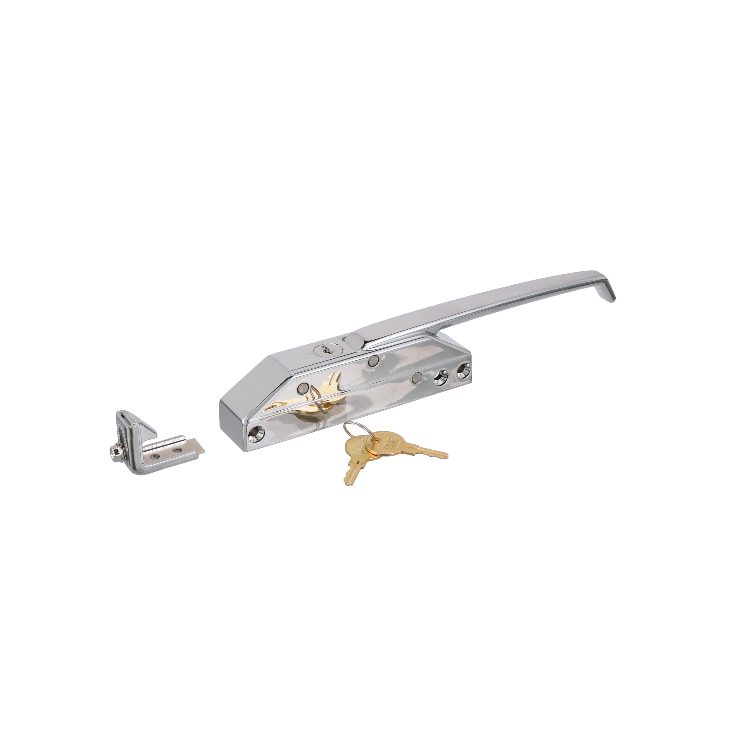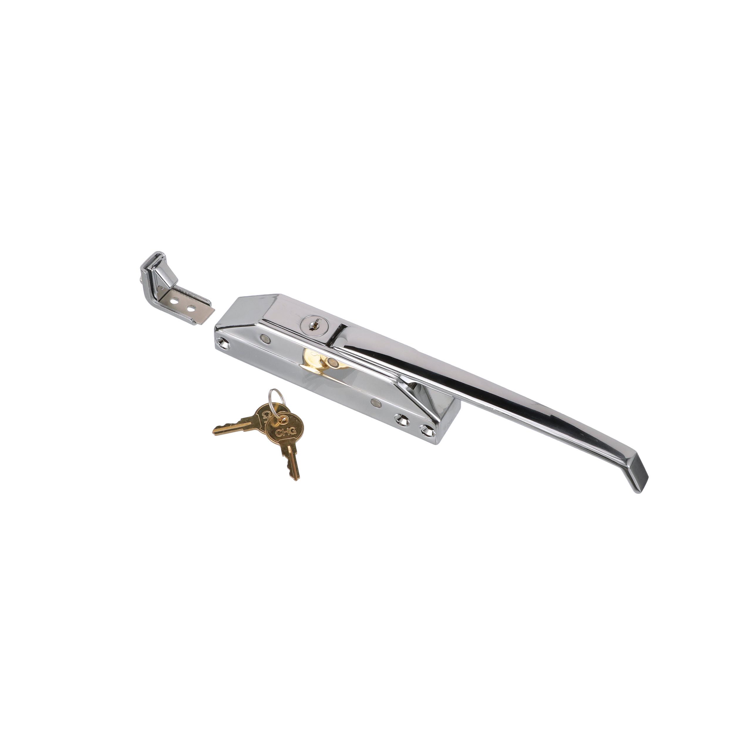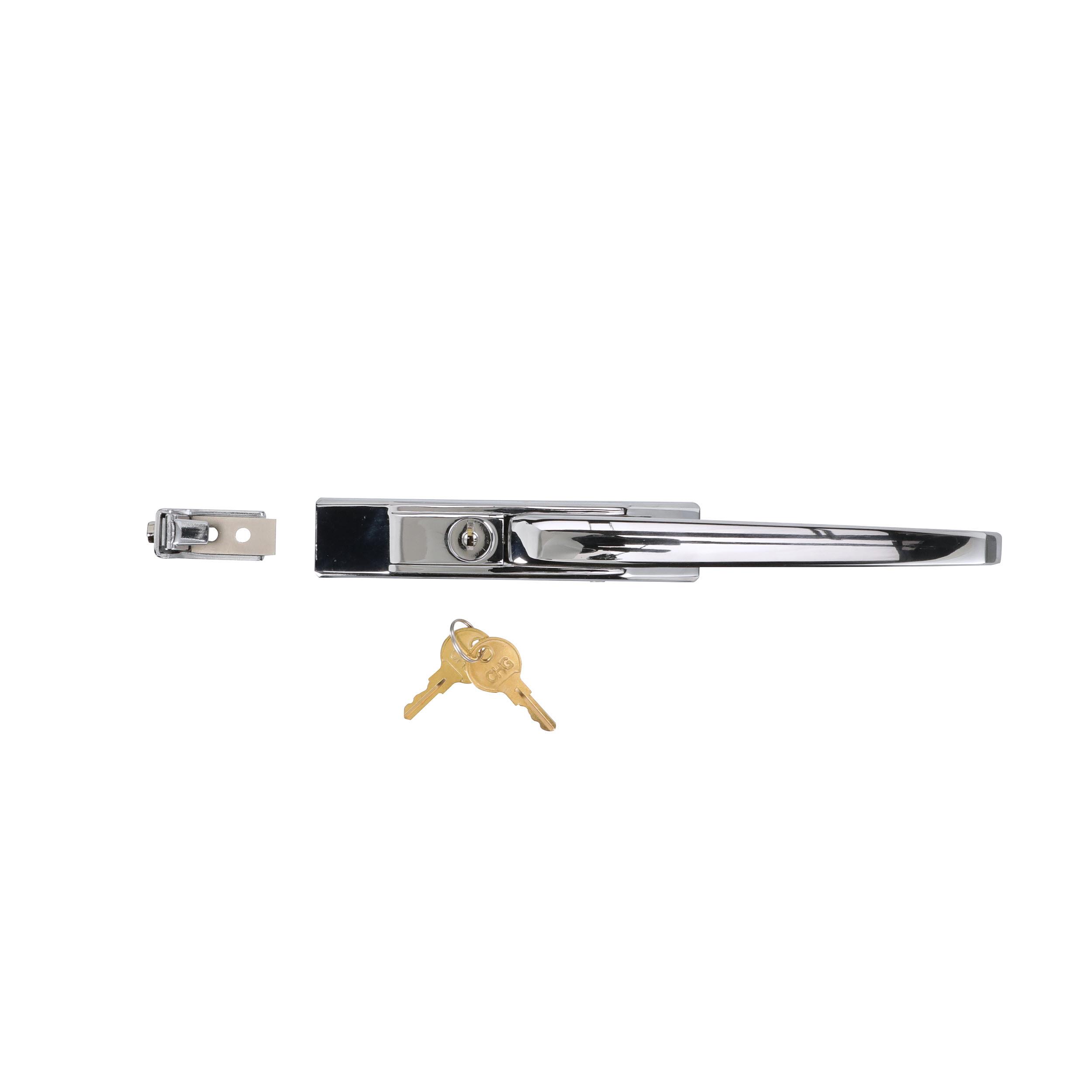 10-1/4" L Chrome Plated Die Cast Mechanical Edgemount Latch With Straight Handle And Cylinder Lock