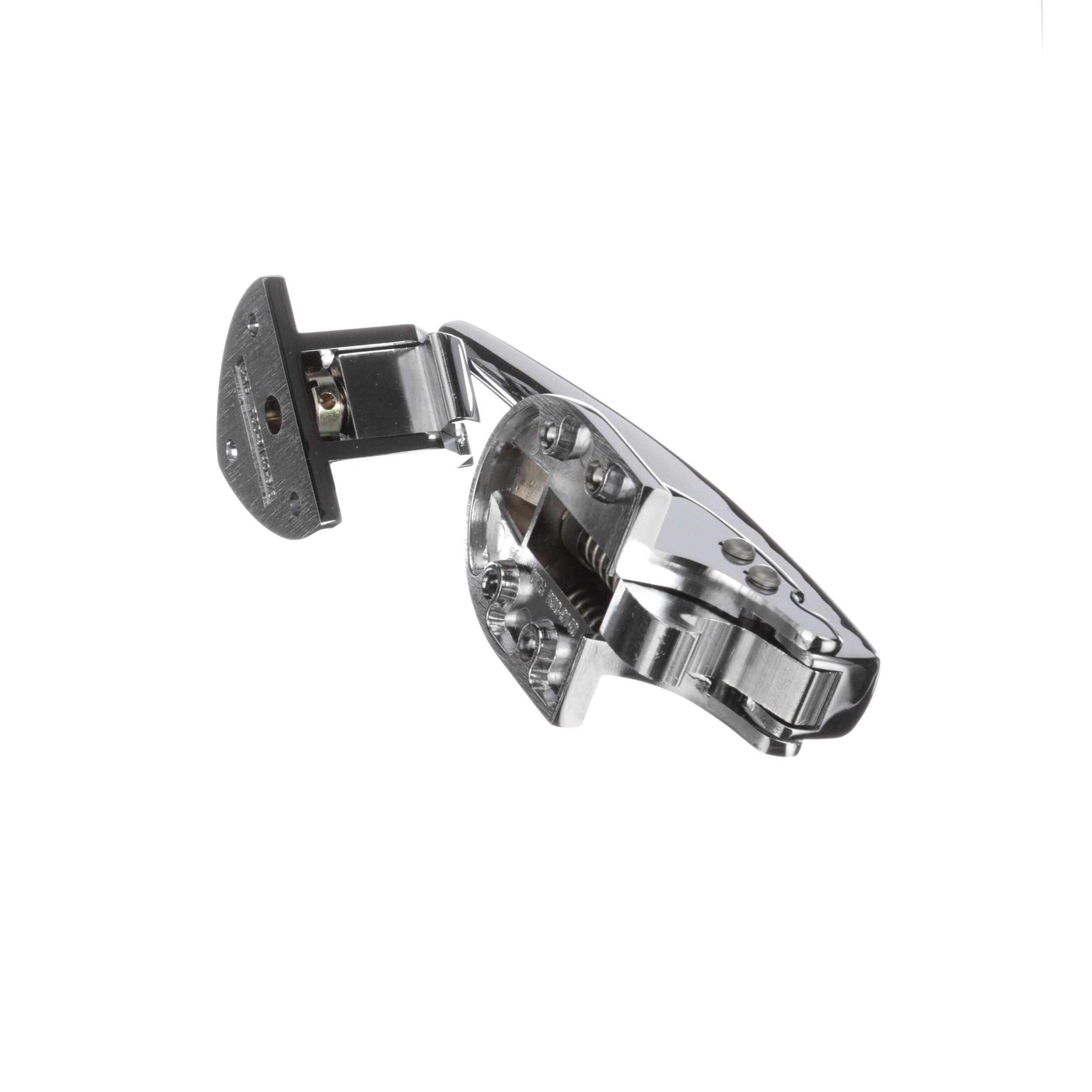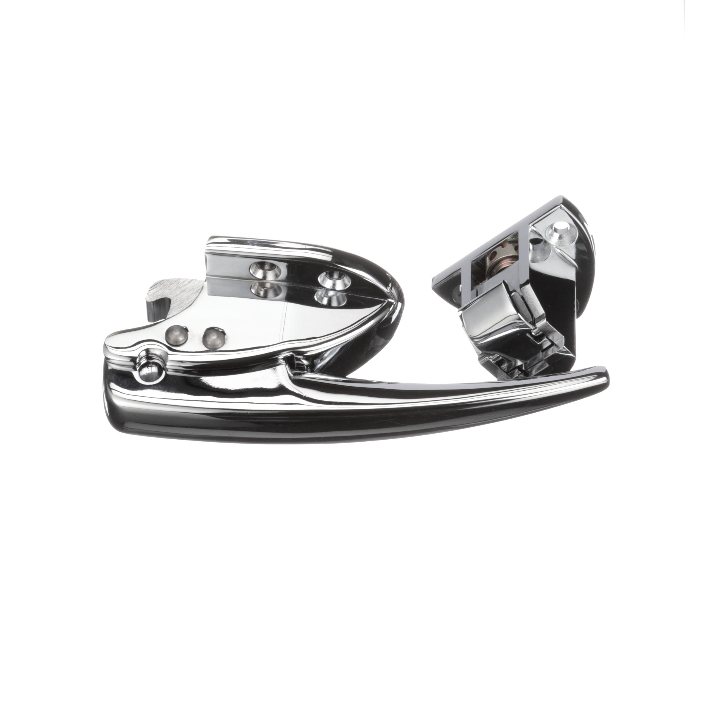 - Chrome plated snap-action latch provided with solid brass trigger mechanism and powerful spring