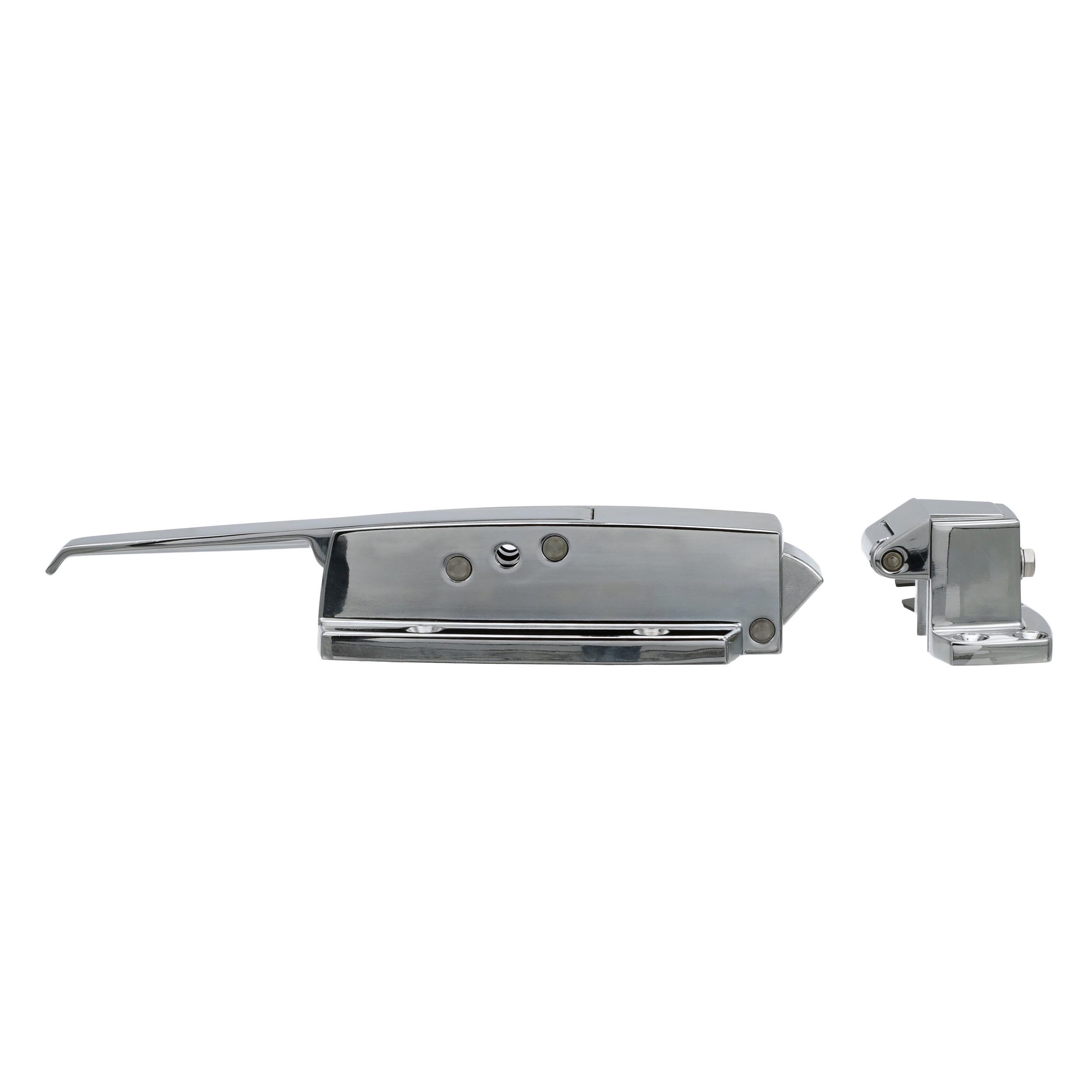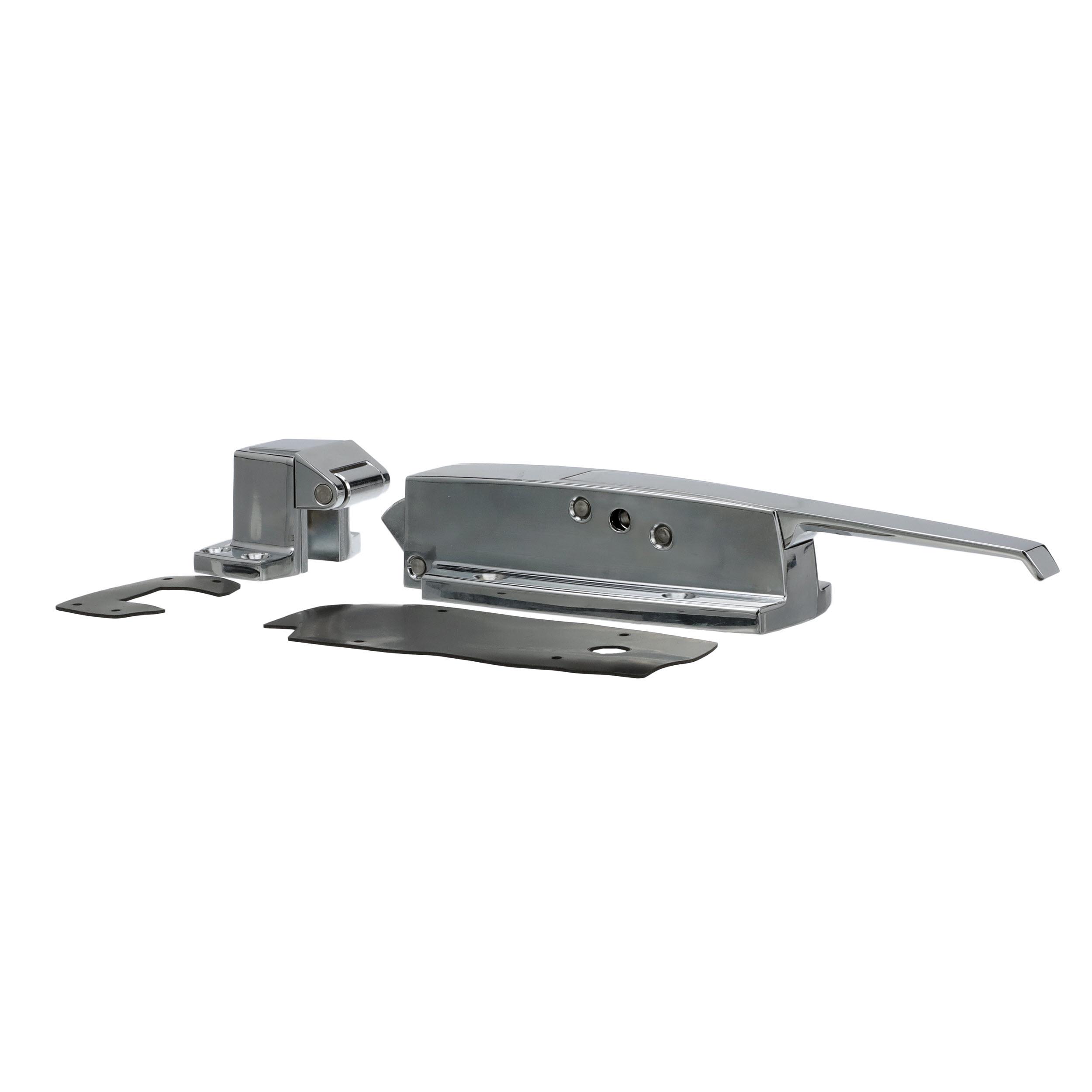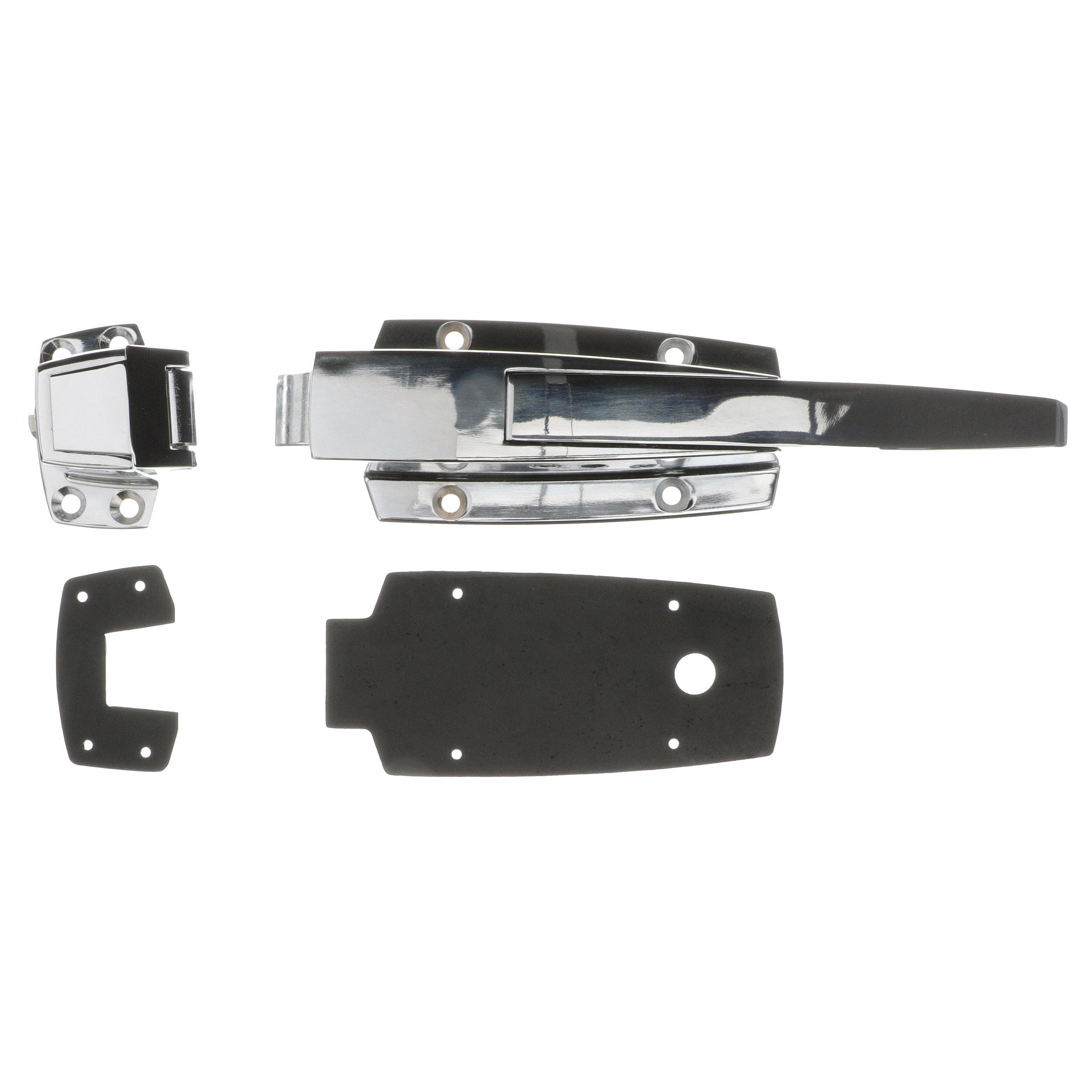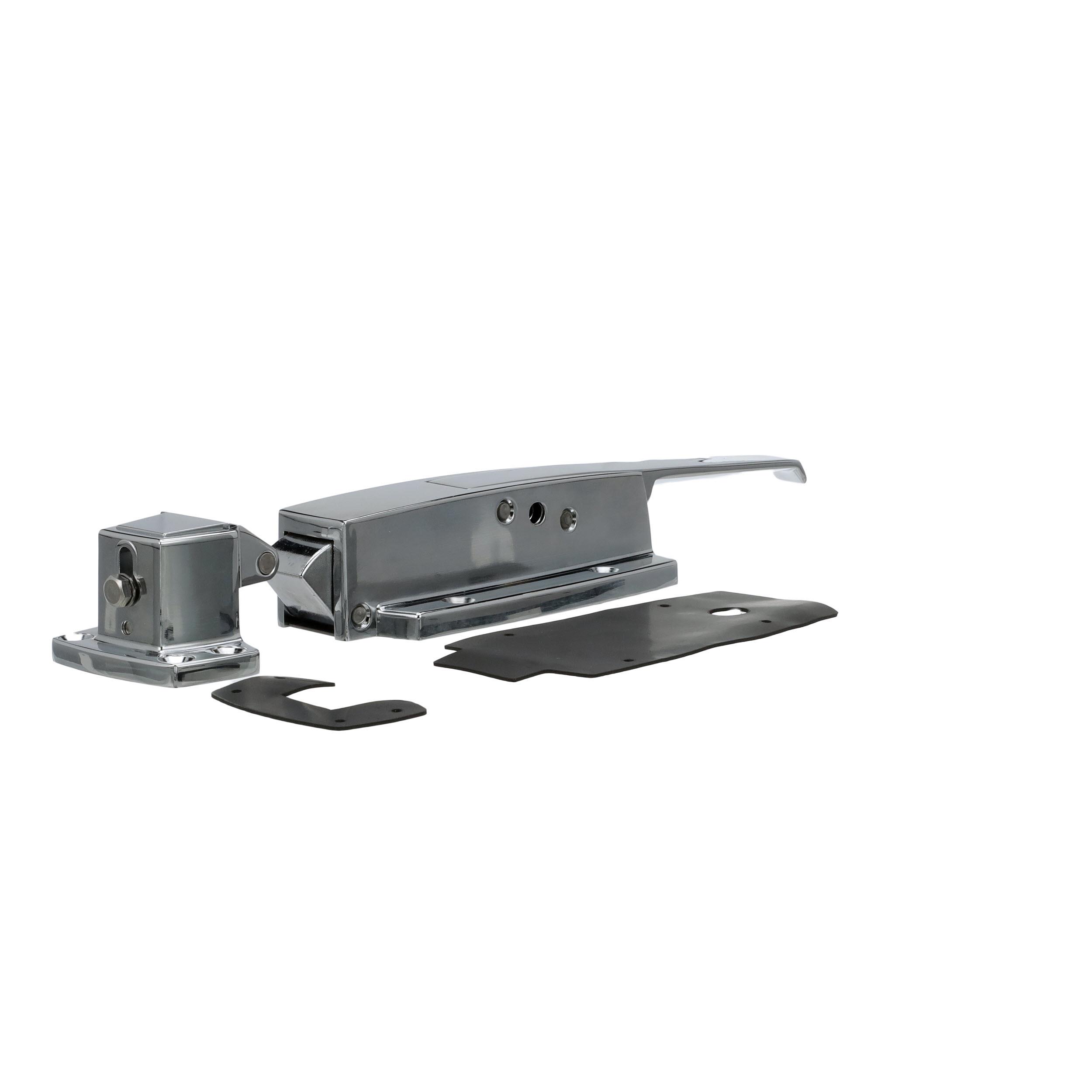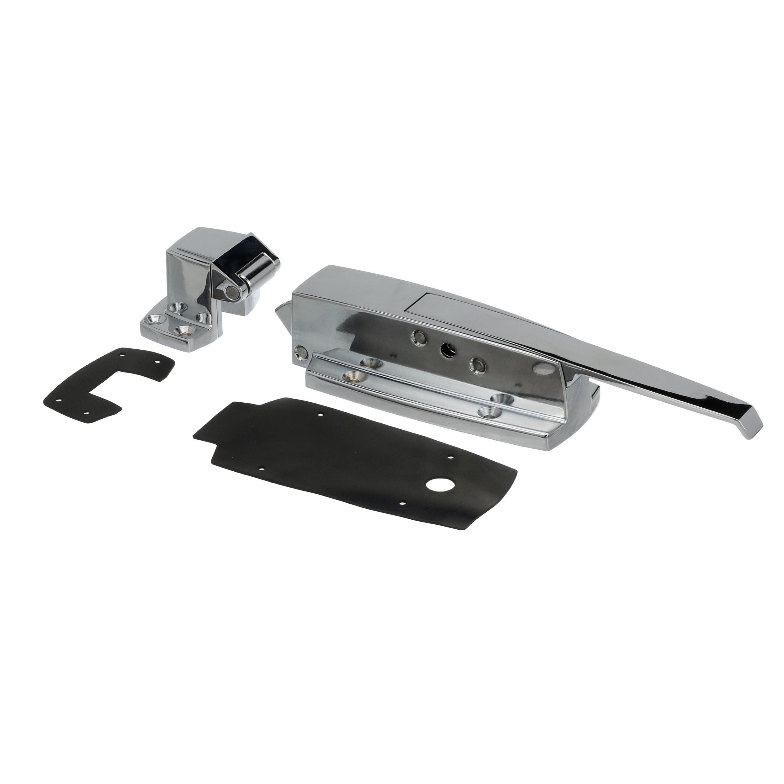 -1/8" to 3/8" Offset Polished Chrome Heavy Duty Walk-In Cooler Door Safety Latch with Cylinder Lock, Strike and Gaskets