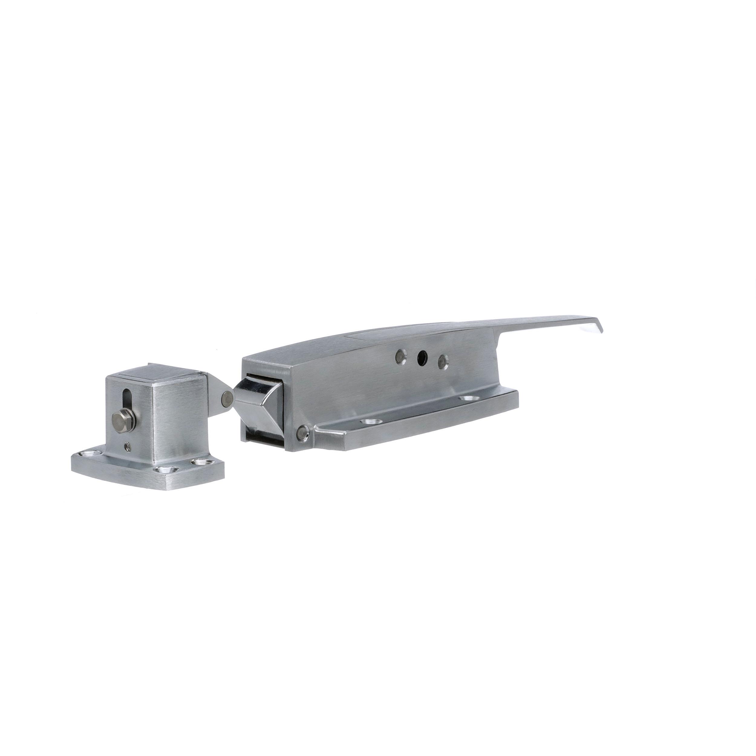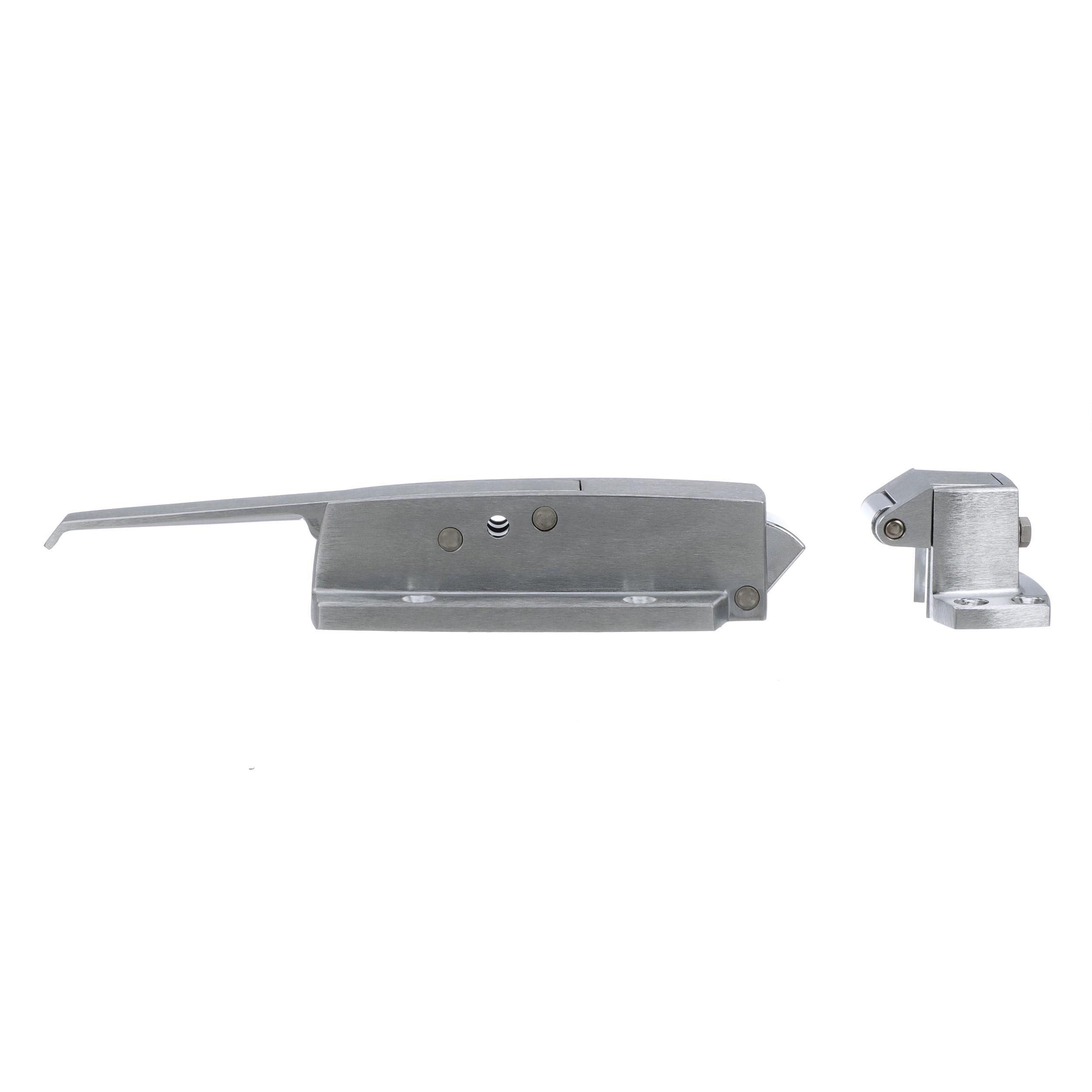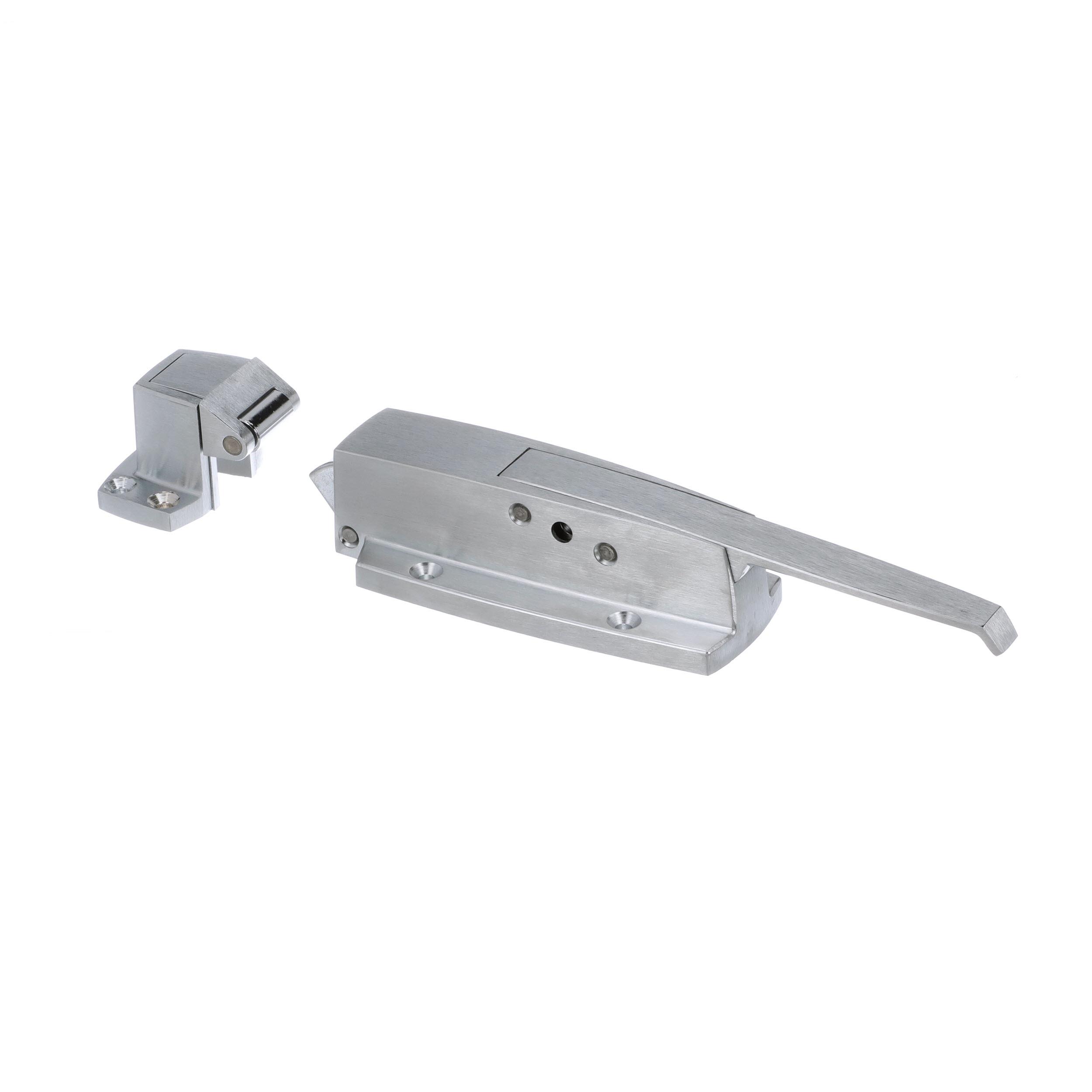 -1/8" to 3/8" Offset Satin Chrome Heavy Duty Walk-In Cooler Door Safety Latch with Strike