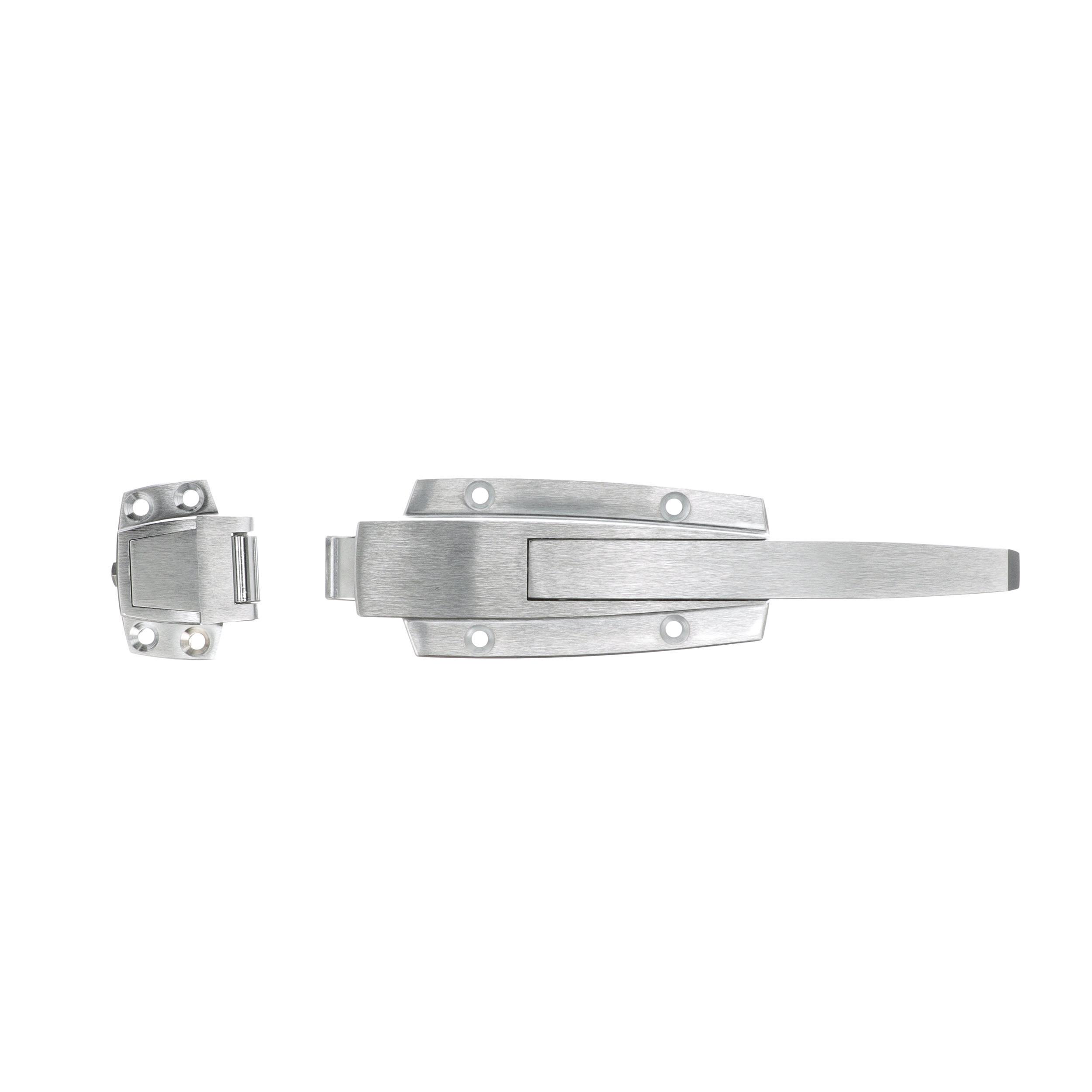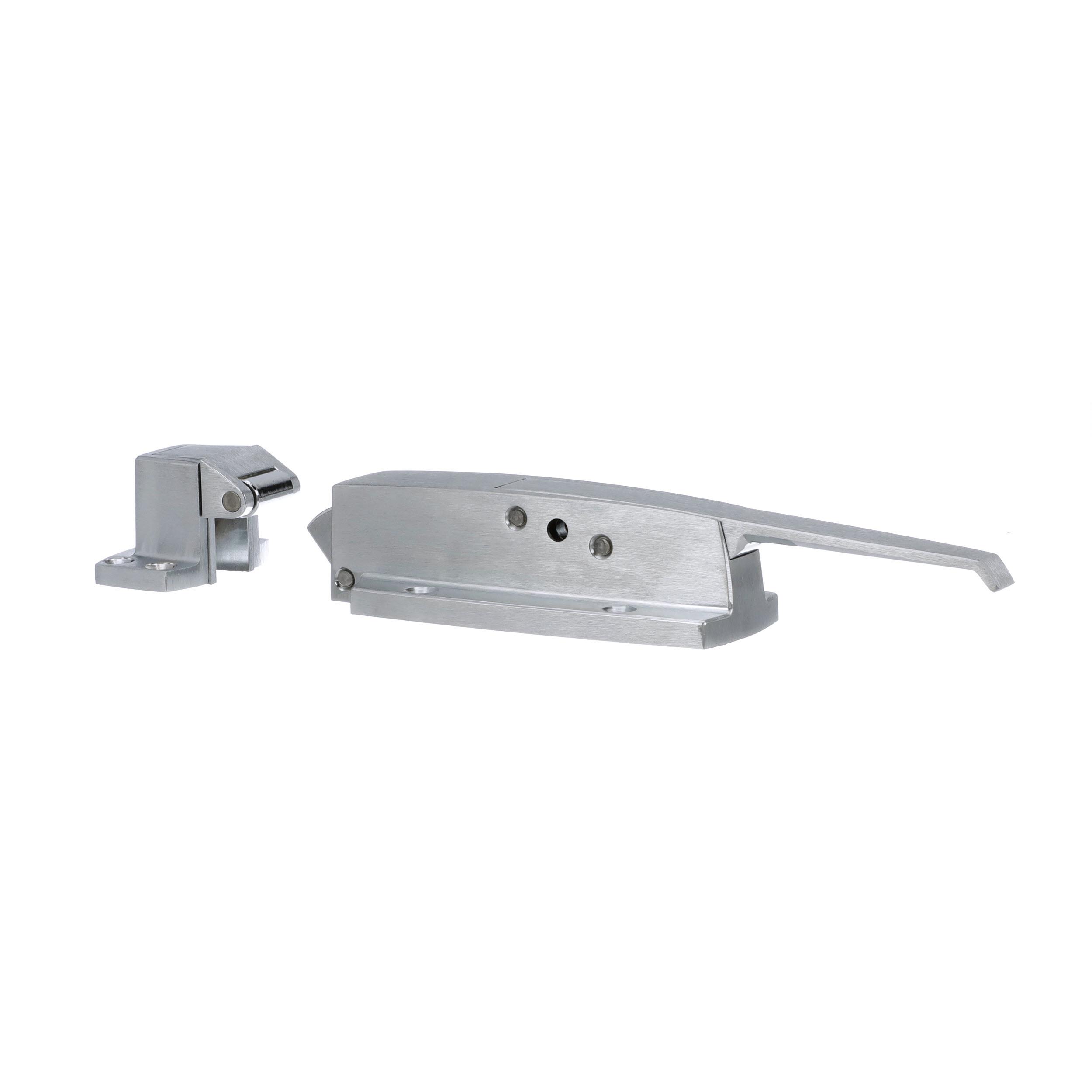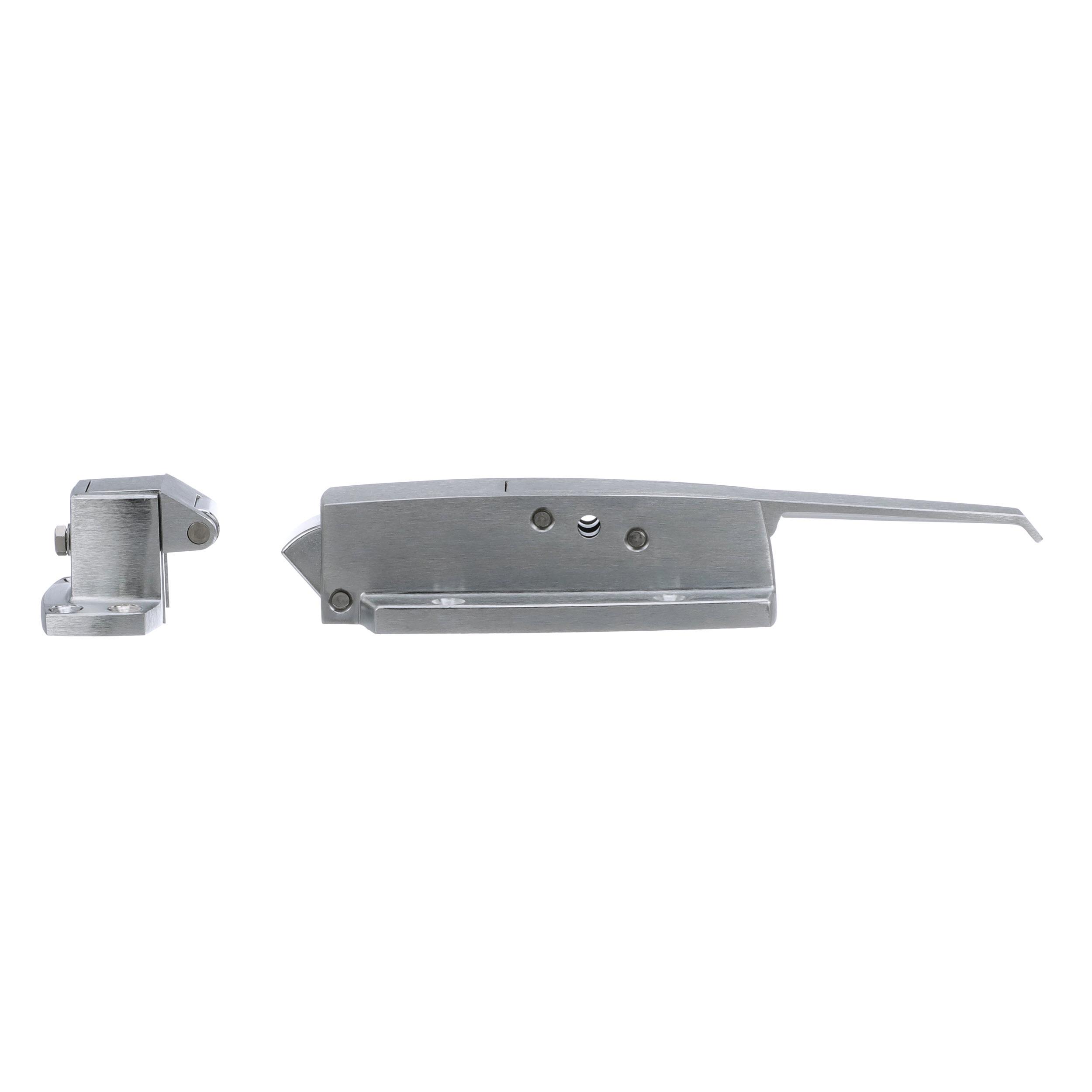 -1/8" to 3/8" Offset Satin Chrome Heavy Duty Walk-In Cooler Door Safety Latch with Strike