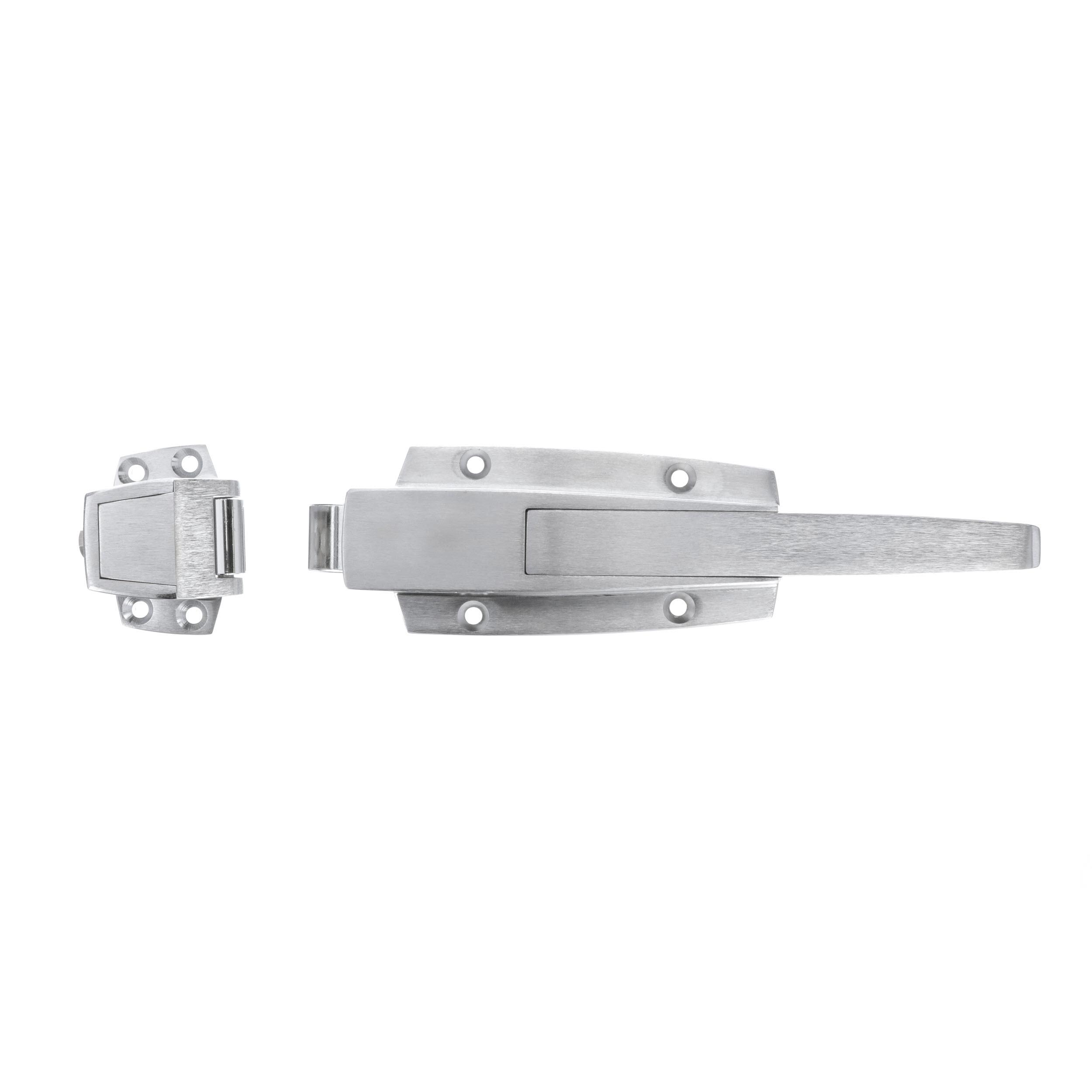 3/4 to 1-5/8" Offset Satin Chrome Heavy Duty Walk-In Cooler Door Safety Latch with Strike