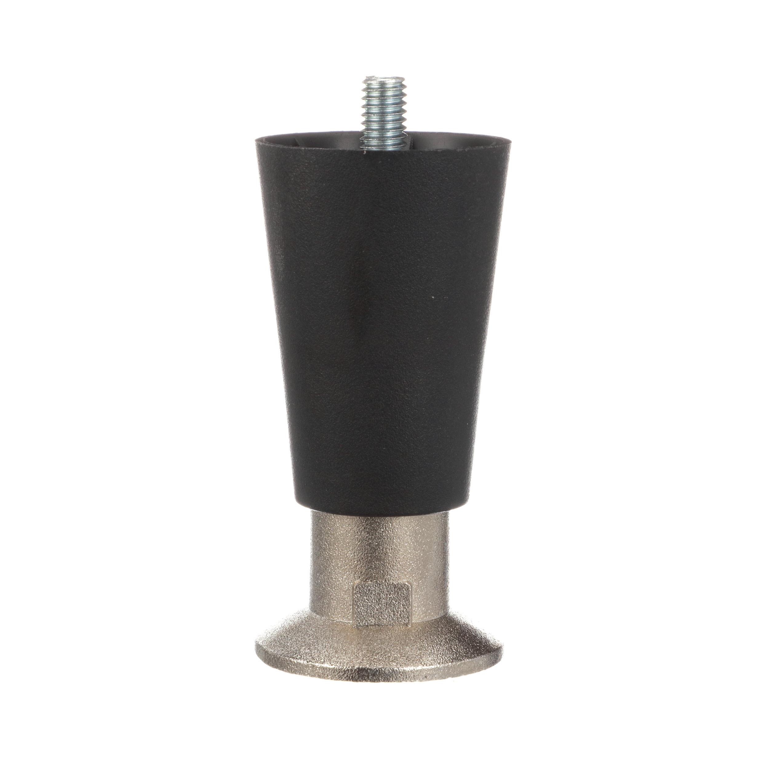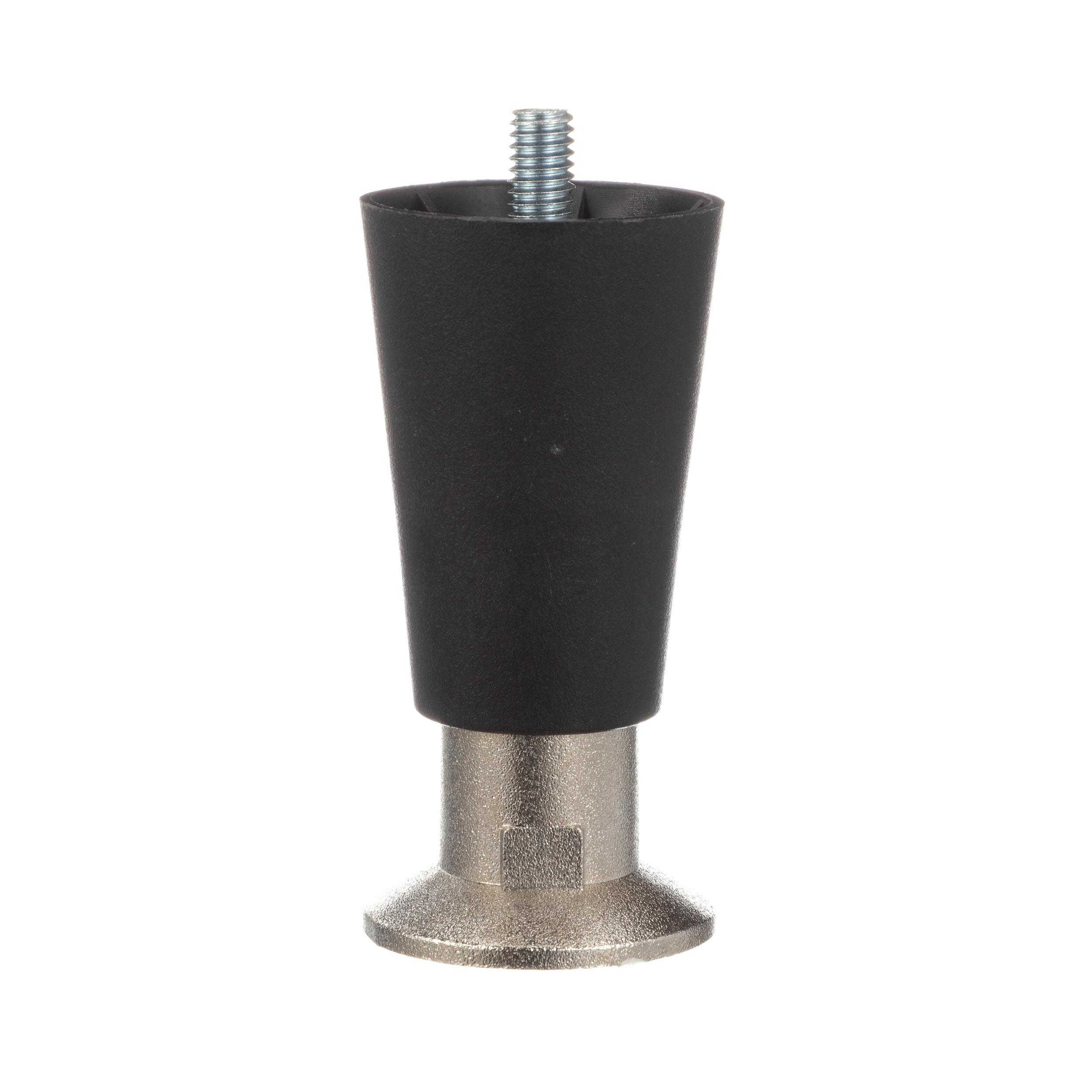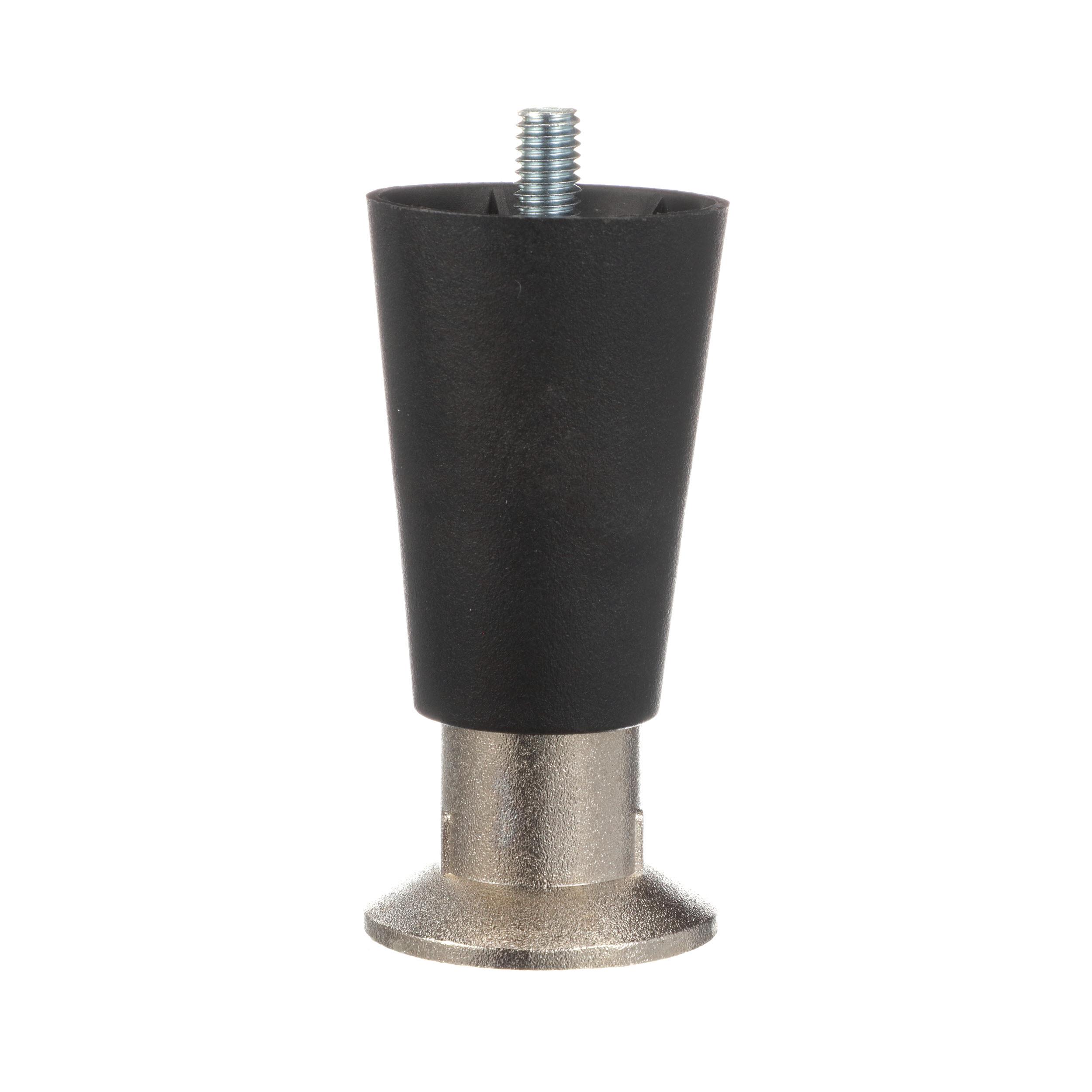 4" H Black High Temperature Thermoplastic Appliance Leg With 3/8-16 x 1/2" L Protruding Stud and Nickel Plated Die Cast Flanged Toe