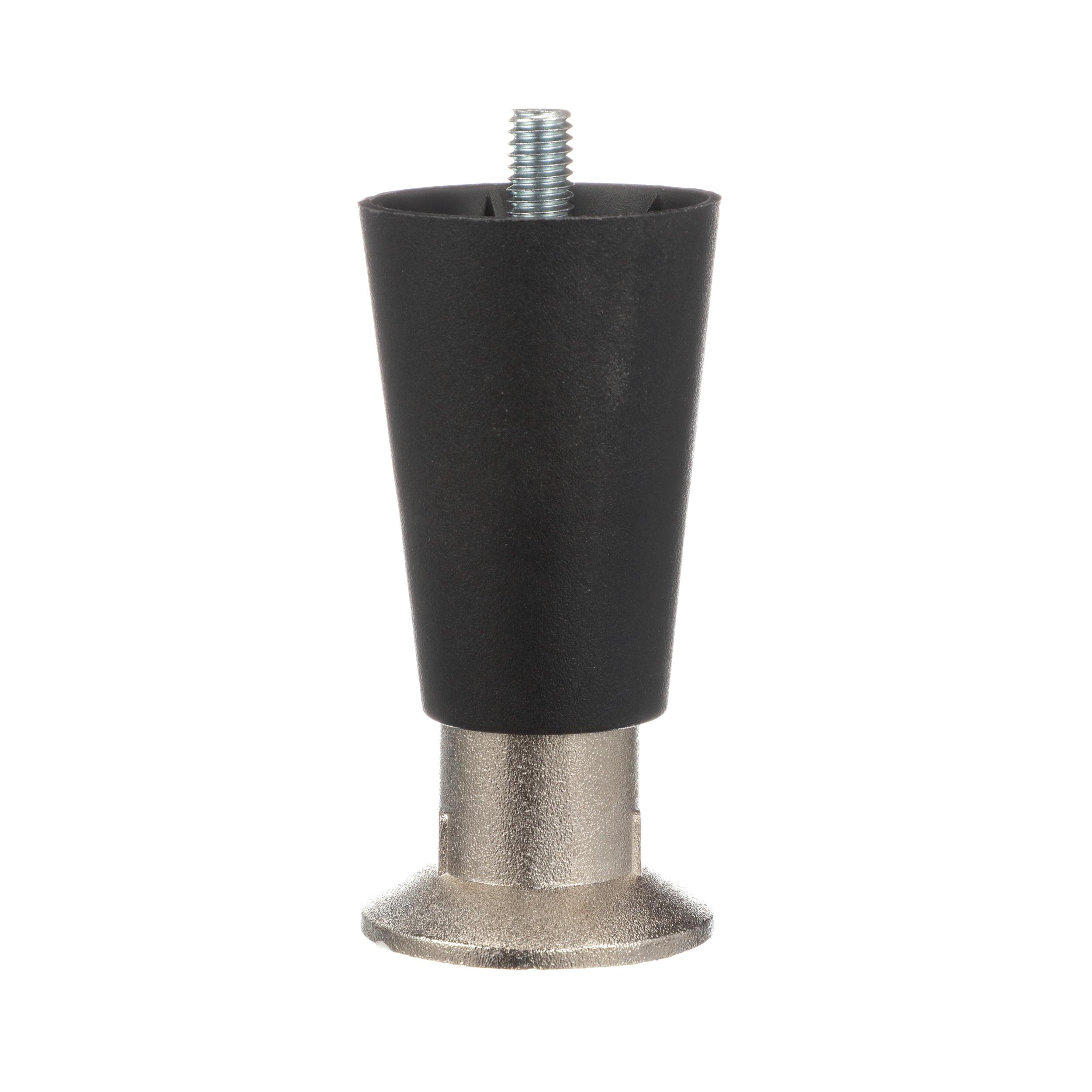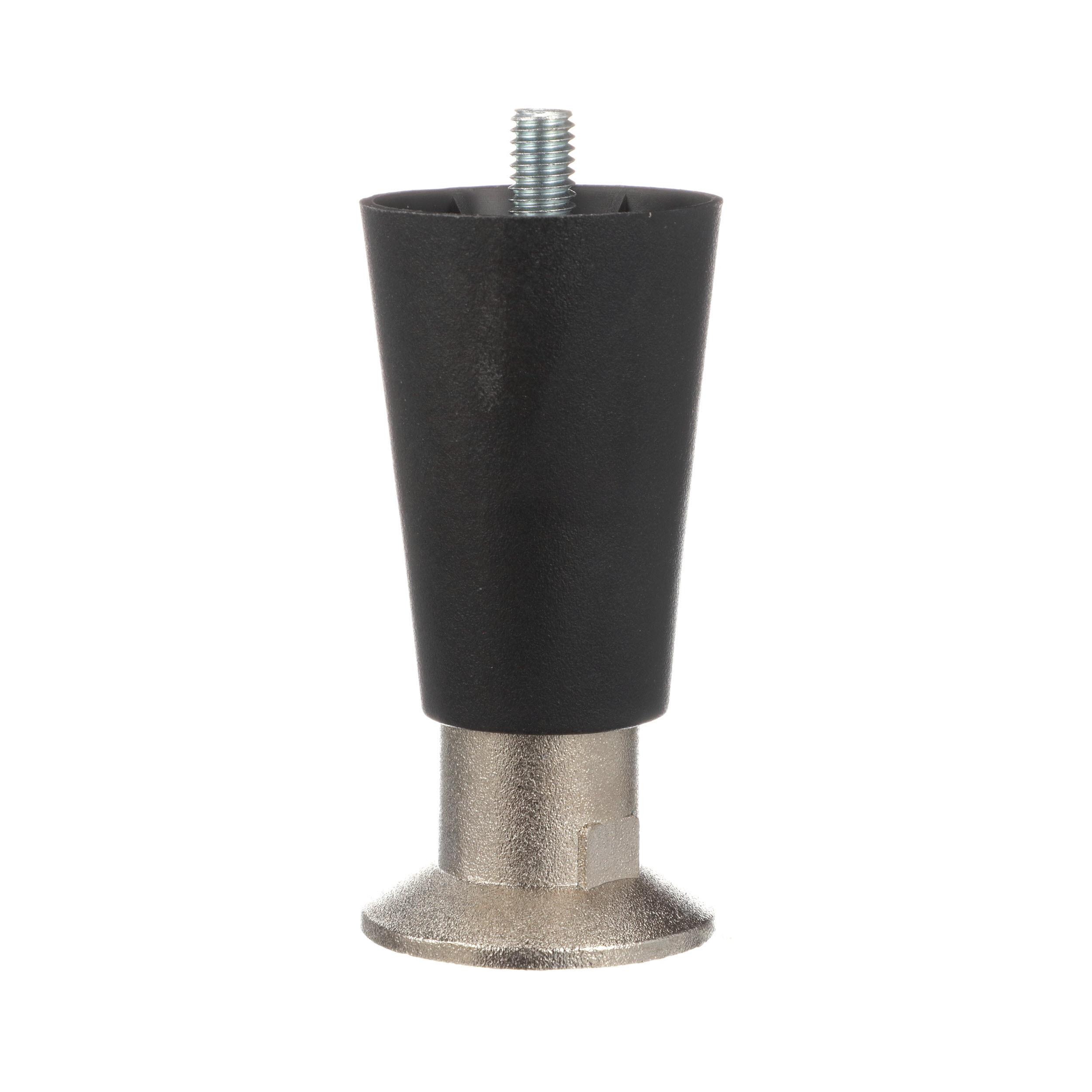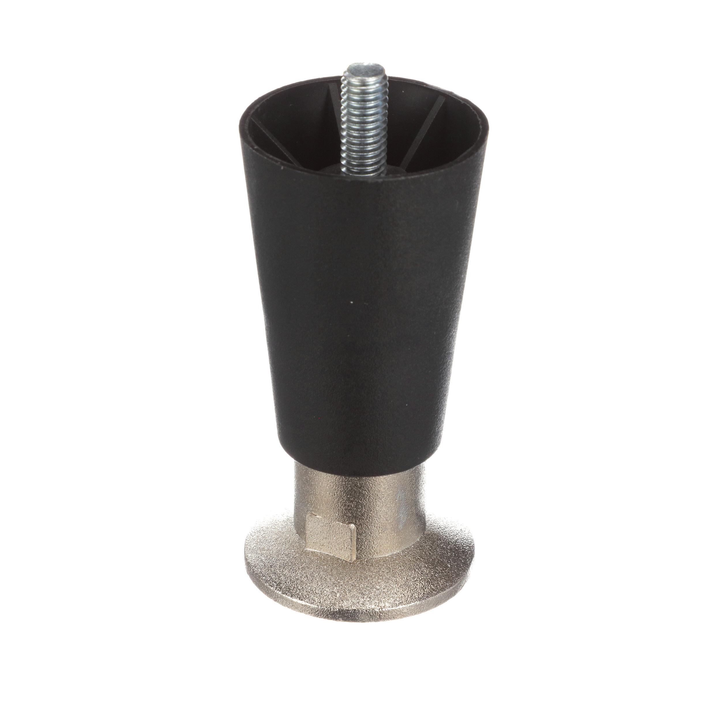 - 4" H Black High Temperature Thermoplastic Appliance Leg With 3/8-16 x 1/2" L Protruding Stud and Nickel Plated Die Cast Flanged Toe