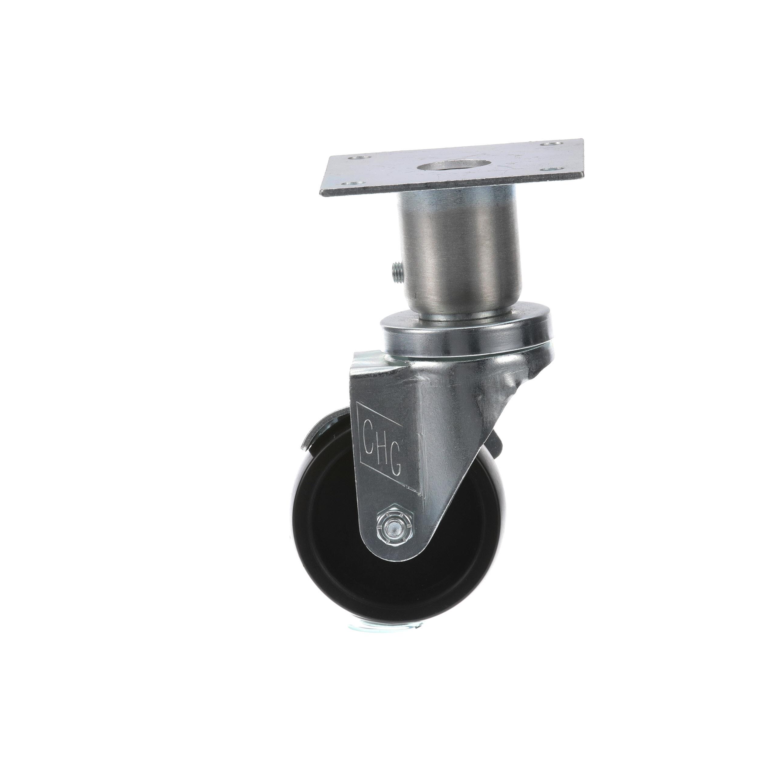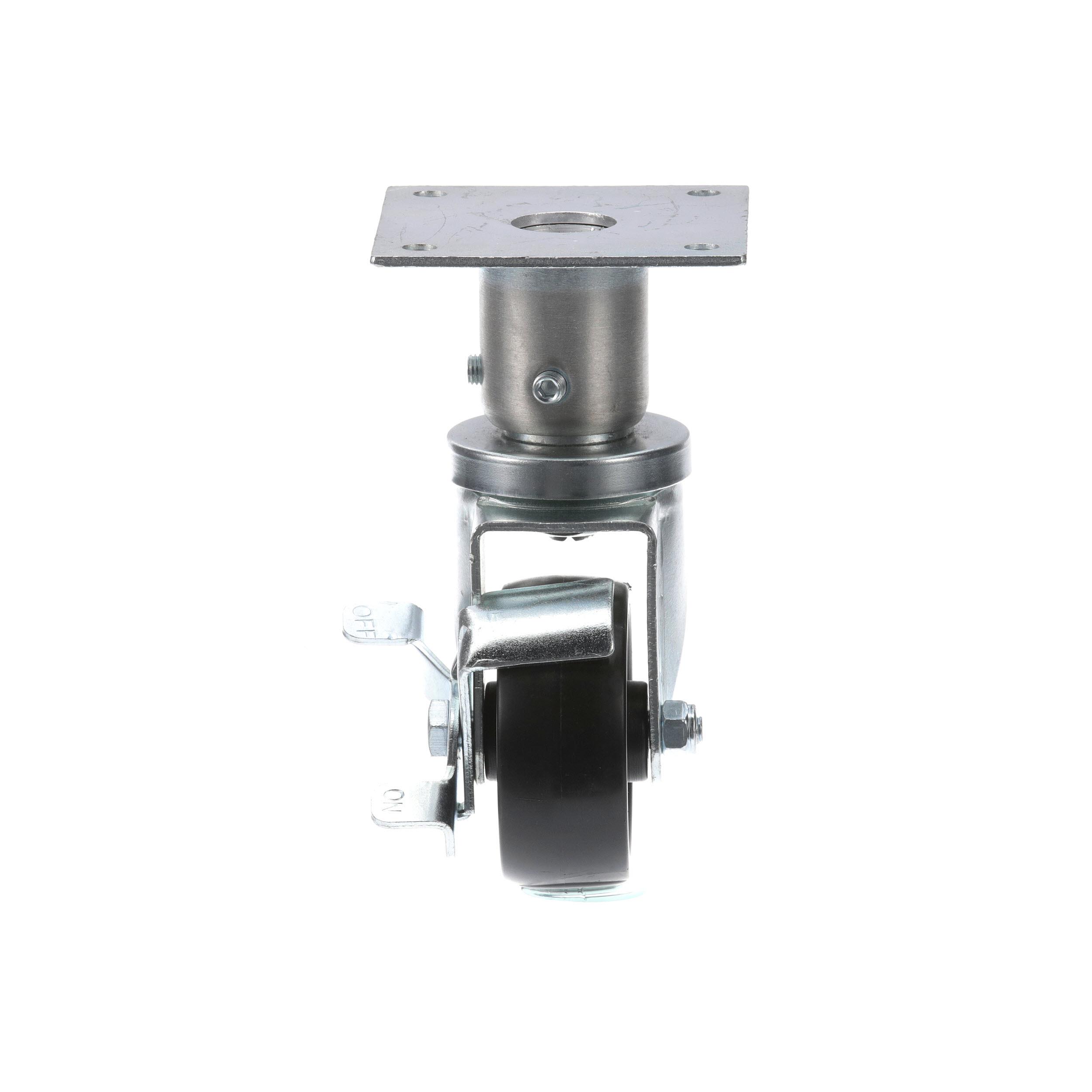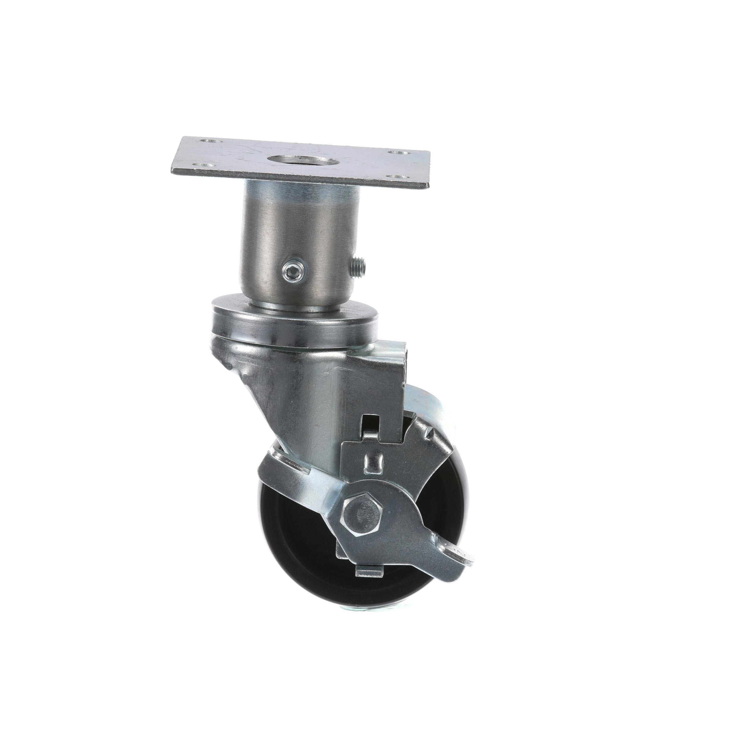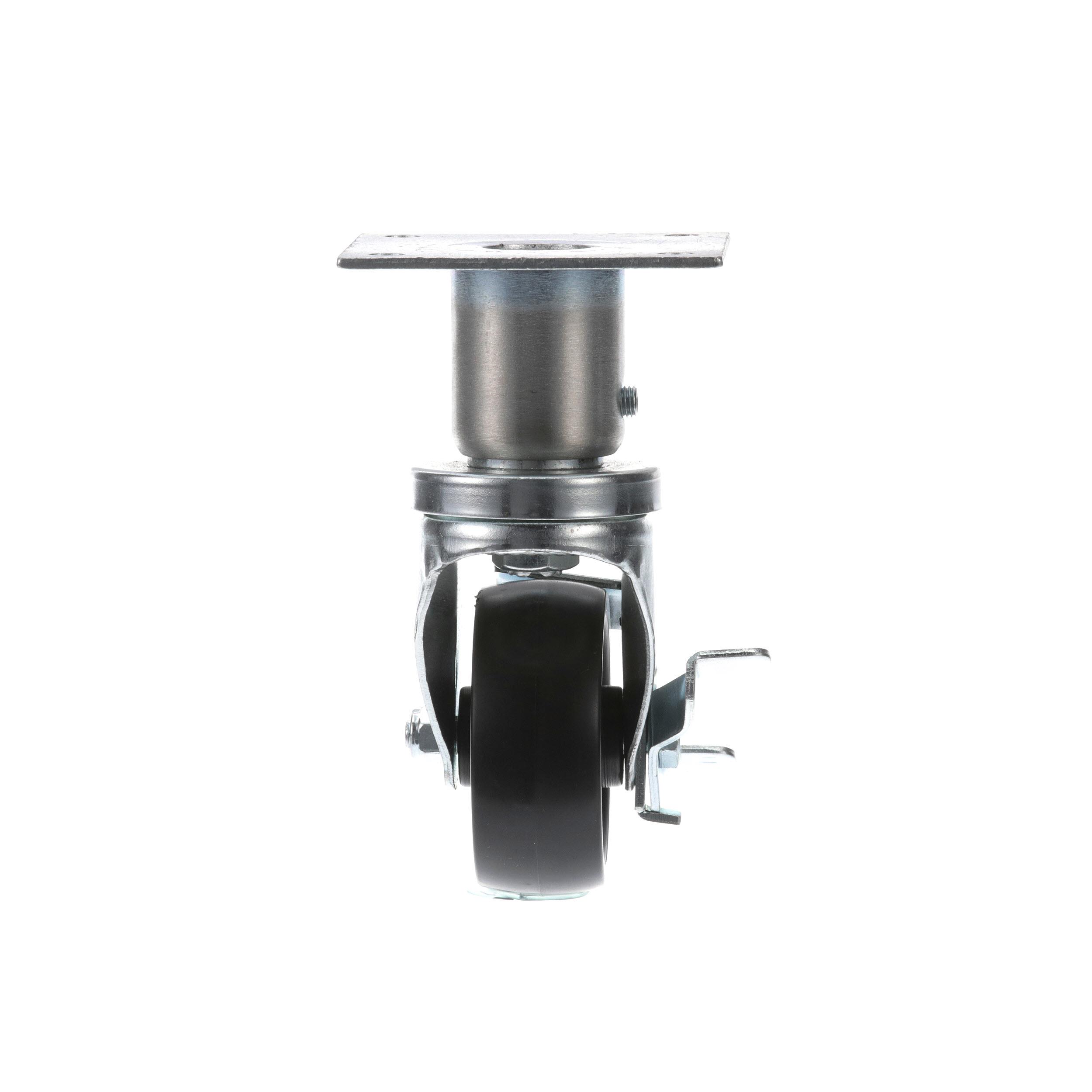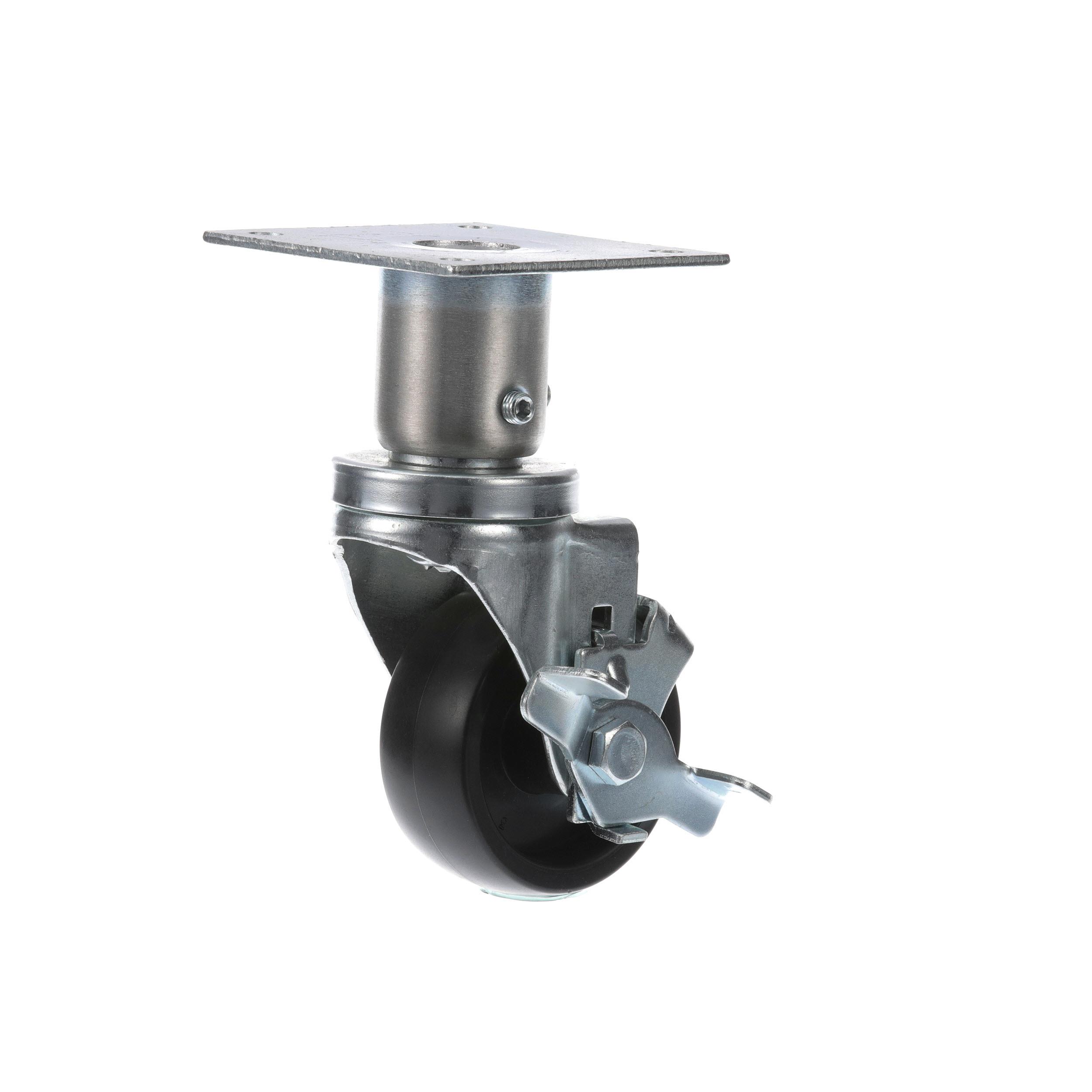 - Medium Duty 3-1/2" x 3-1/2" Plate 1-5/8" OD Adjustable Caster Leg With 3" Black Polyolefin Wheel With Brake